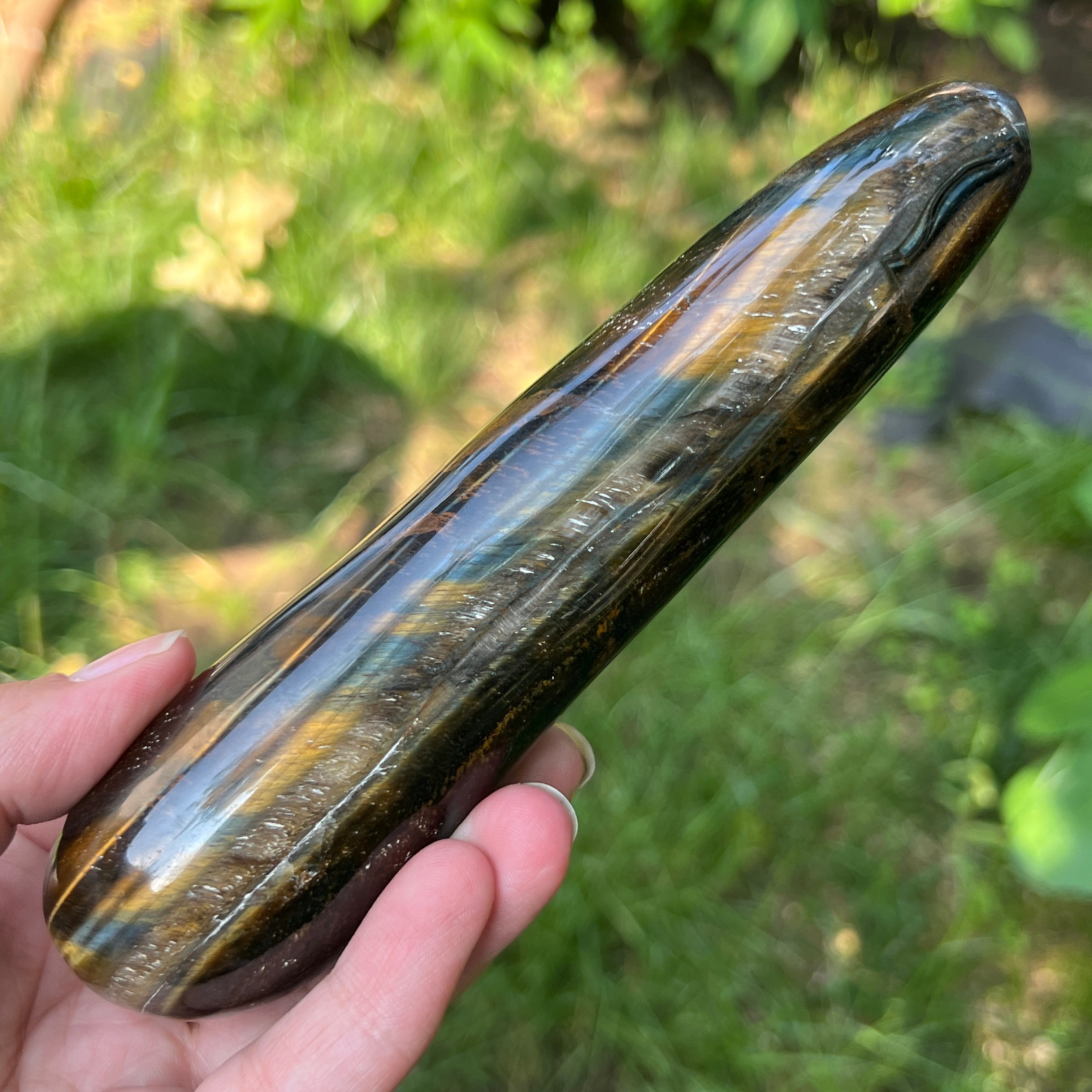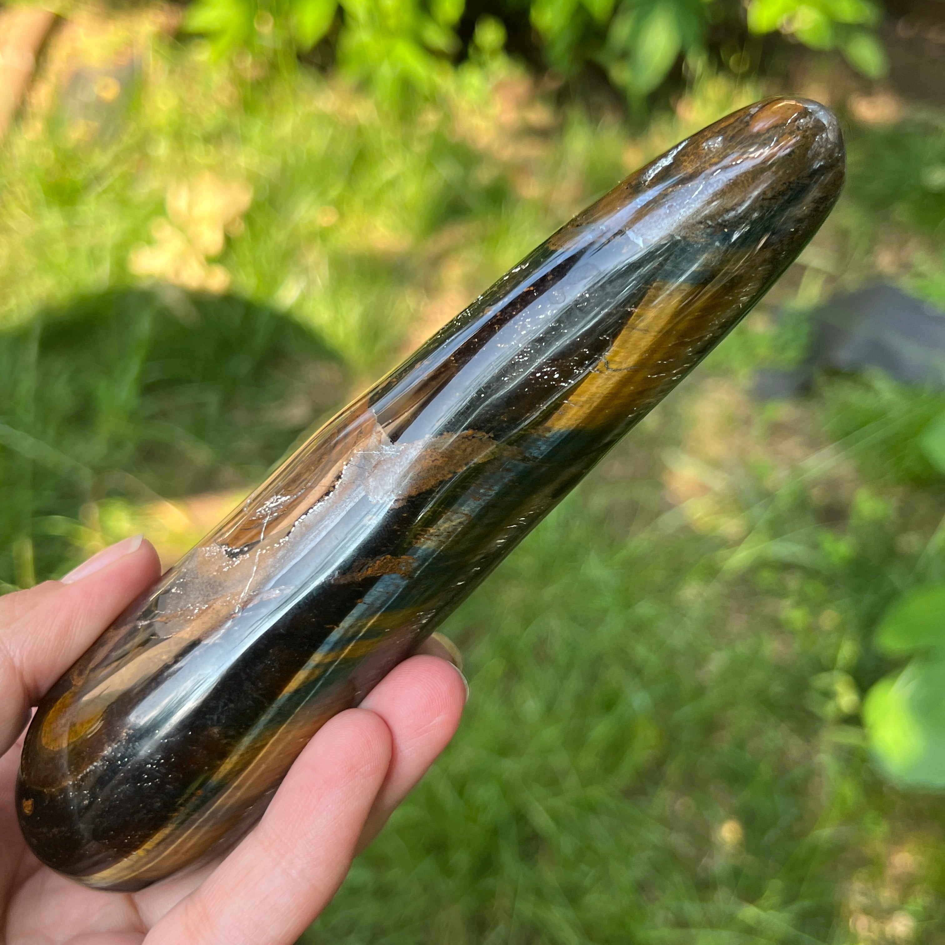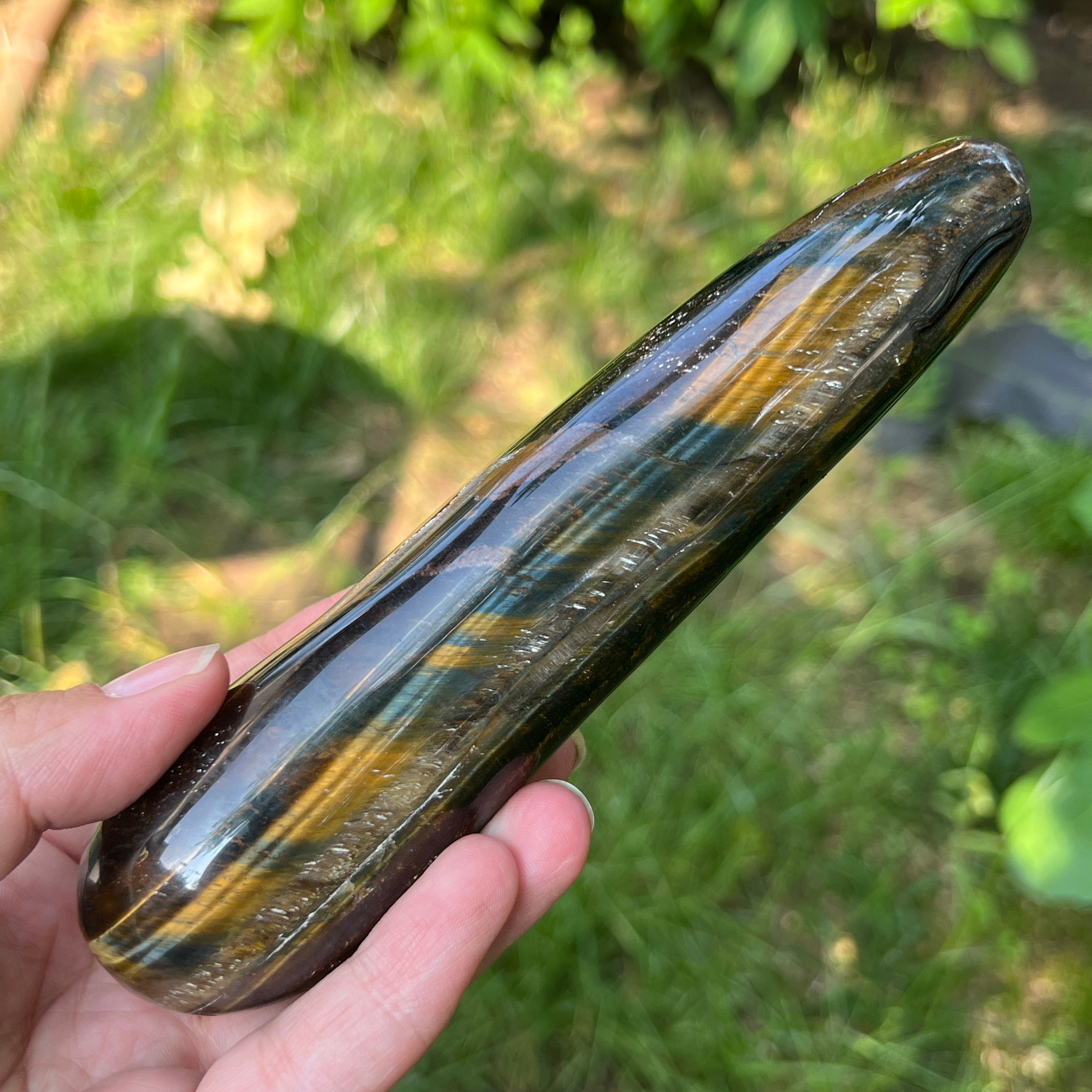 Тази масажна пръчица от тигрово око е уникален артикул, изсечен и полиран, за да канализира концентрираната енергия на Земята чрез ергономична форма, идеална за лечебни ритуали, енергиен масаж или дълбока релаксация.
