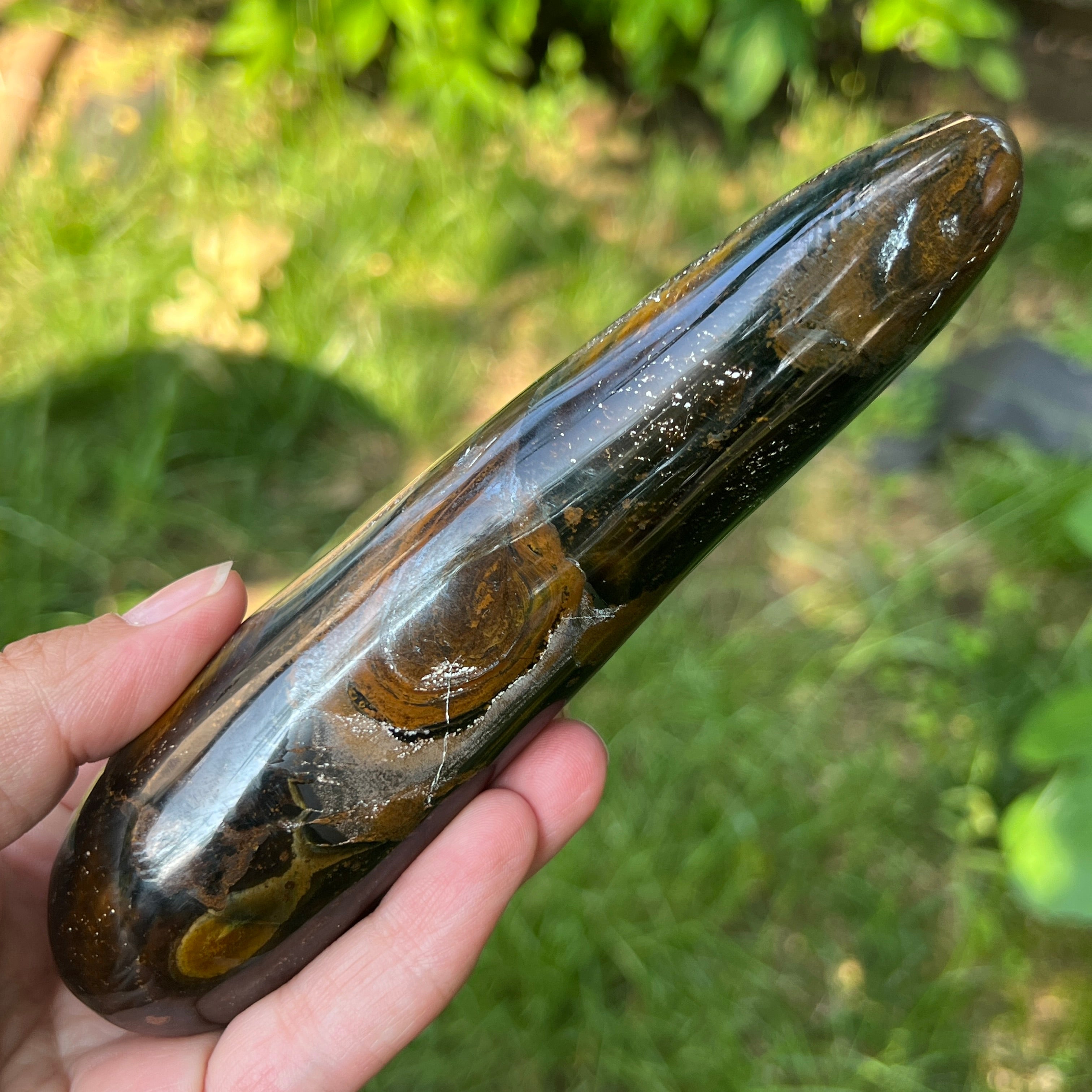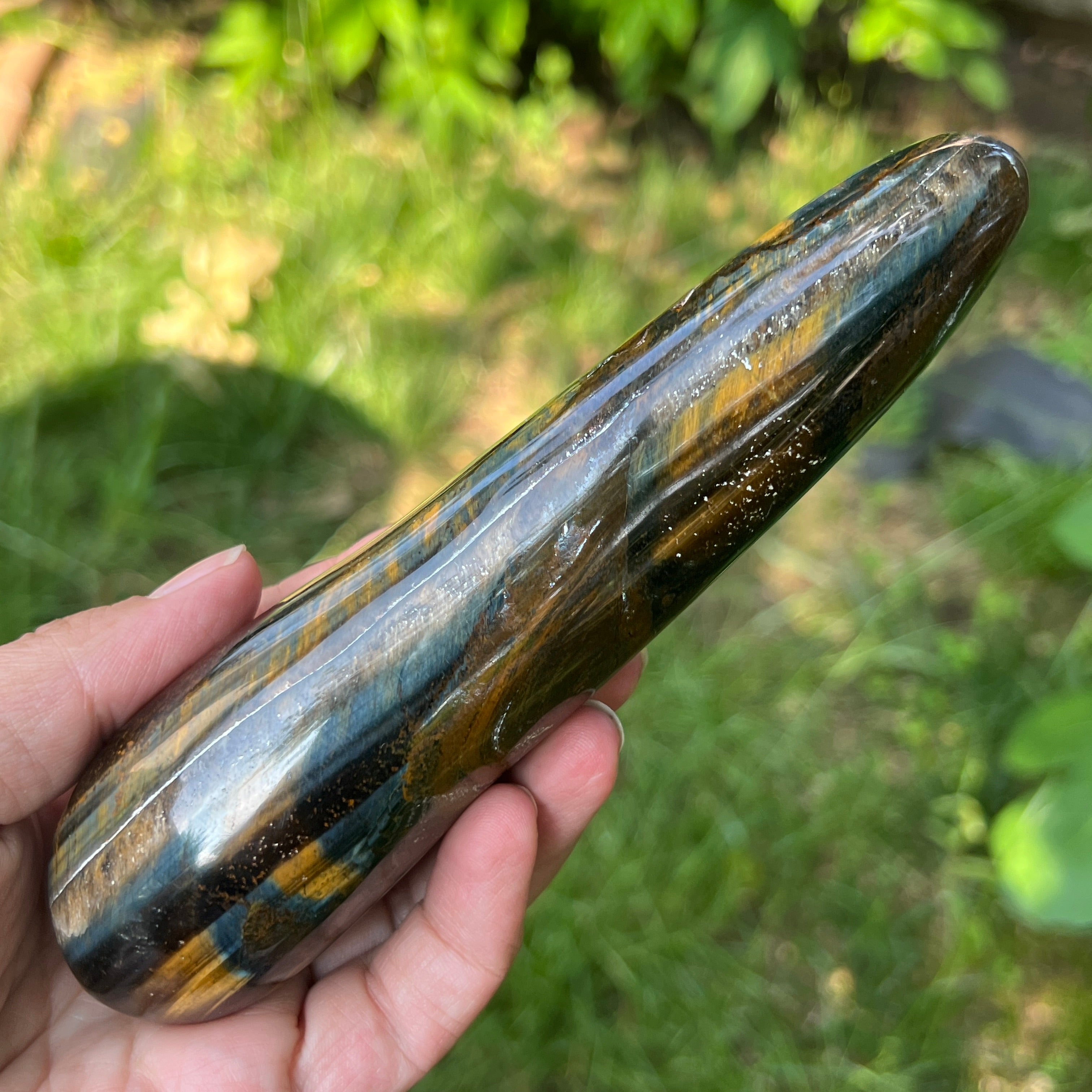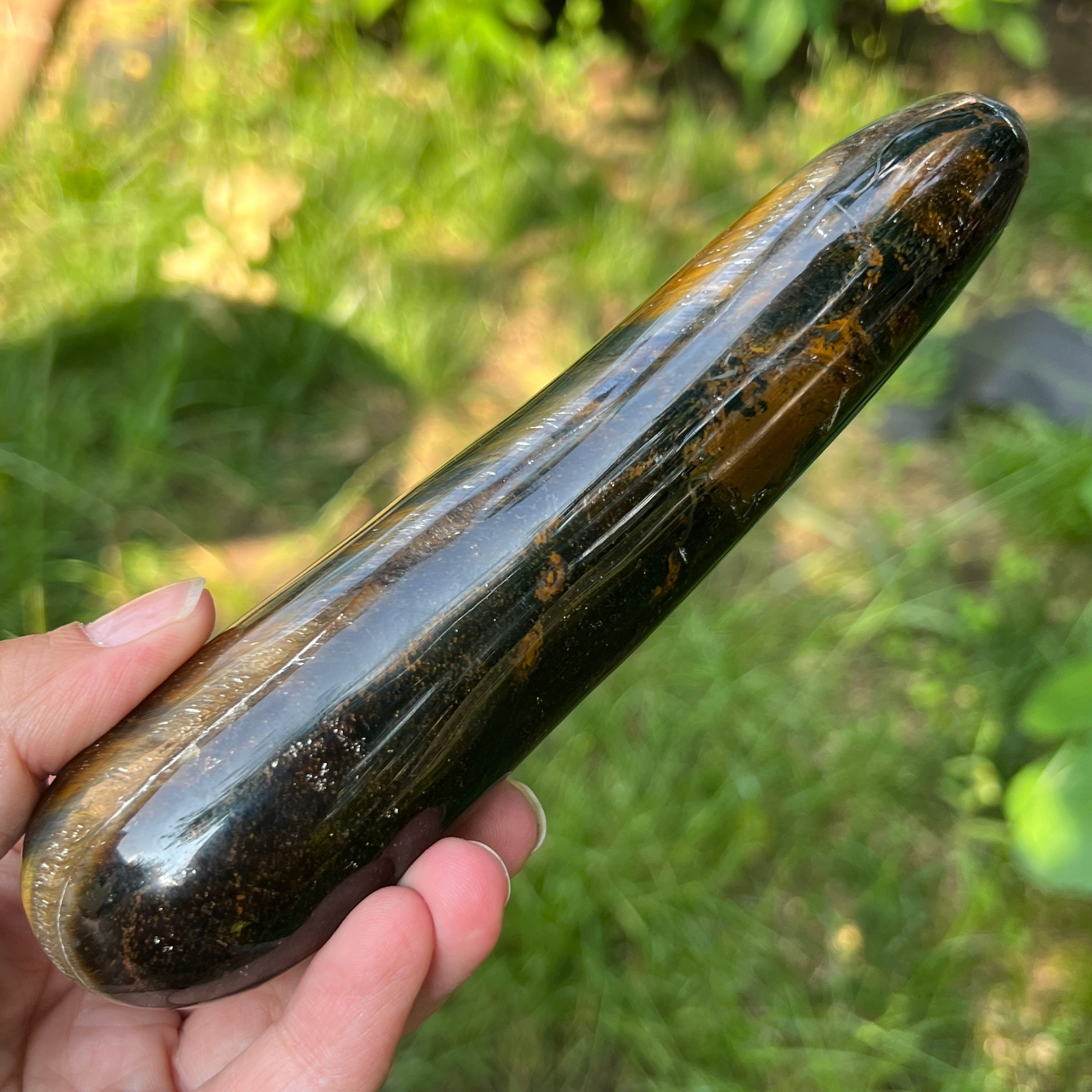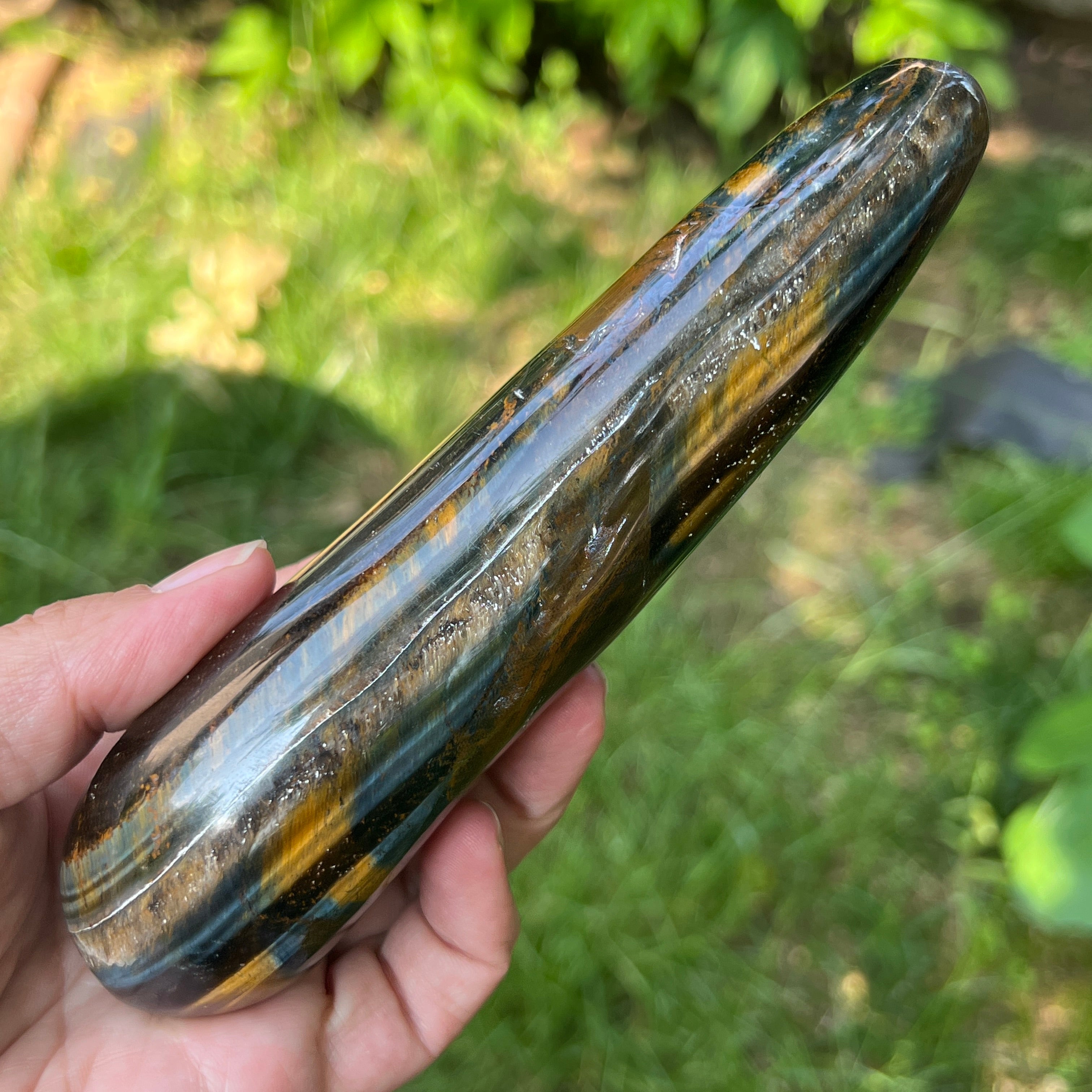 Тази масажна пръчица от тигрово око е уникален артикул, изсечен и полиран, за да канализира концентрираната енергия на Земята чрез ергономична форма, идеална за лечебни ритуали, енергиен масаж или дълбока релаксация.