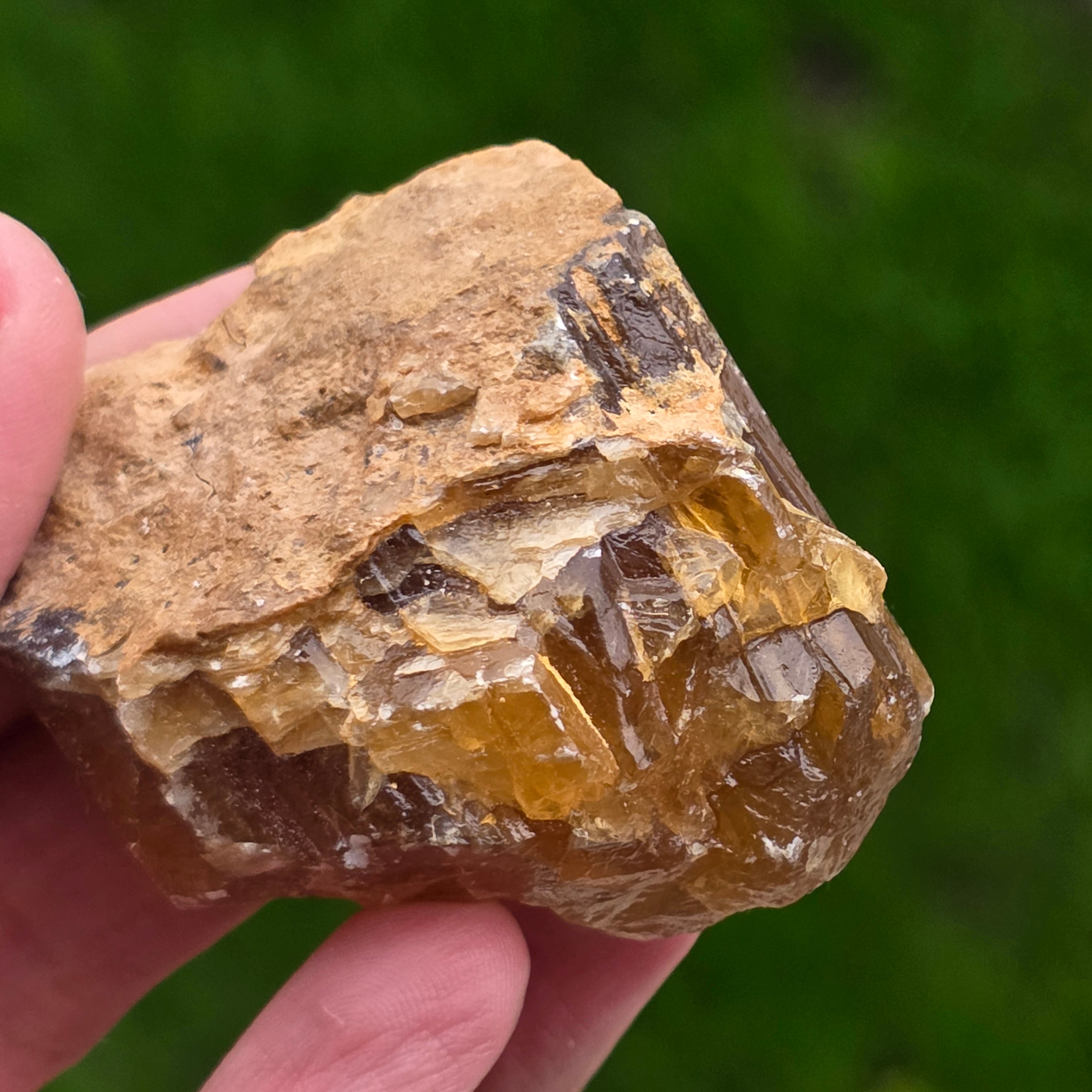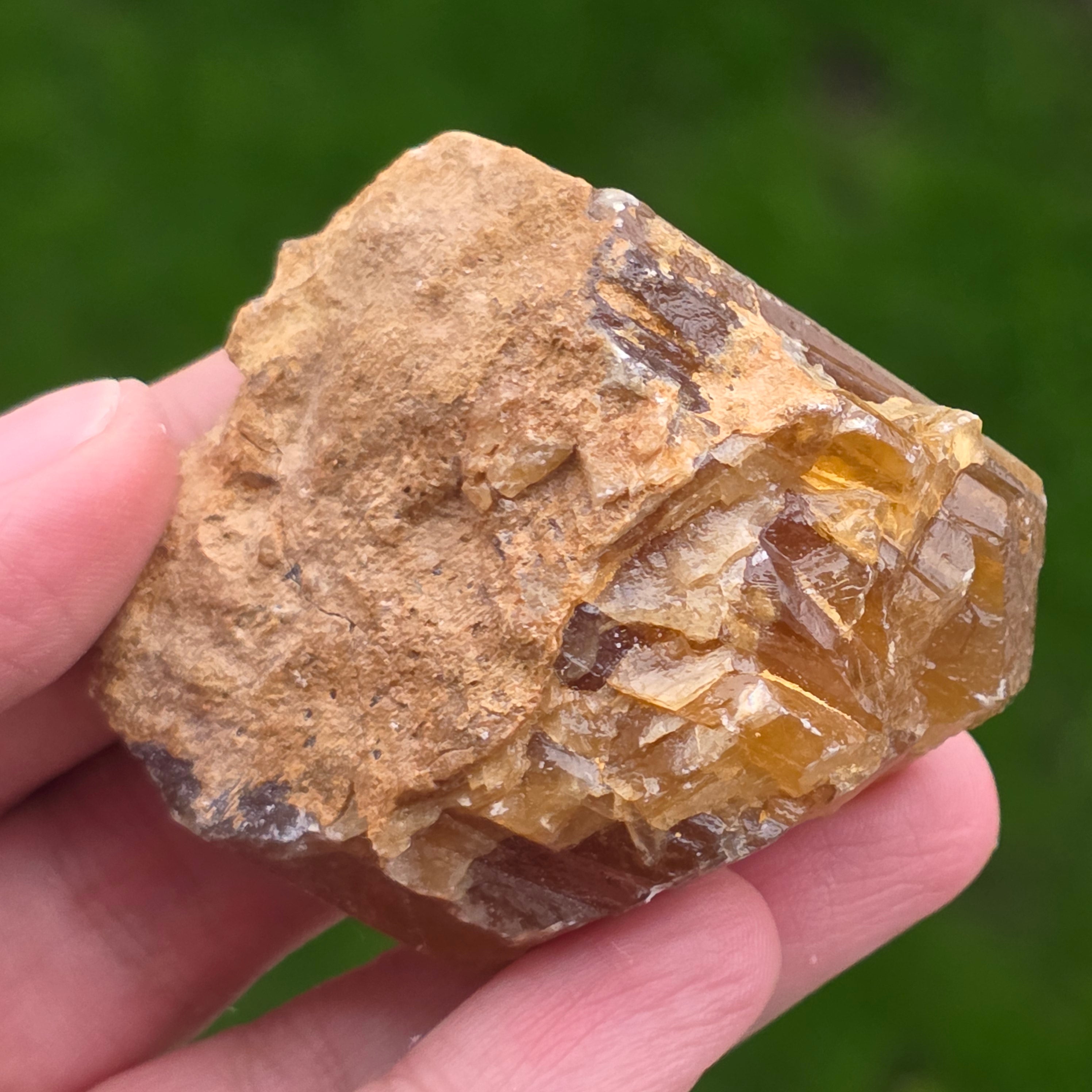 Меденият арагонит от Намибия е разновидност на арагонита с топли оттенъци на жълто, оранжево и светлокафяво, подобни на меда, откъдето идва и името му. Арагонитът е минерал от семейството на карбонатите с ортотромбична кристална структура, химически подобен на калцита, но различен по начин на кристализация.
