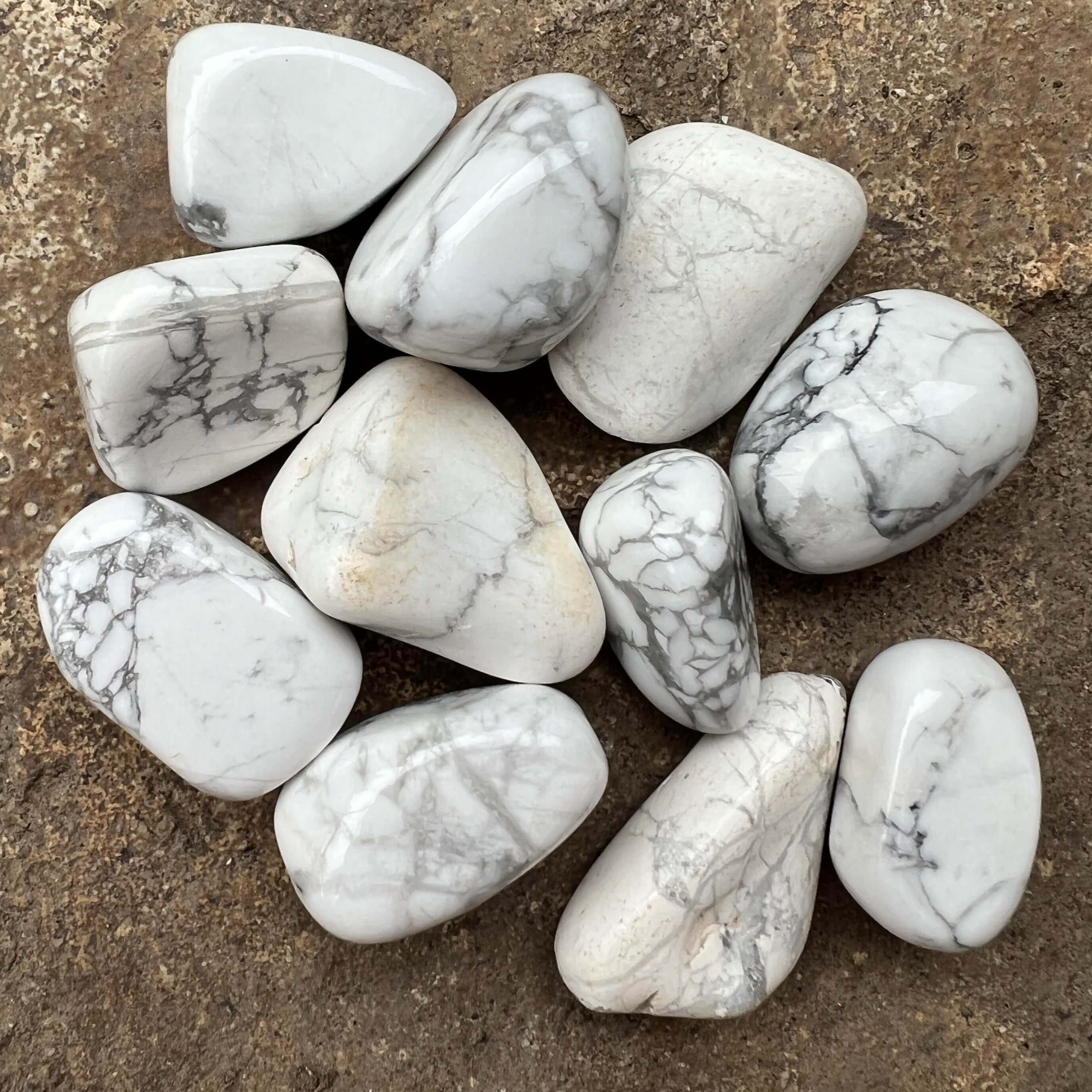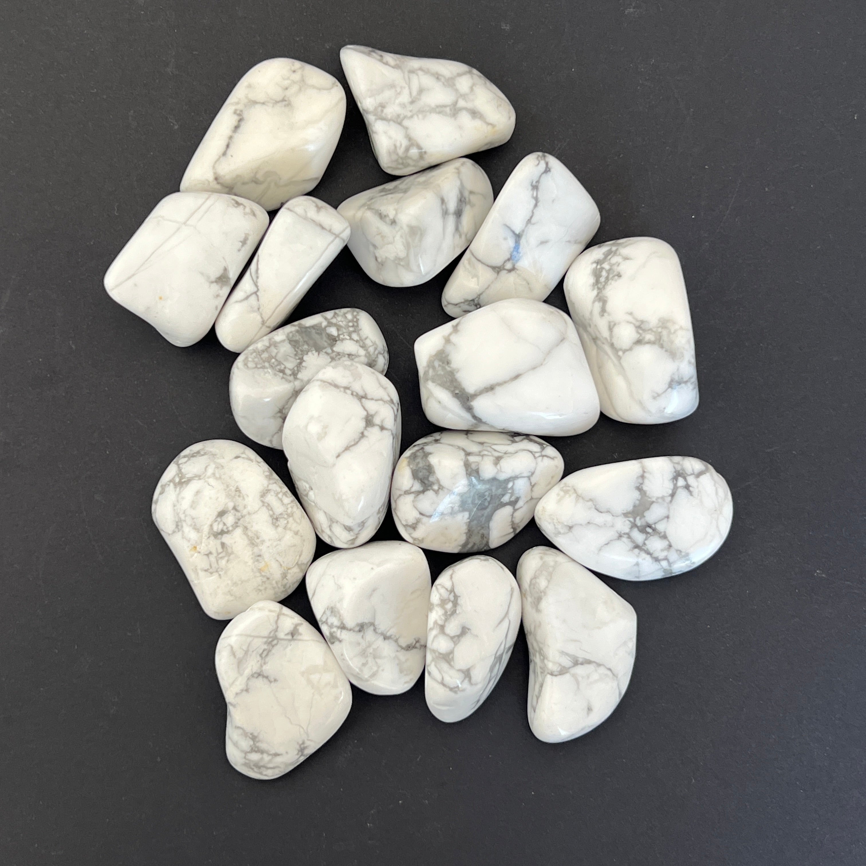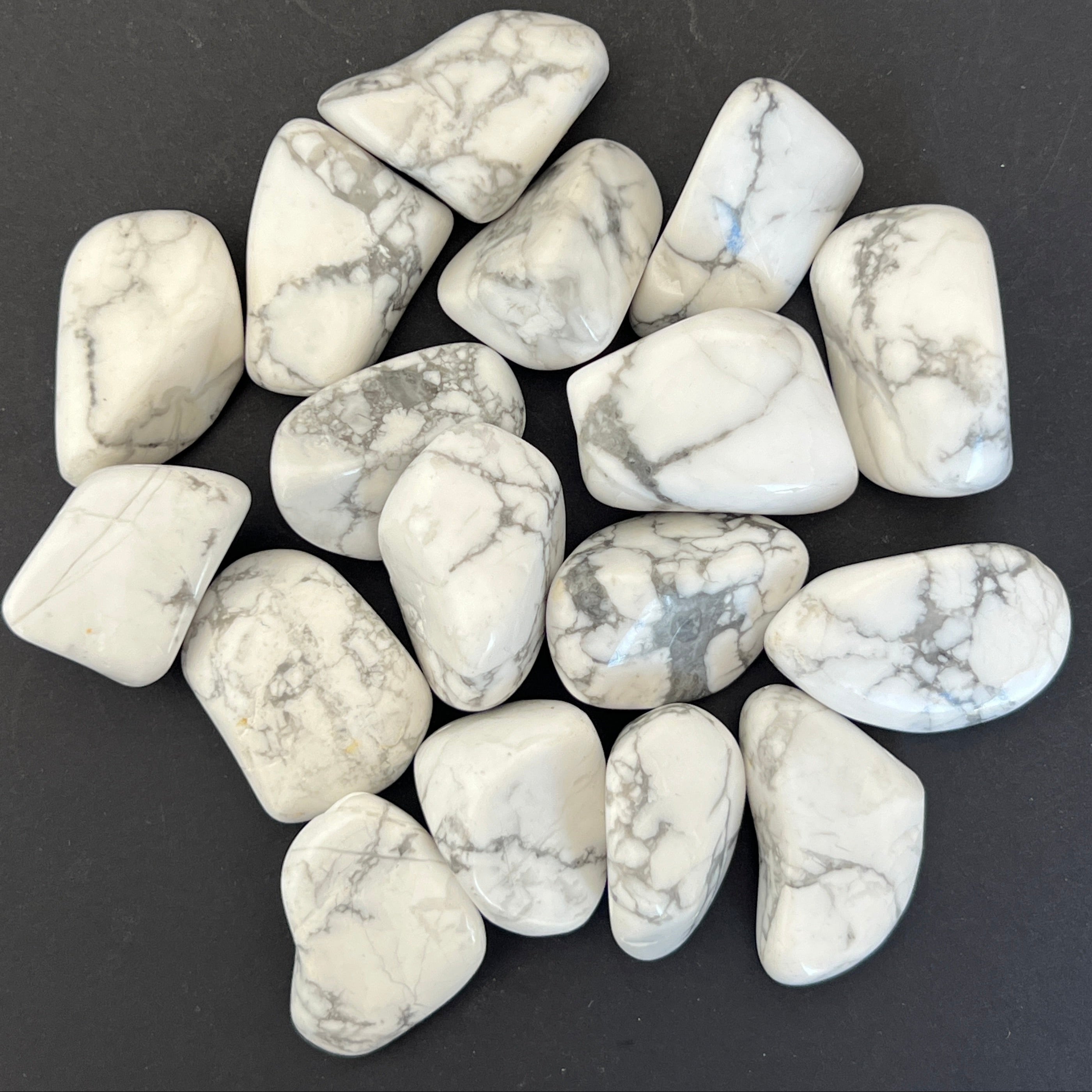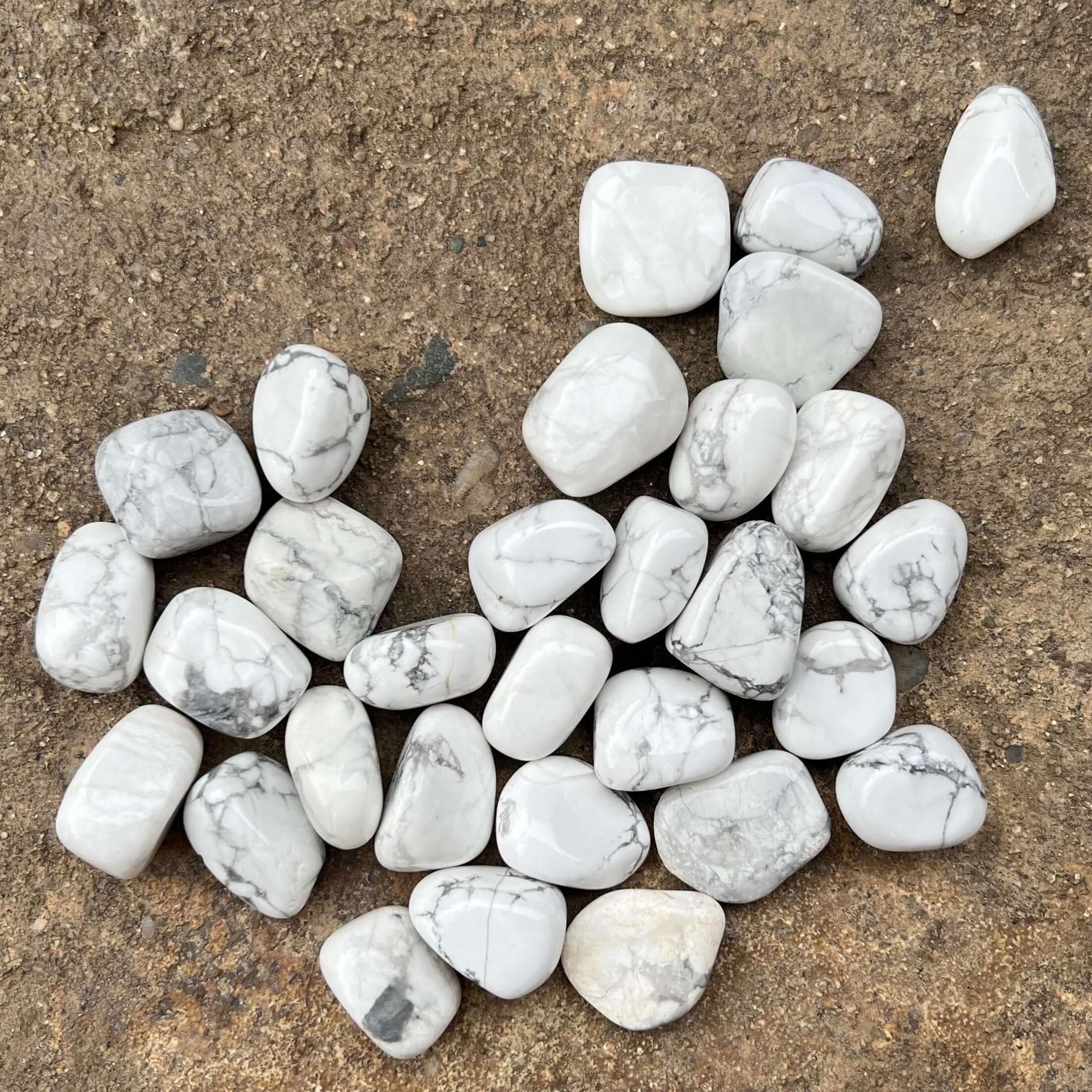 Мини бяла тюркоазена хауолитова камъчета, с размери между 2 - 3,5 см. Цената варира в зависимост от размера на камъка, моля изберете желания размер.