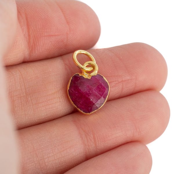 Мини висулка рубин сърце 1 см, камък за юли, birthstone