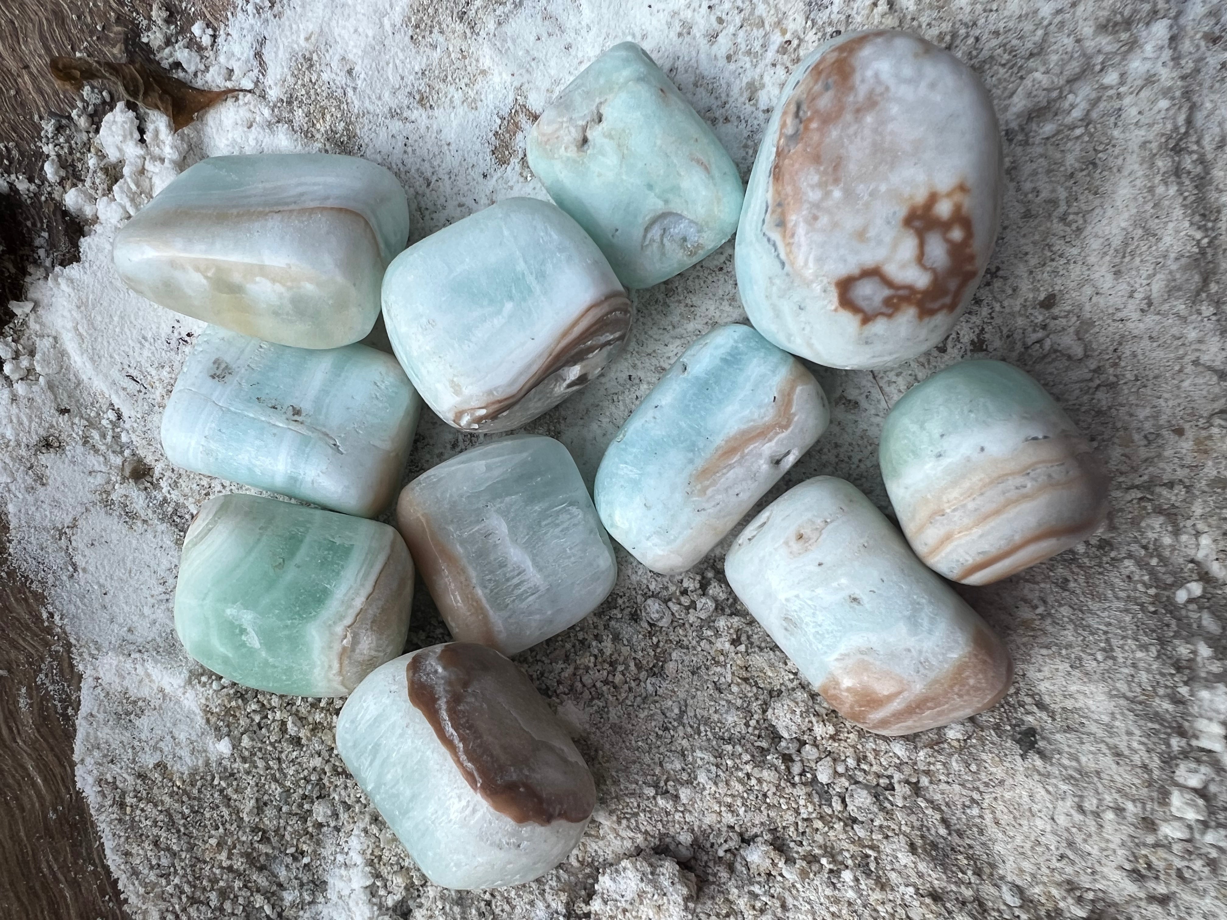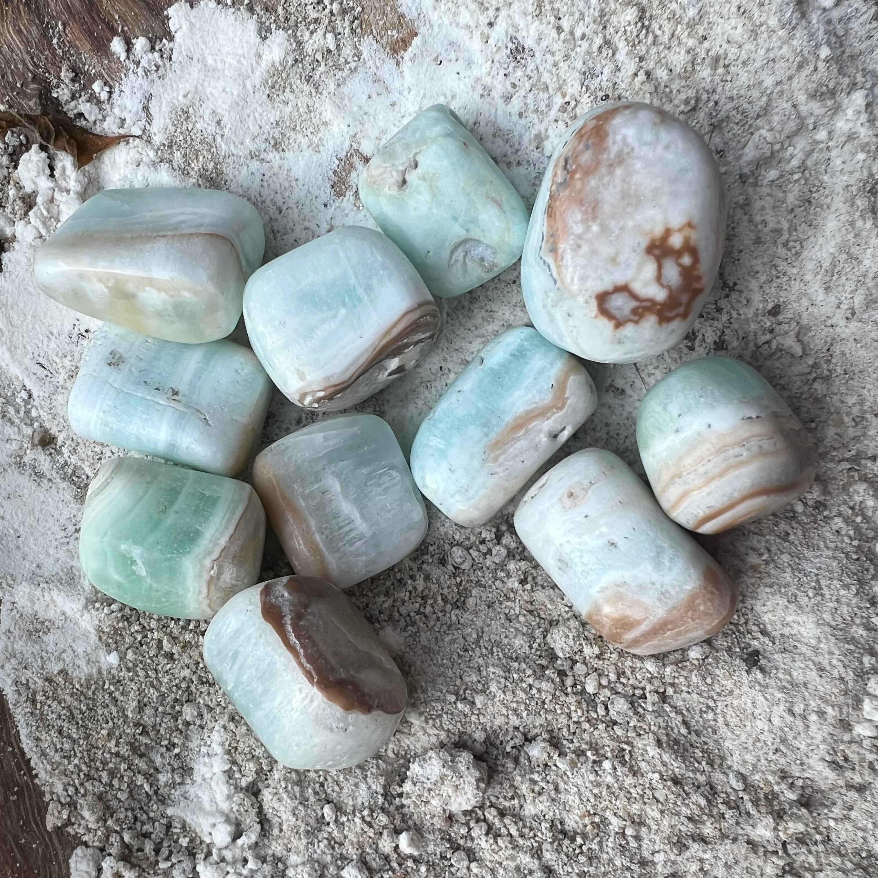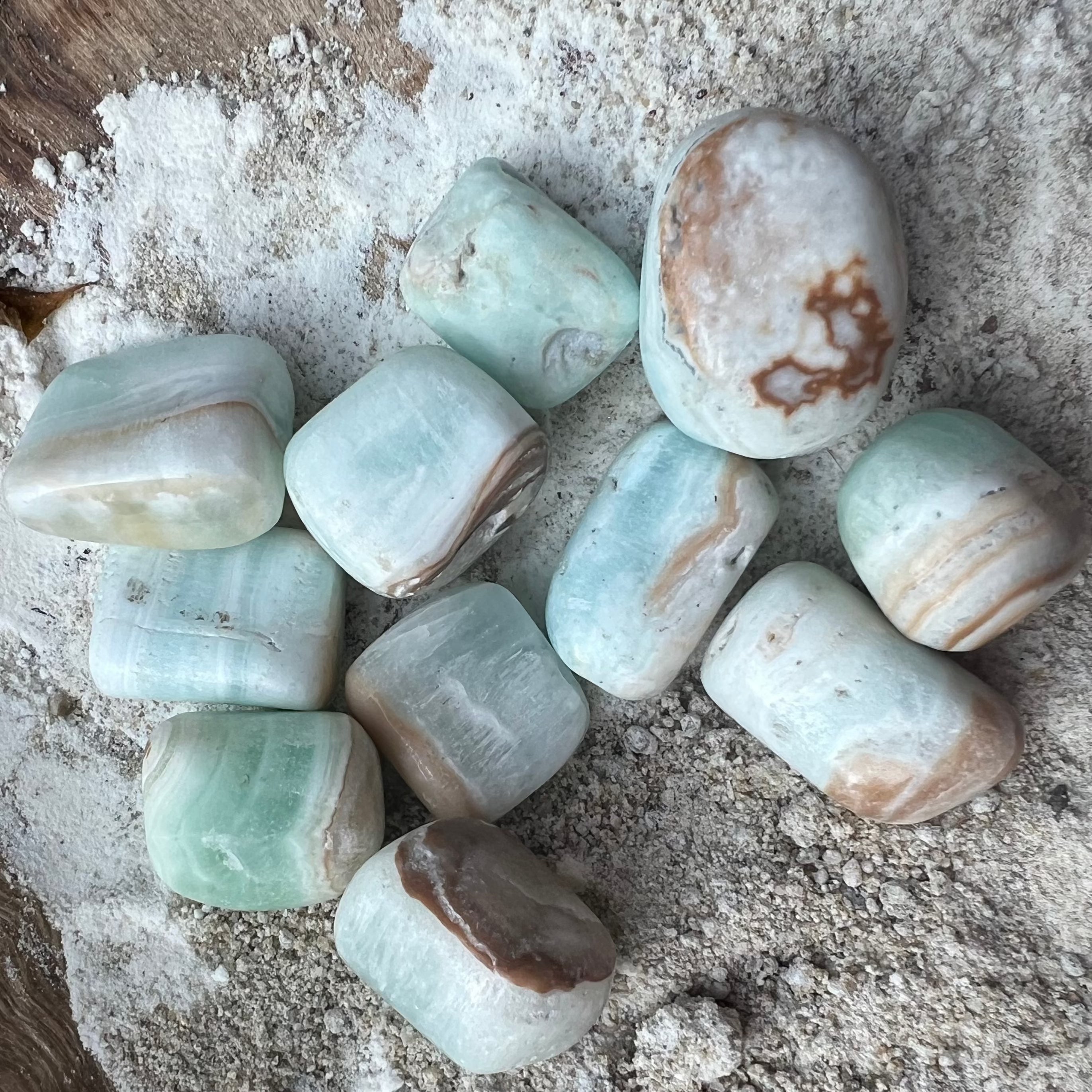 Карибски син калцит валцуван камък размер 2,5-3,5 см