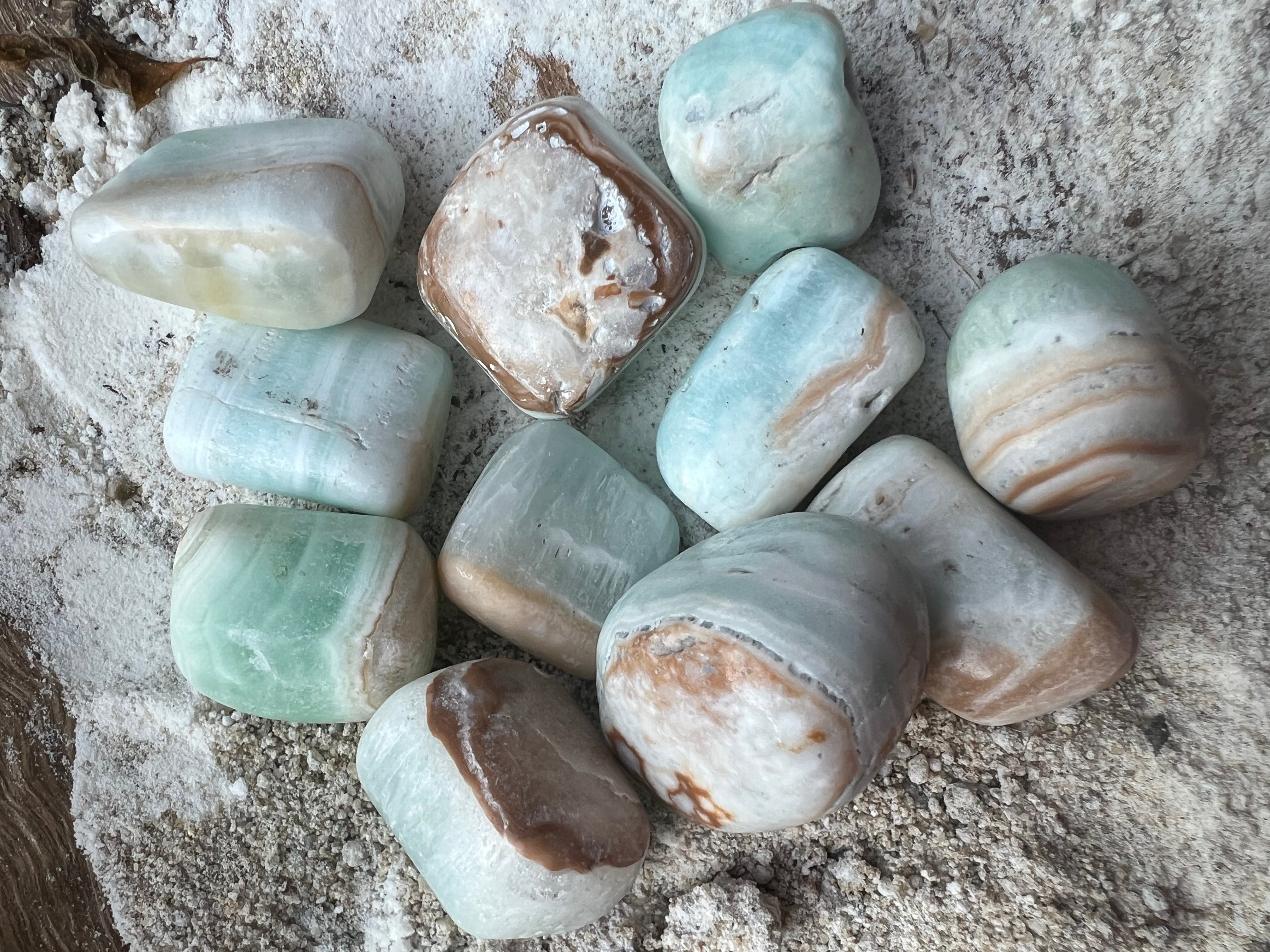 Карибският син калцит е рядък полускъпоценен камък, известен със своя дълбок син цвят и райета и пръстеновидни мотиви. Този камък е известен още като пакистански син калцит. Карибският син калцит се счита за камък на вътрешния мир и умствената яснота. Смята се, че този камък помага за подобряване на комуникацията и себеизразяването, насърчавайки яснота и състрадание във взаимоотношенията с другите. Карибският син калцит също се смята за защитен камък срещу дисонантни енергии.