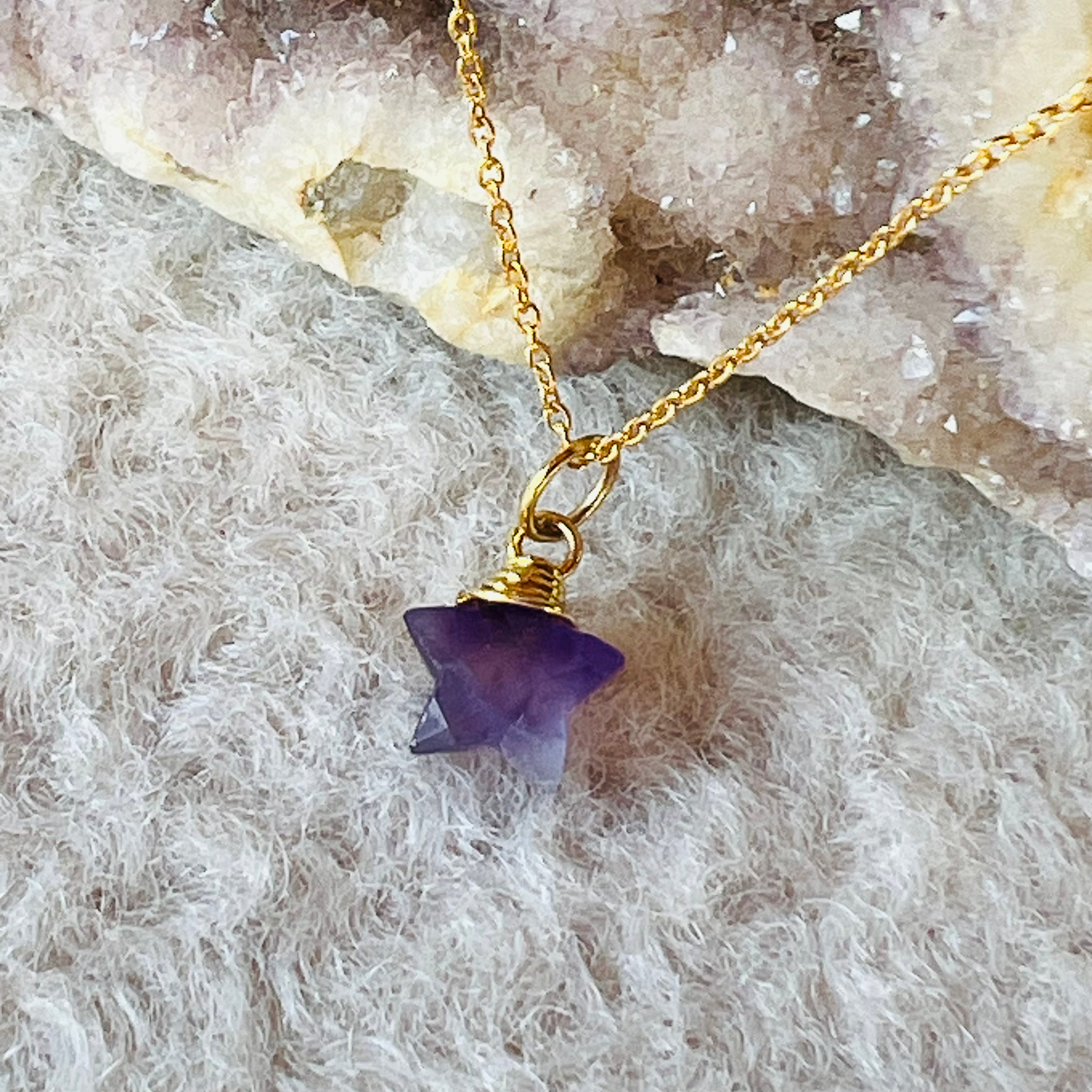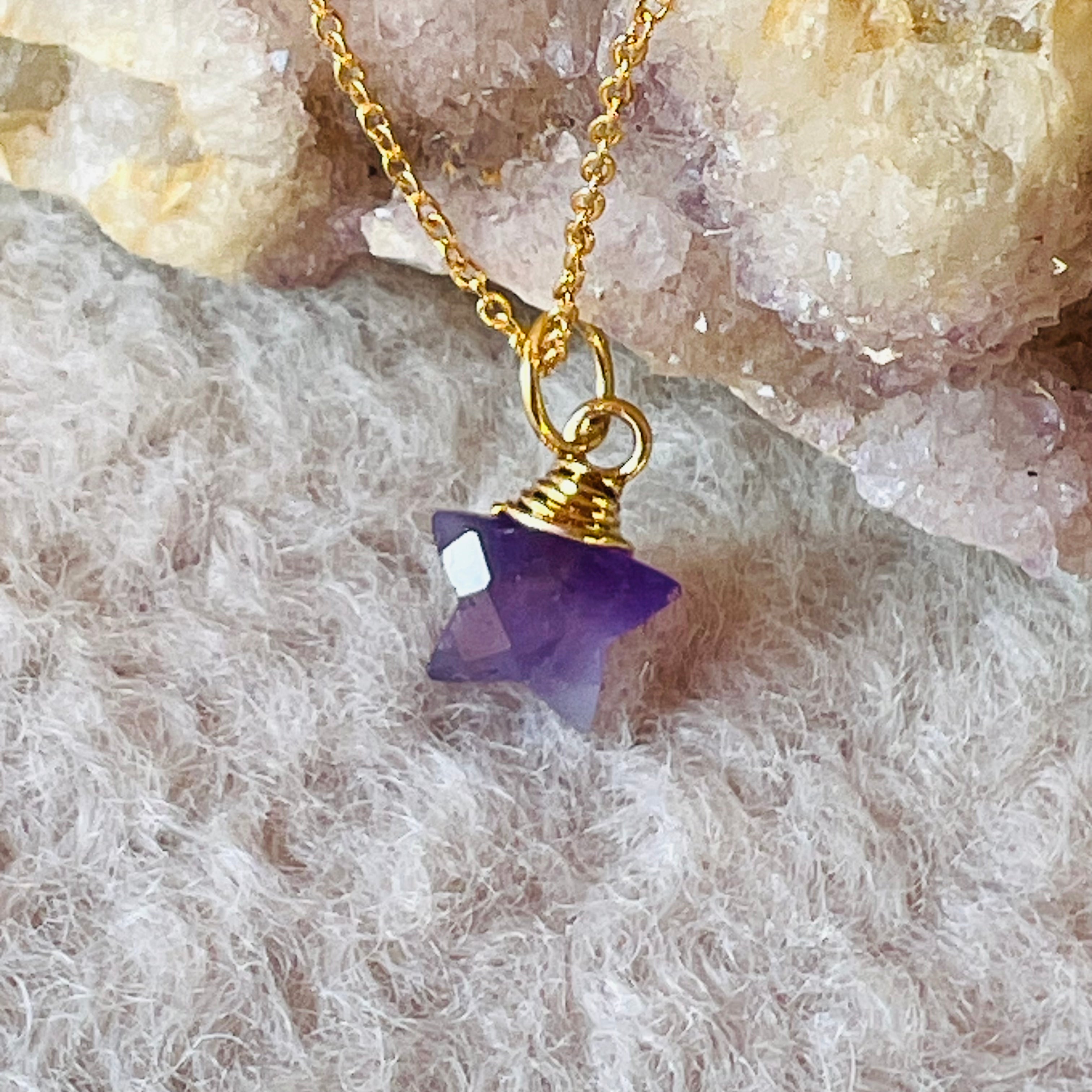 Ревюта – Мини медальон звездичка аметист 1 см, камък на февруари