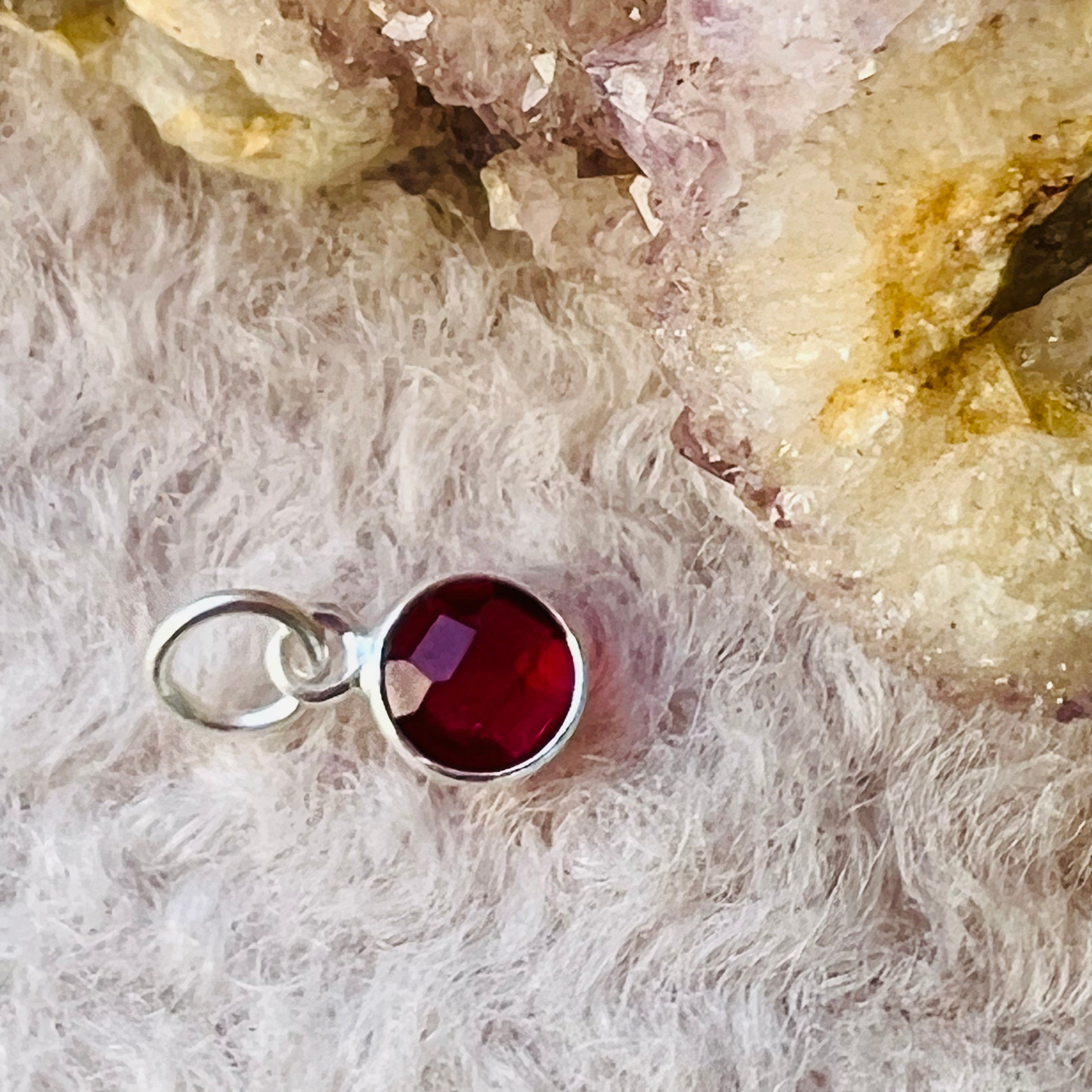 Мини медальон с розов турмалин 0,6 см, сребро, камък на октомври, рожден камък