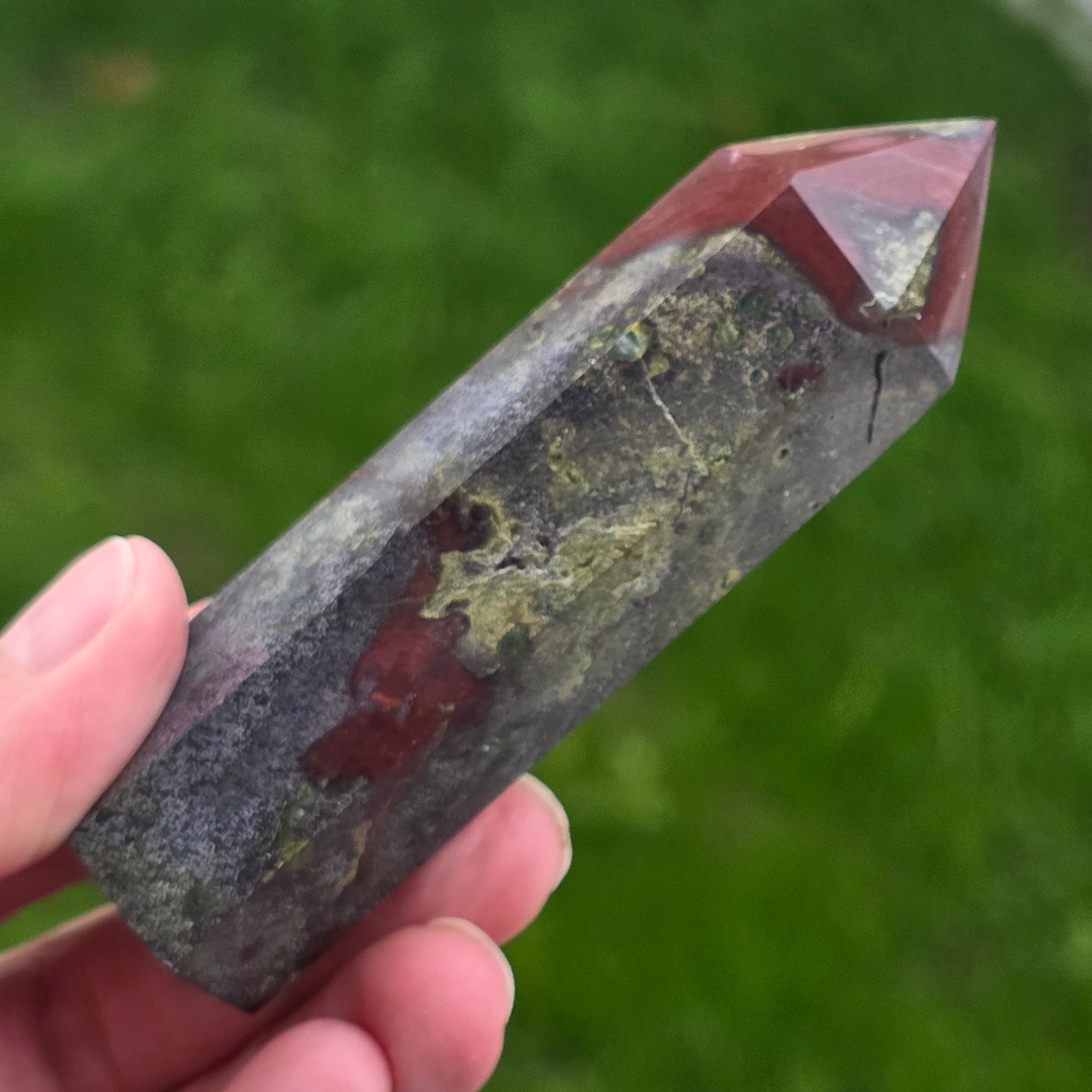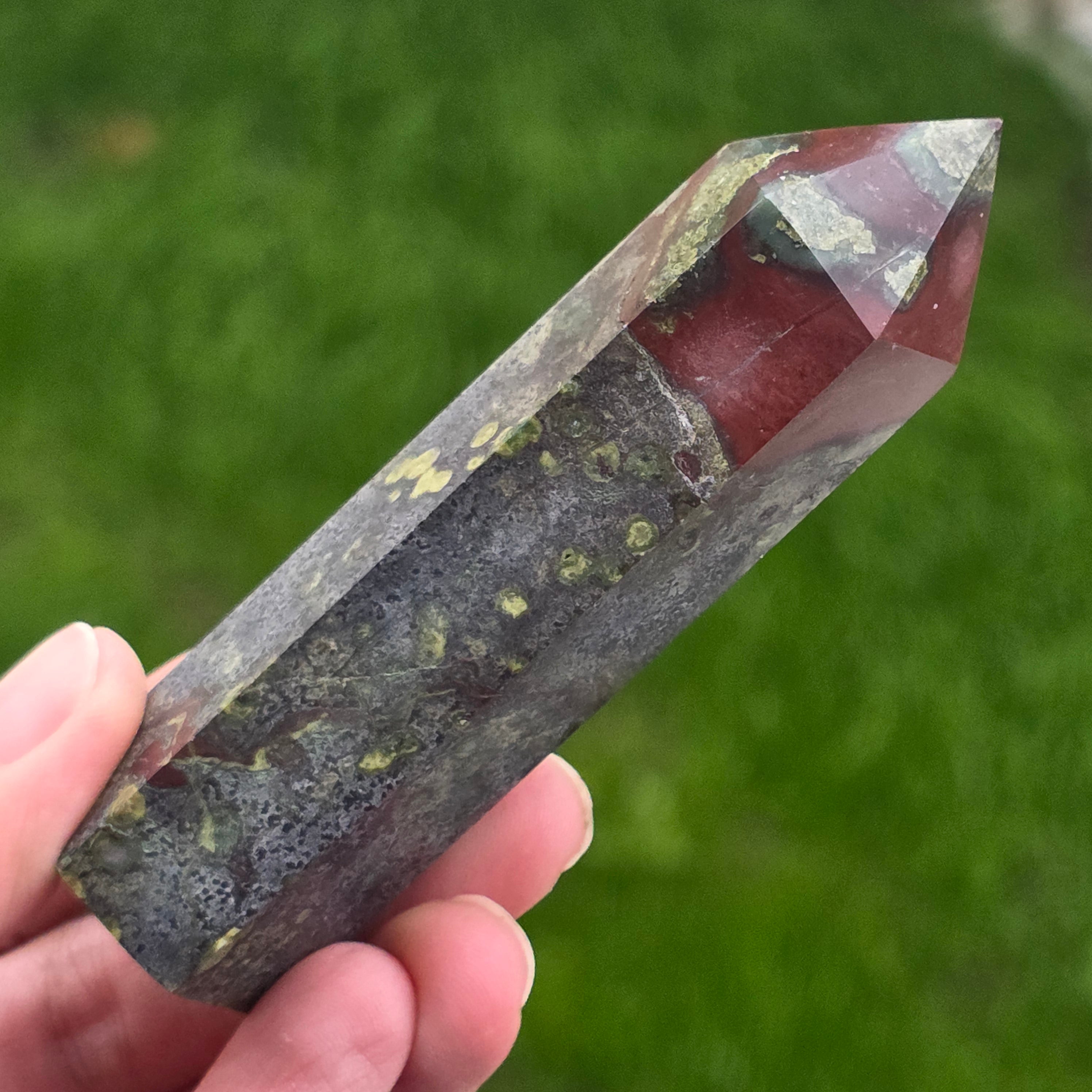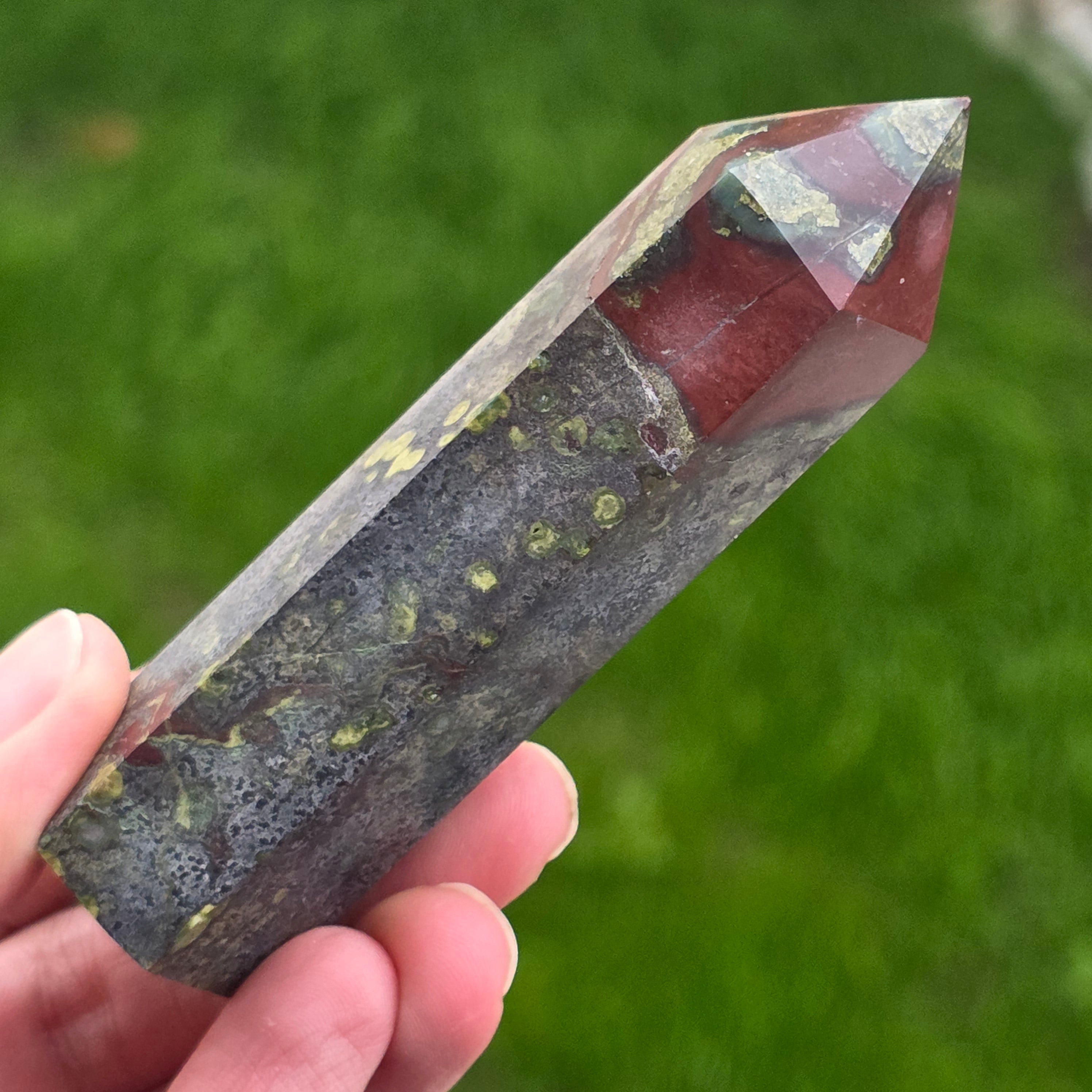 Мини обелиск драконова кръв (епидот & пиемонтит) м10