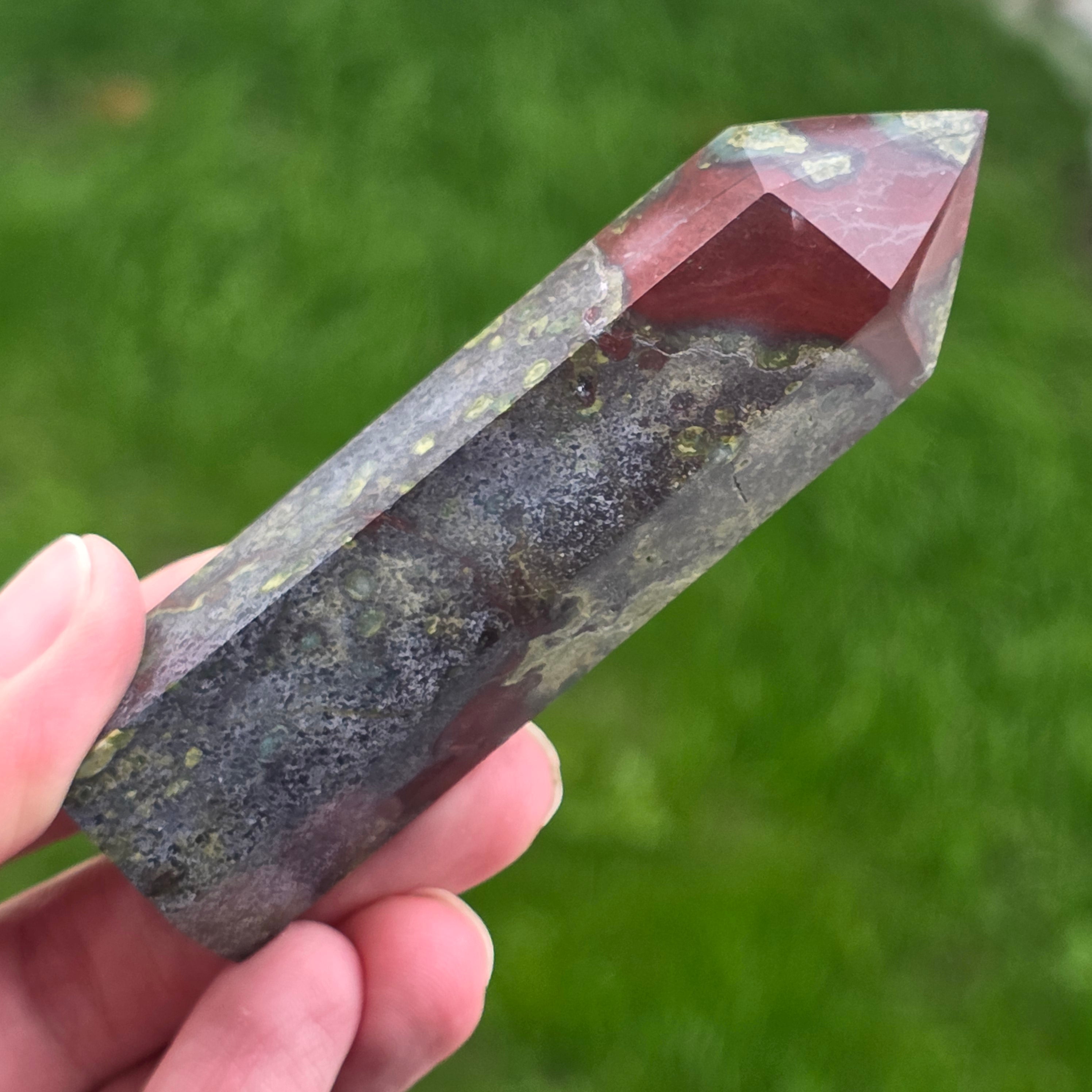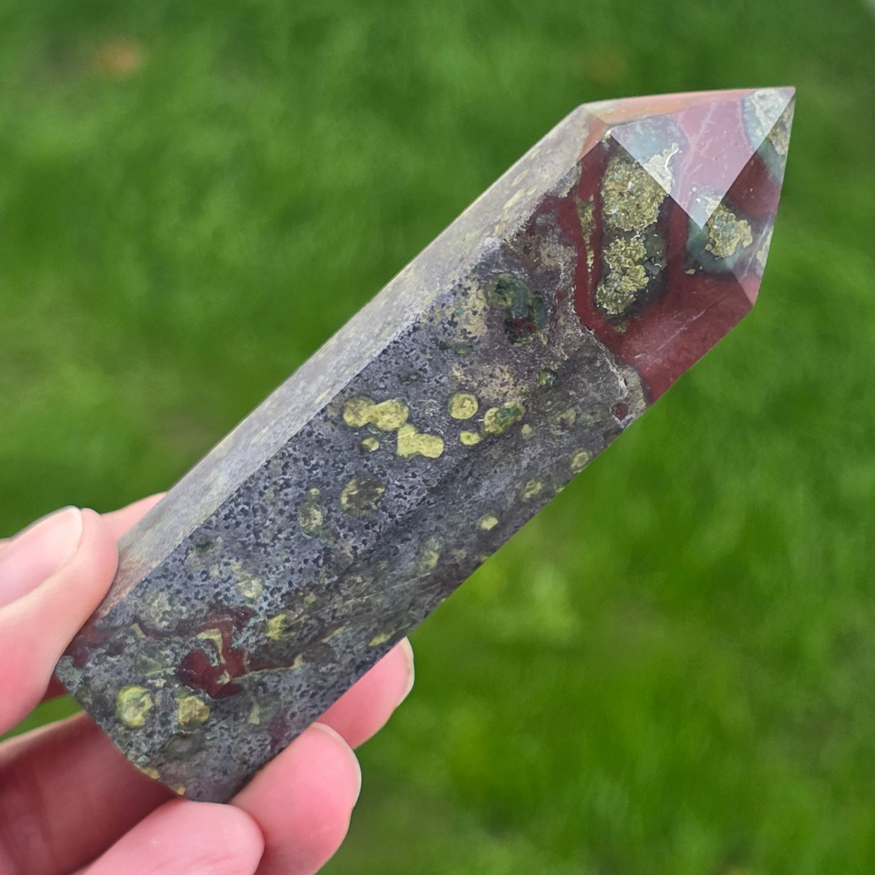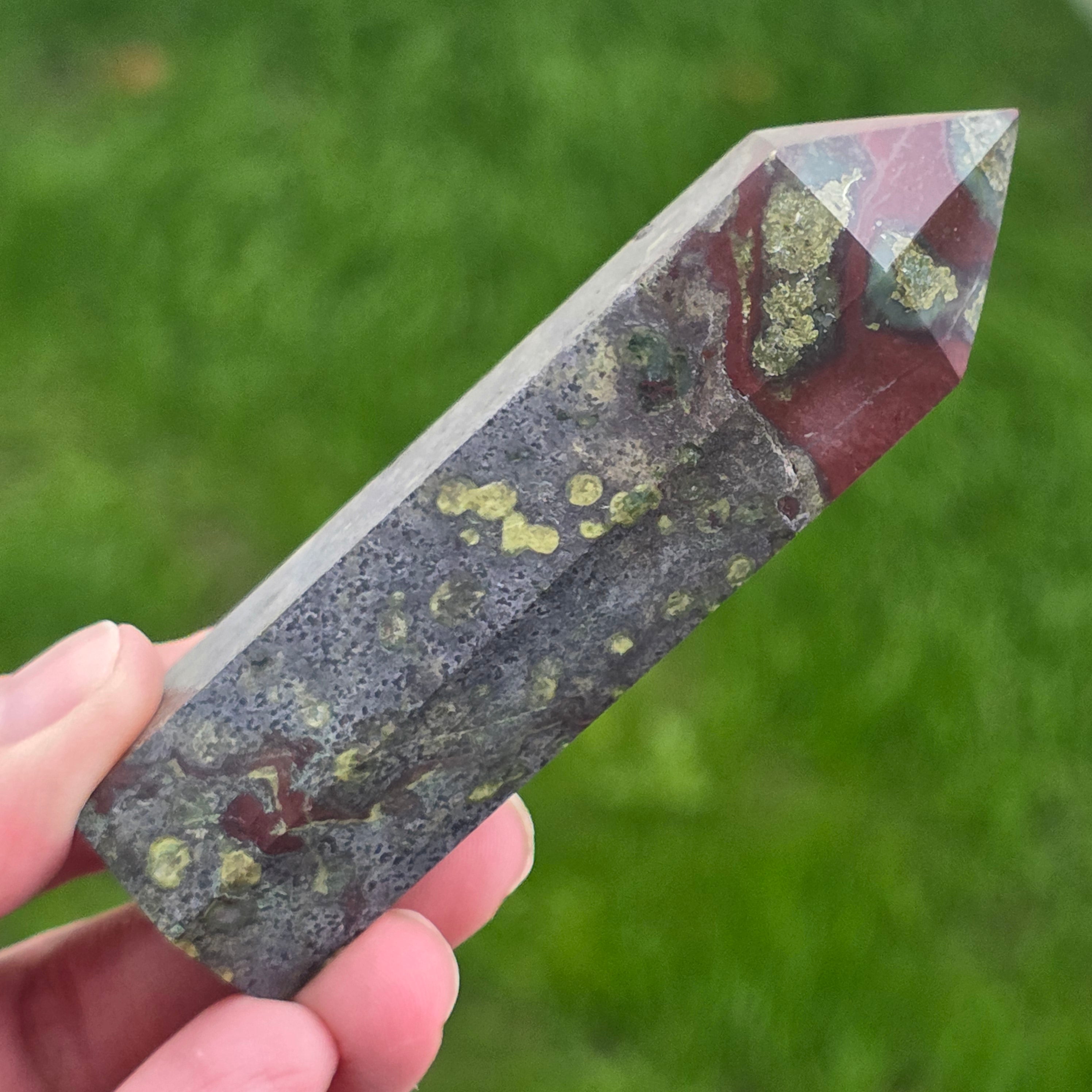 Мини обелиск драконова кръв (епидот & пиемонтит) м10