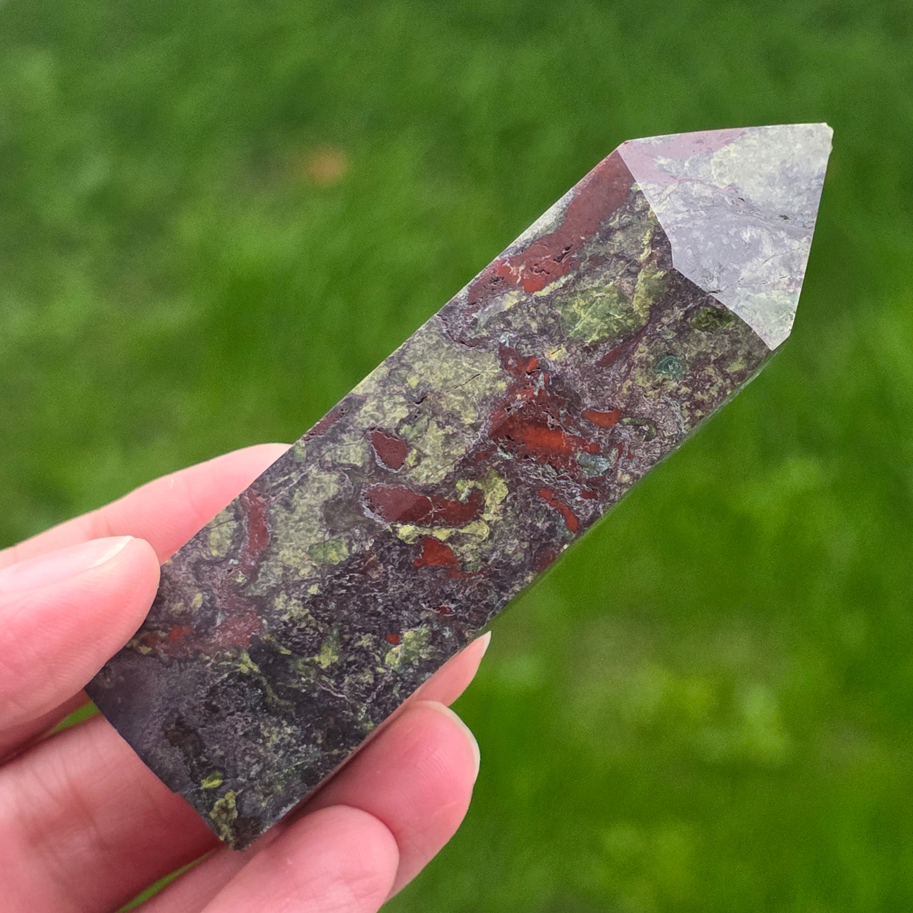 Мини обелиск драконова кръв (епидот & пиемонтит) м5