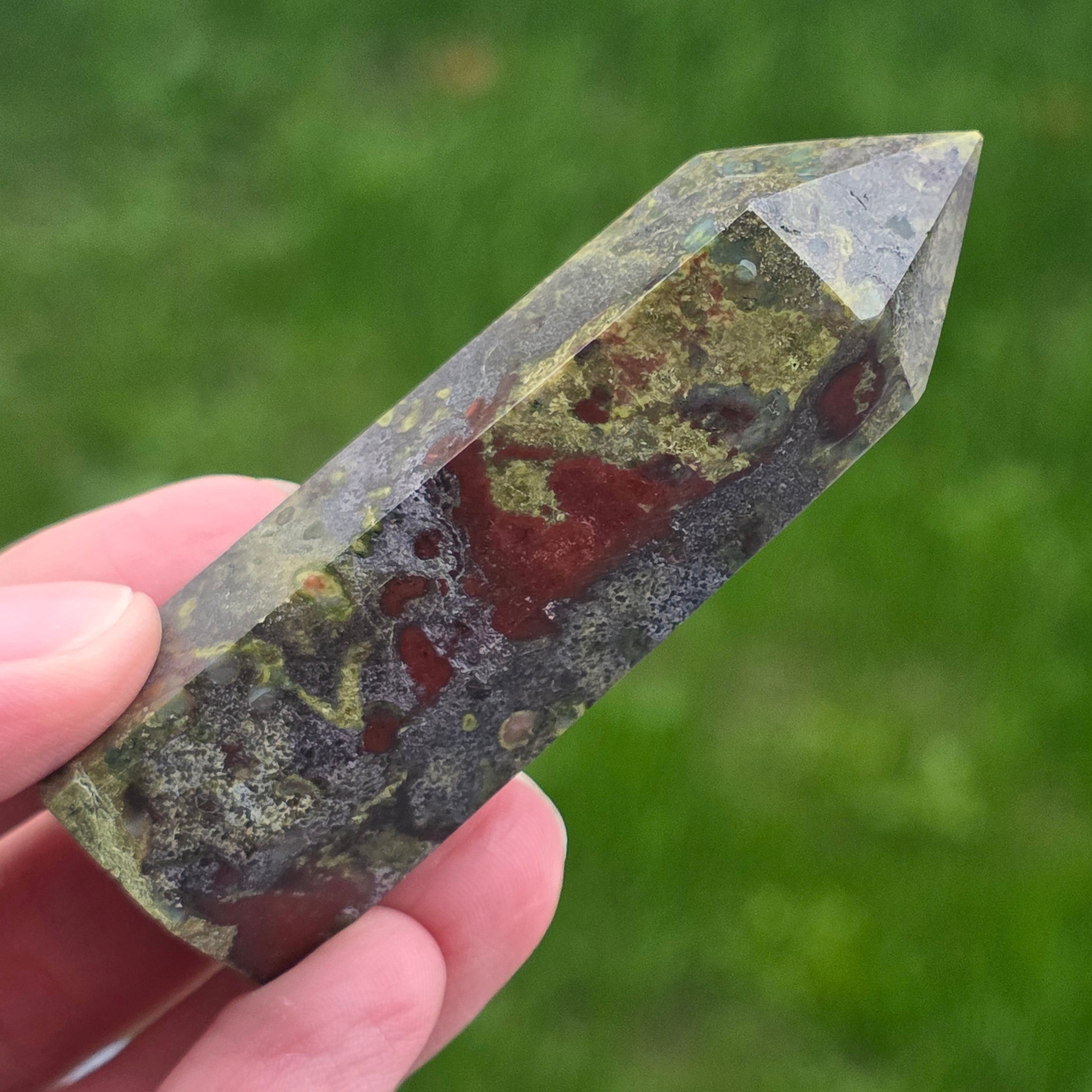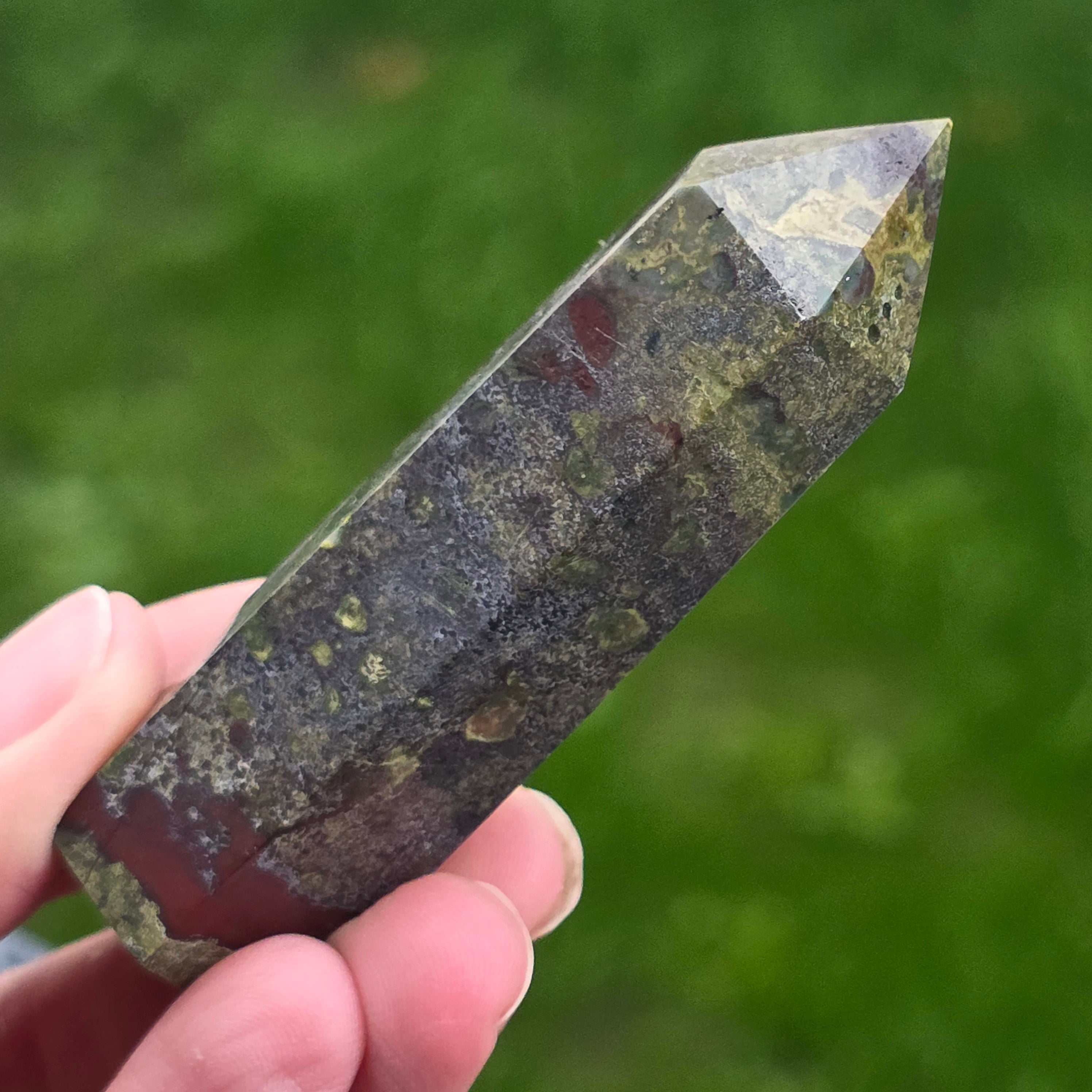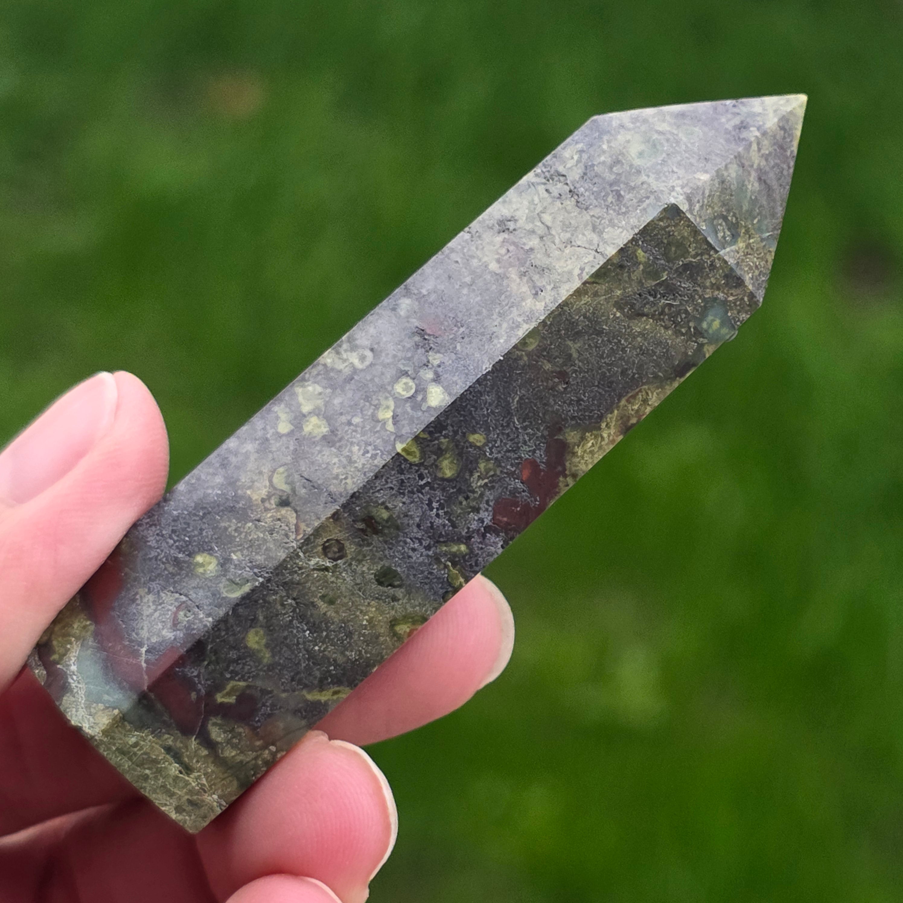 Мини обелиск от камък Кръвта на дракона (епидот & пиемонтит) | Модел 11