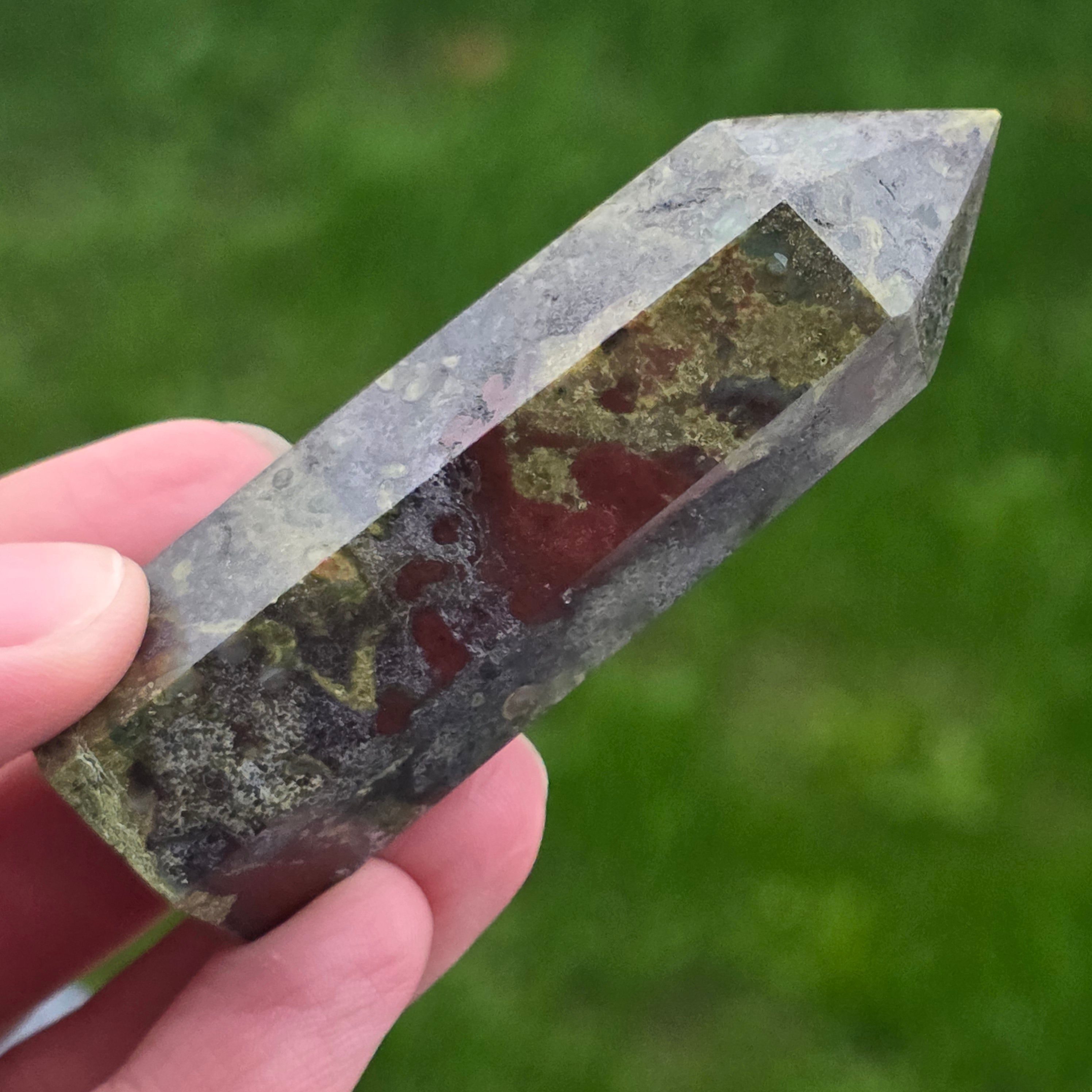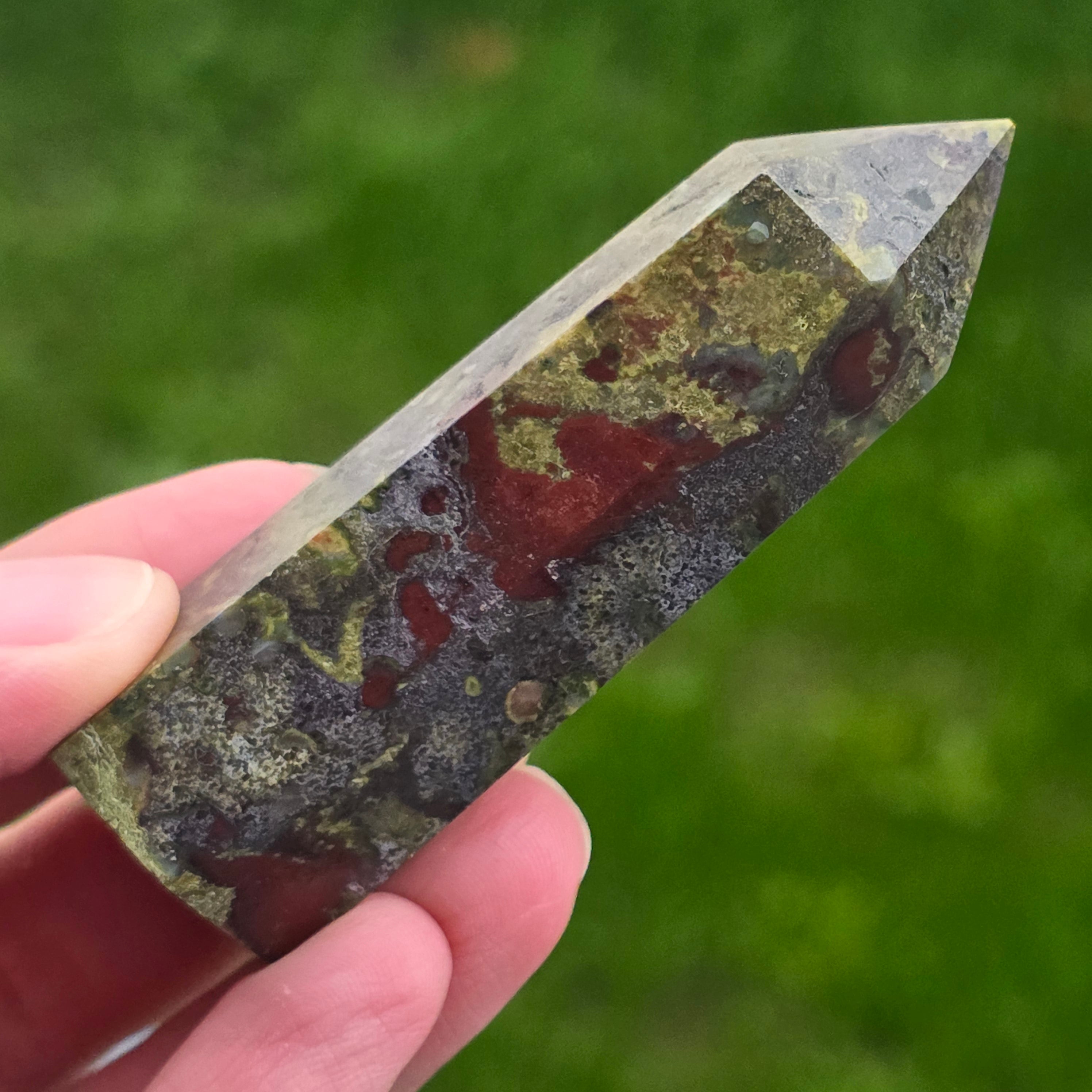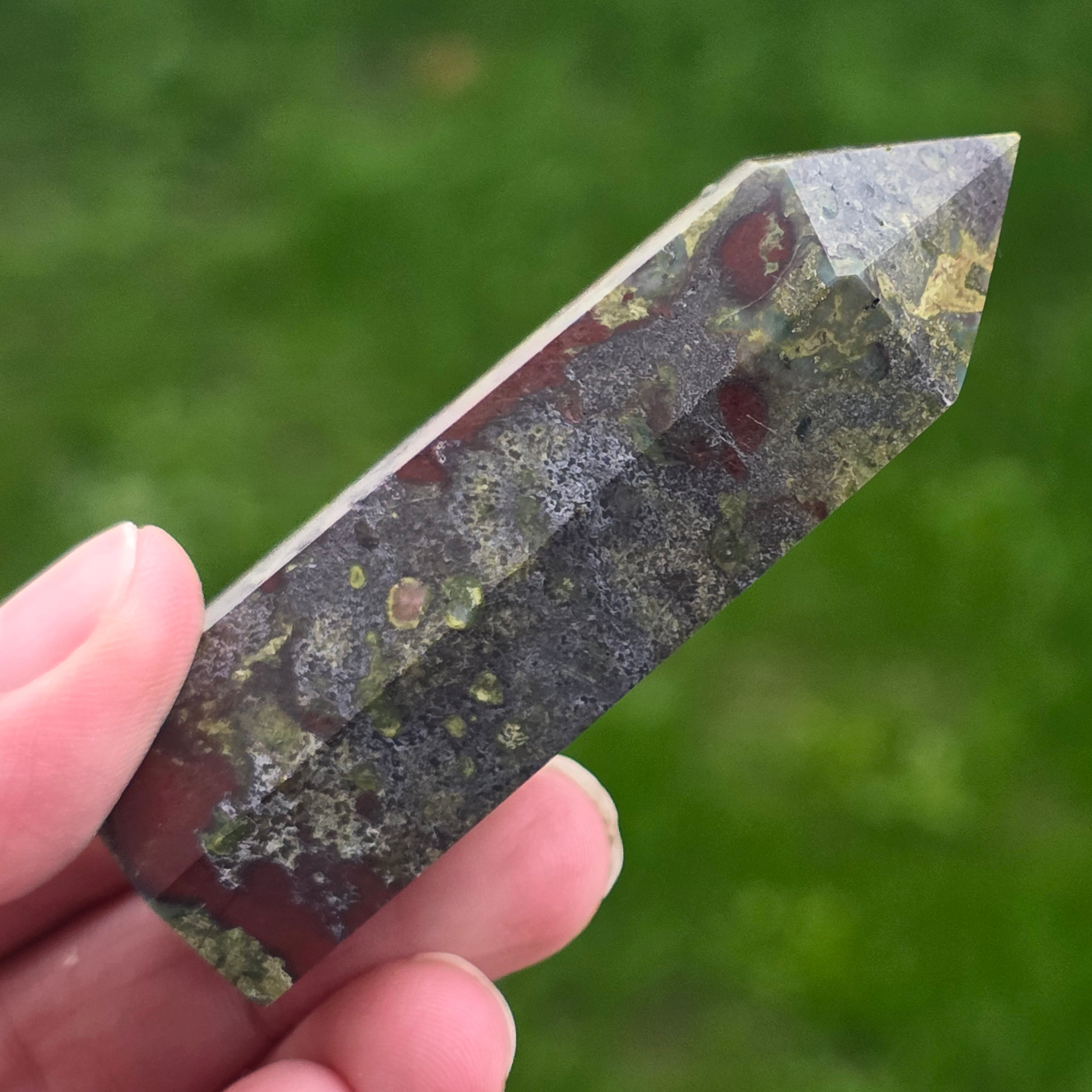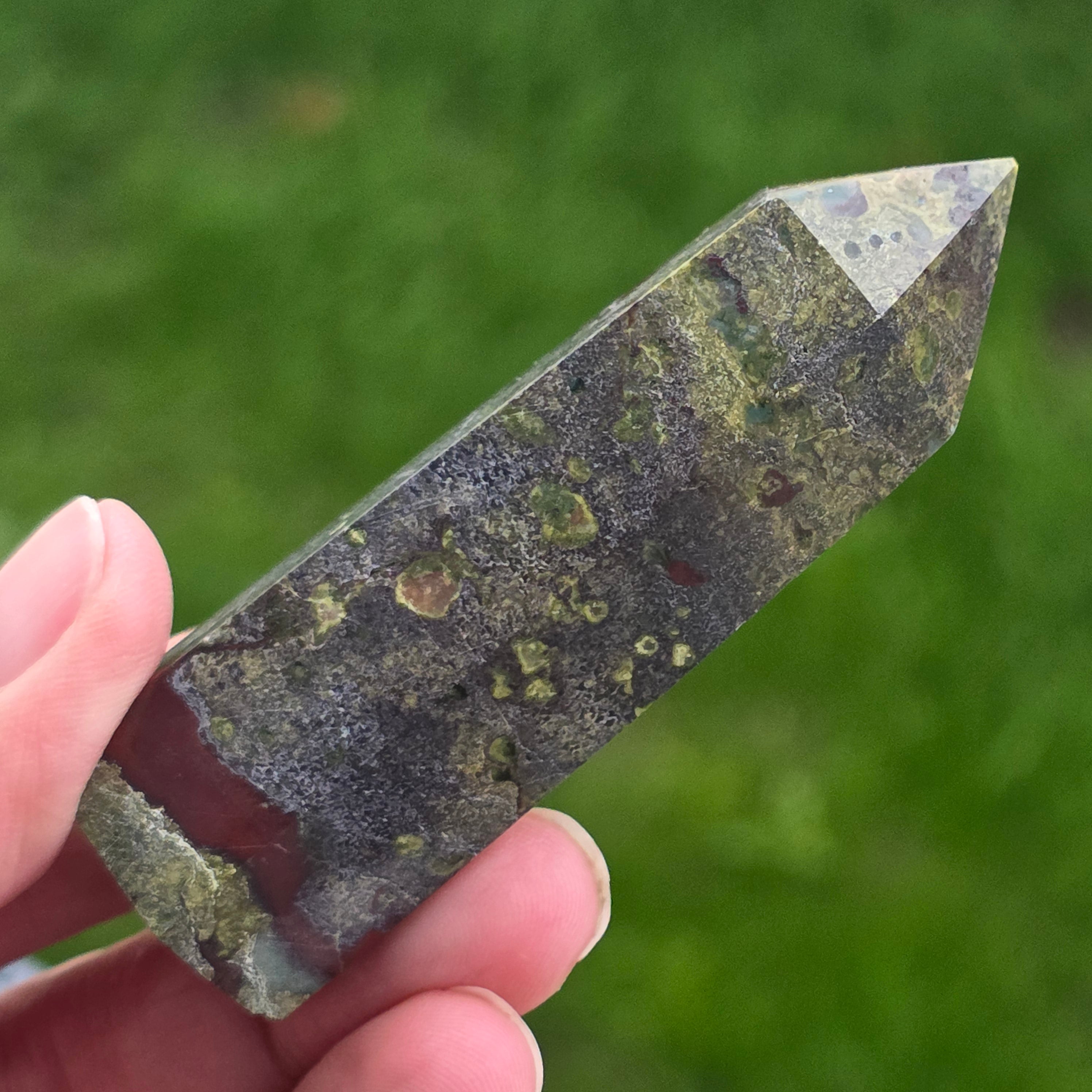 Мини обелиск от камък Кръвта на дракона (епидот & пиемонтит) | Модел 11