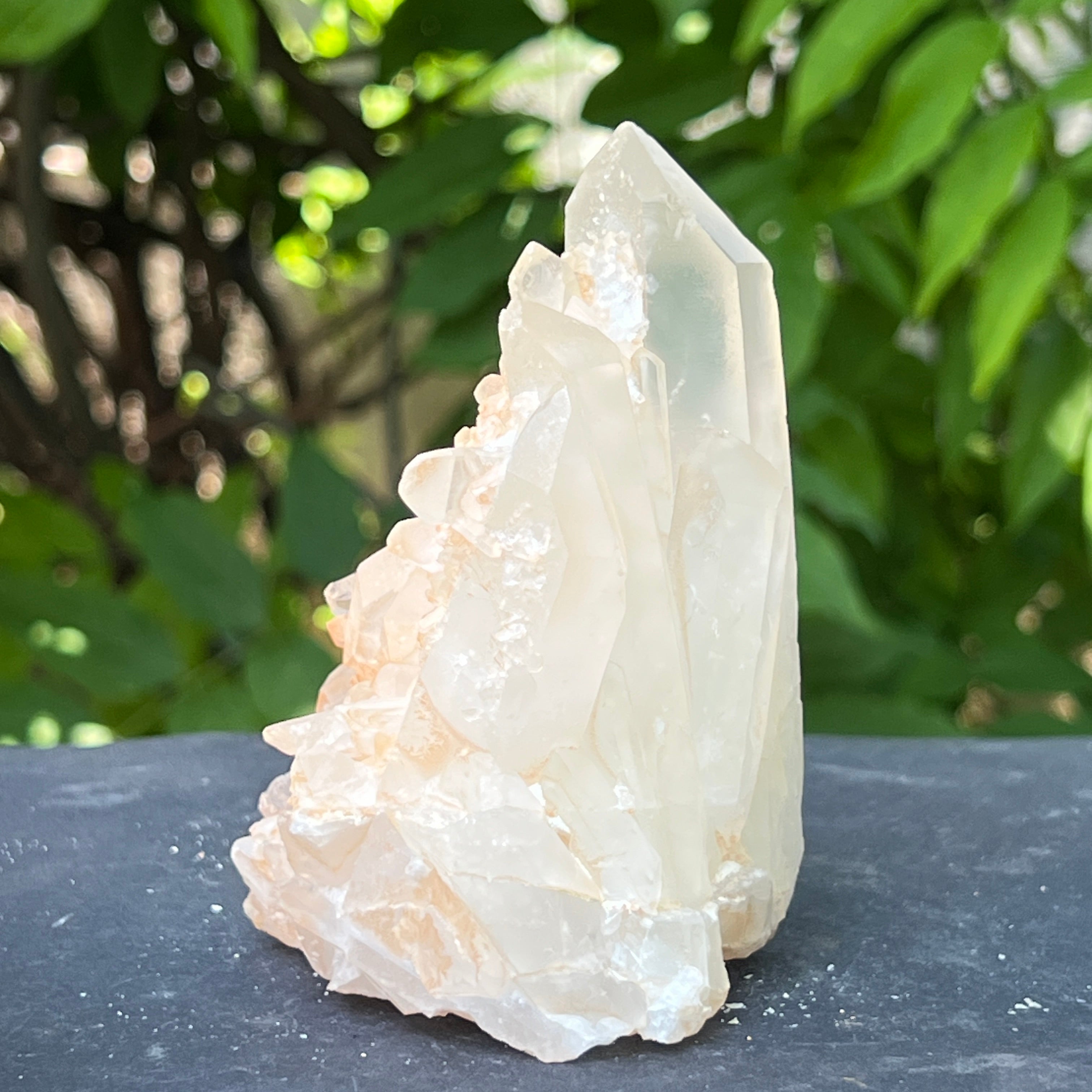 Безцветният кварц е особено ценен заради пречистващото свойство, което придава на медитациите или пространствата, в които е поставен.