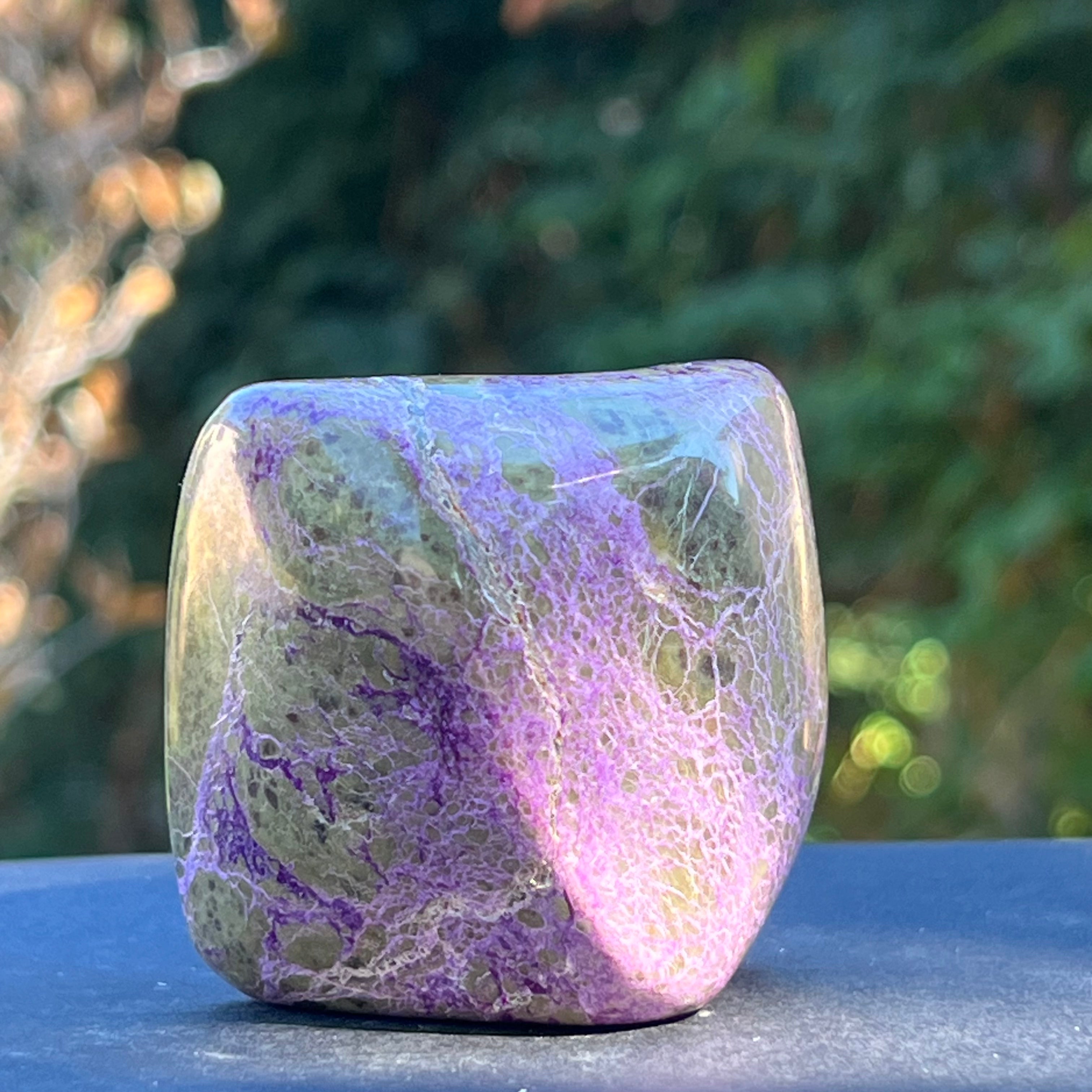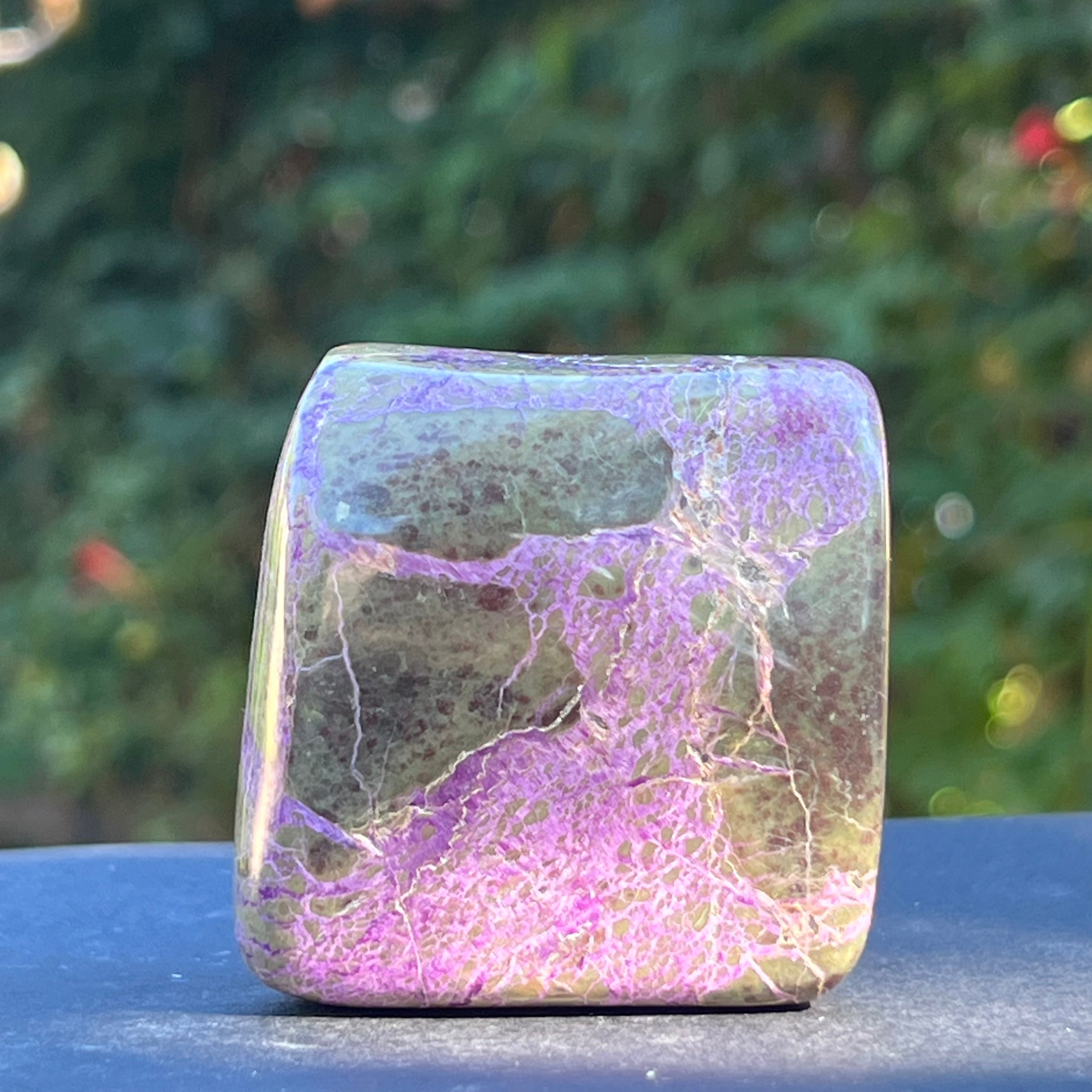 Stichte е широко известен с пастелните си нюанси на лавандула, розово и лилаво. Често се появява под формата на тънки жилки или покрития в серпентинитни скали, създавайки приятен визуален контраст.