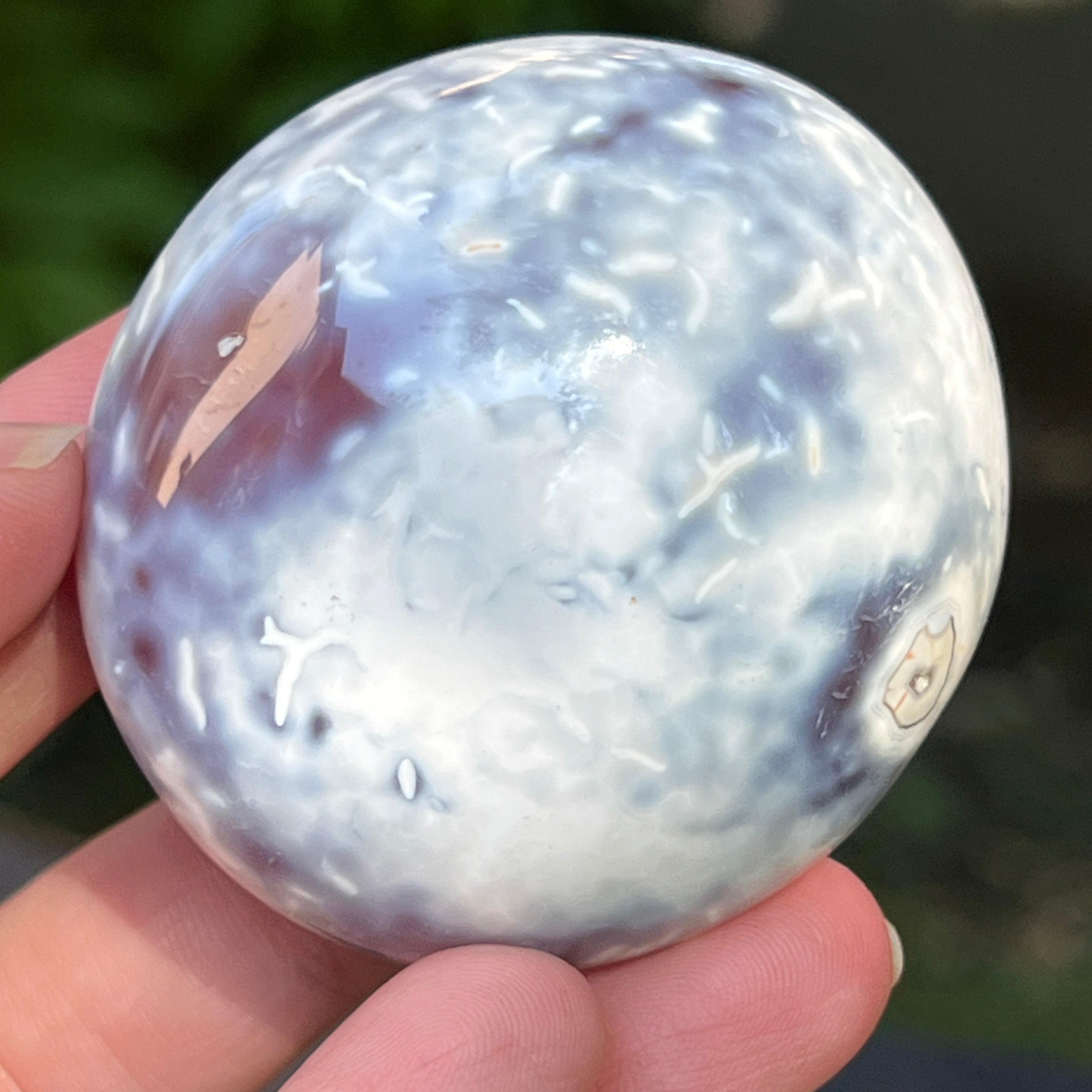 Агатът Орка е рядка и впечатляваща разновидност на агата, криптокристална форма на кварца, принадлежаща към семейството на халцедона. Образува се чрез последователни отлагания на силициев диоксид в вулканични кухини, което резултира в фини концентрични ивици с гладък вид и компактна текстура. Характерният му цвят – комбинации от синьо-сиво, черно и бяло – напомня елегантността и контраста на кита Орка, откъдето идва и името на камъка. В зависимост от минералните включвания, Агатът Орка може да съдържа и нюанси на червеникаво, жълто, ръждиво или кафявочесто под формата на деликатни акценти, които придават уникалност на всеки екземпляр.