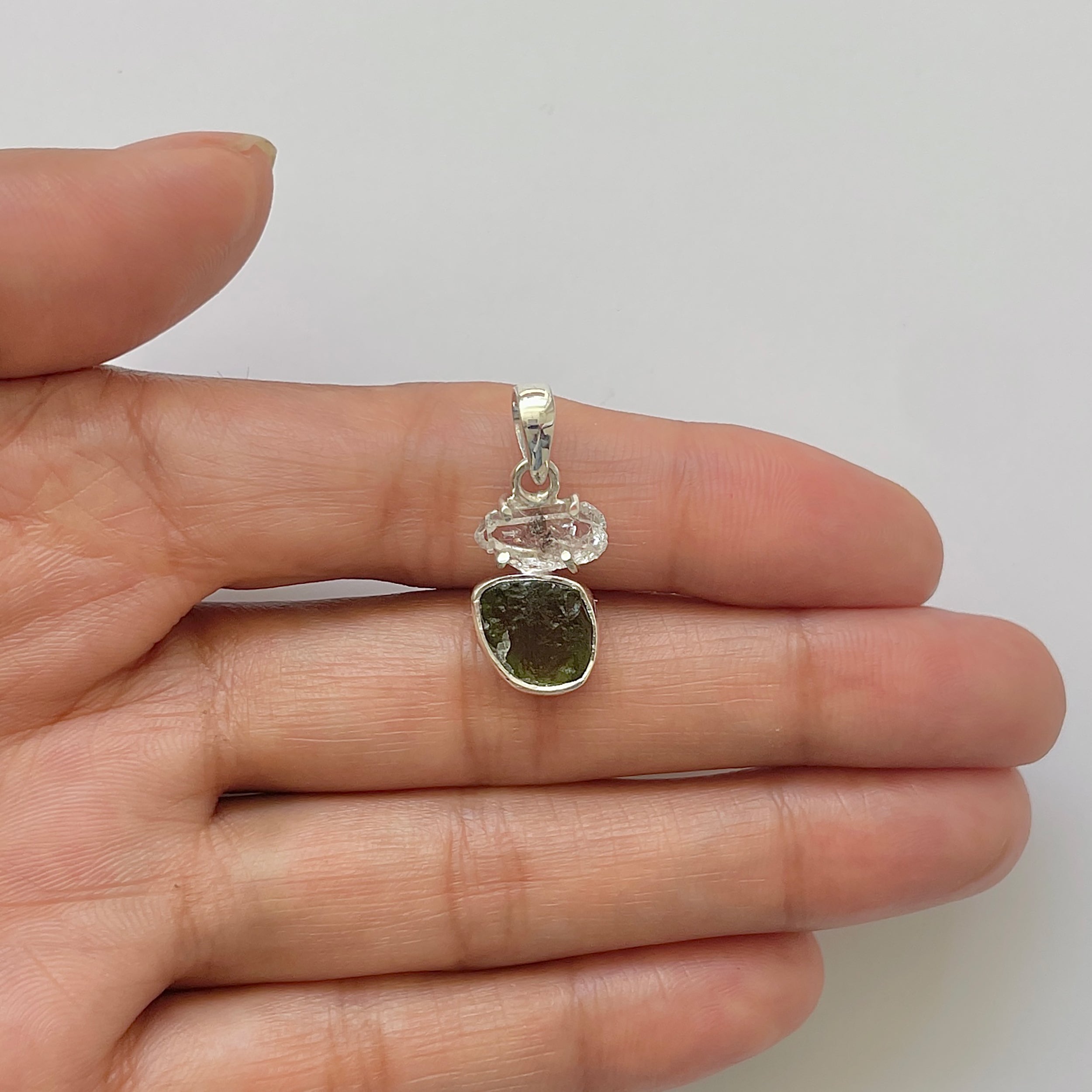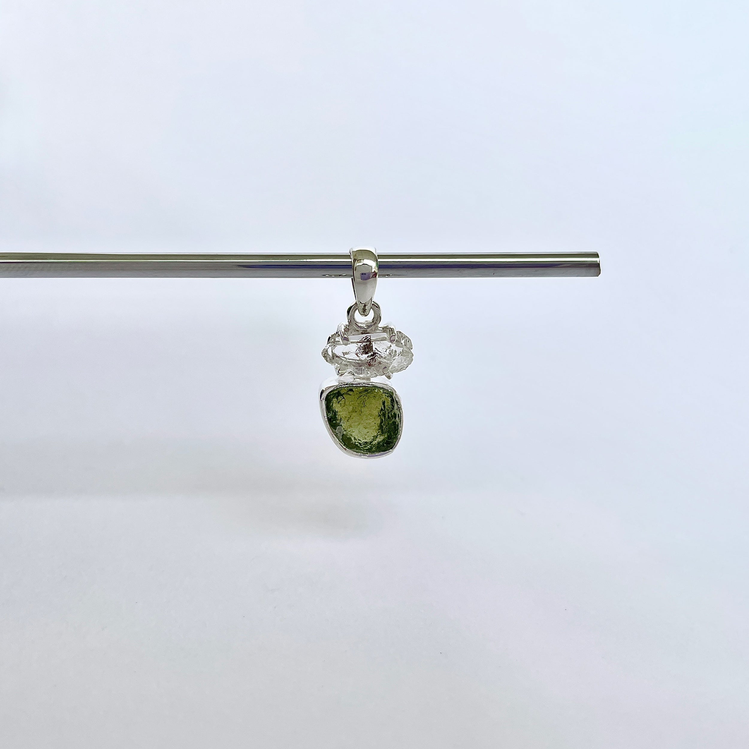 Размер на камъните: Молдавит ~ 0,9 x 0,8 см, Херкимър ~ 1,1 x 0,6 см