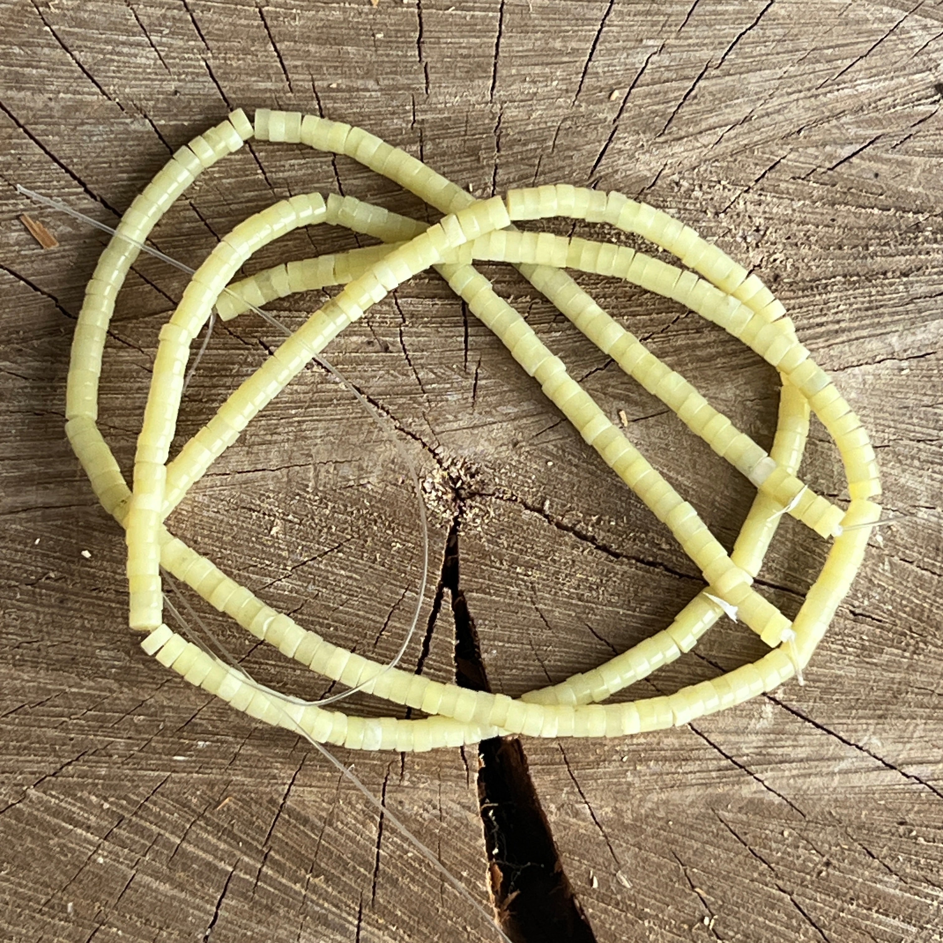 Наниз от зелен нефритсъставен от естествени плочки, идеален за колиета, гривни или други ръчно изработени бижута.