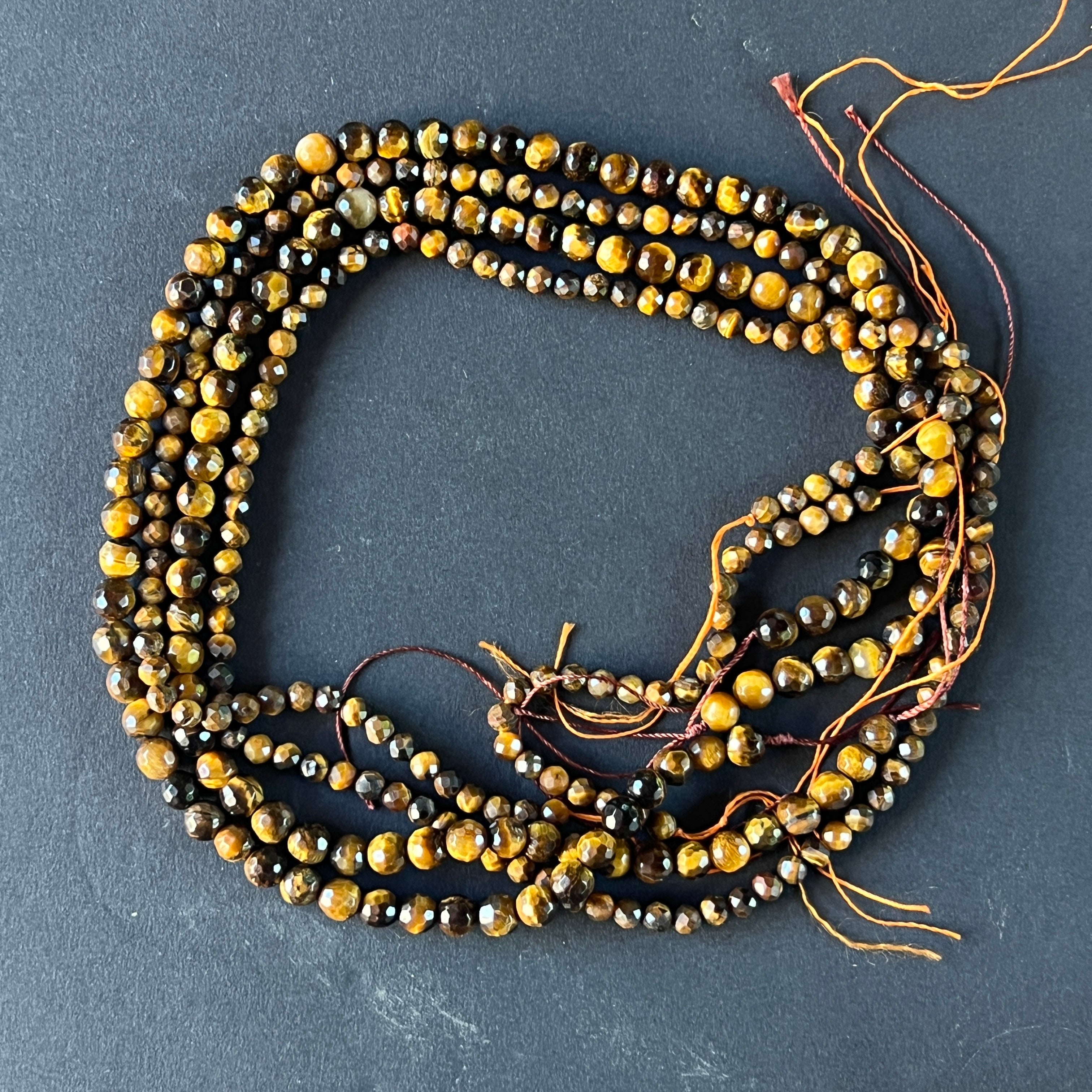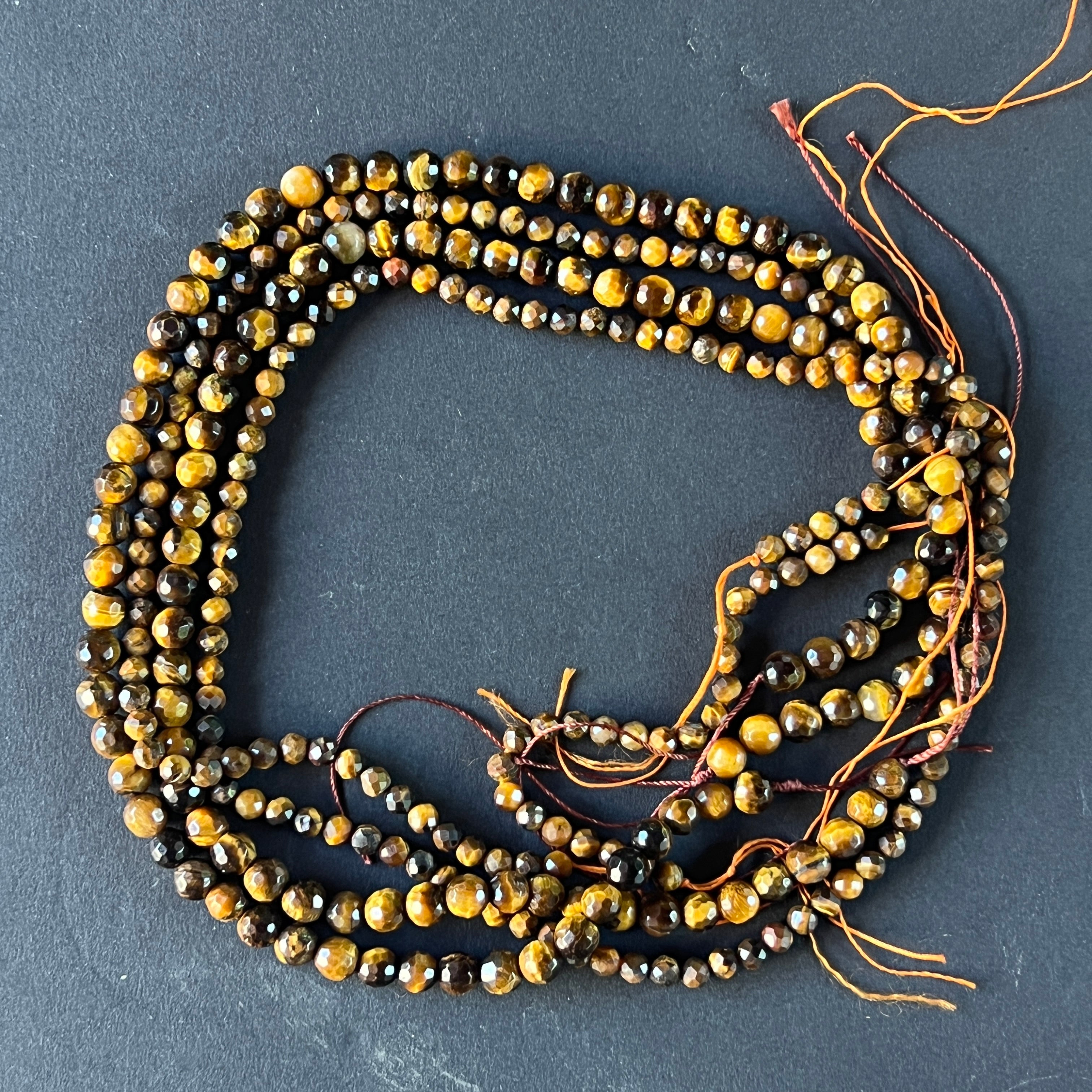 Сироп от тигрово око, съставен от естествени ФАСЕТНИ сферични мъниста, идеален за колиета, гривни или други ръчно изработени бижута.
