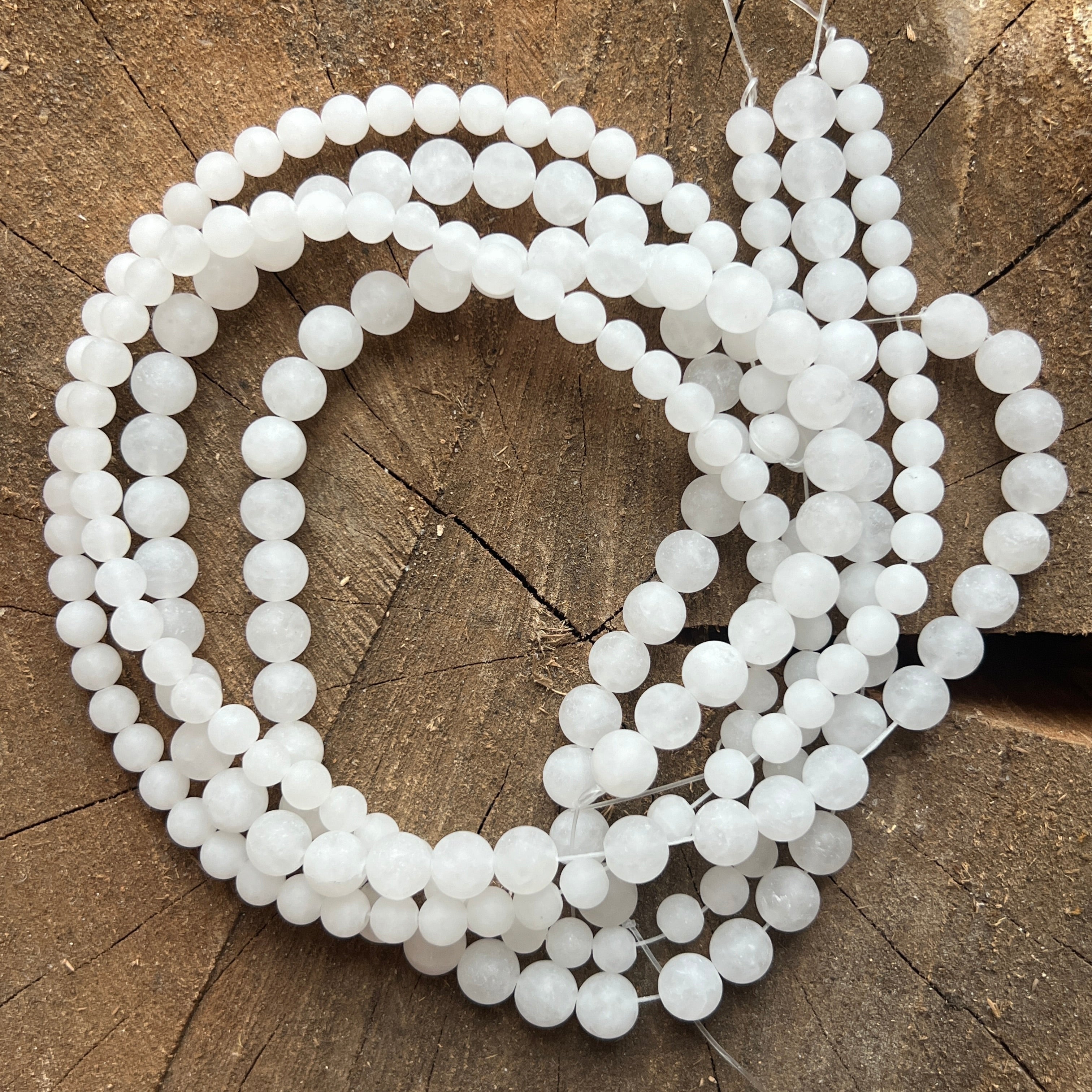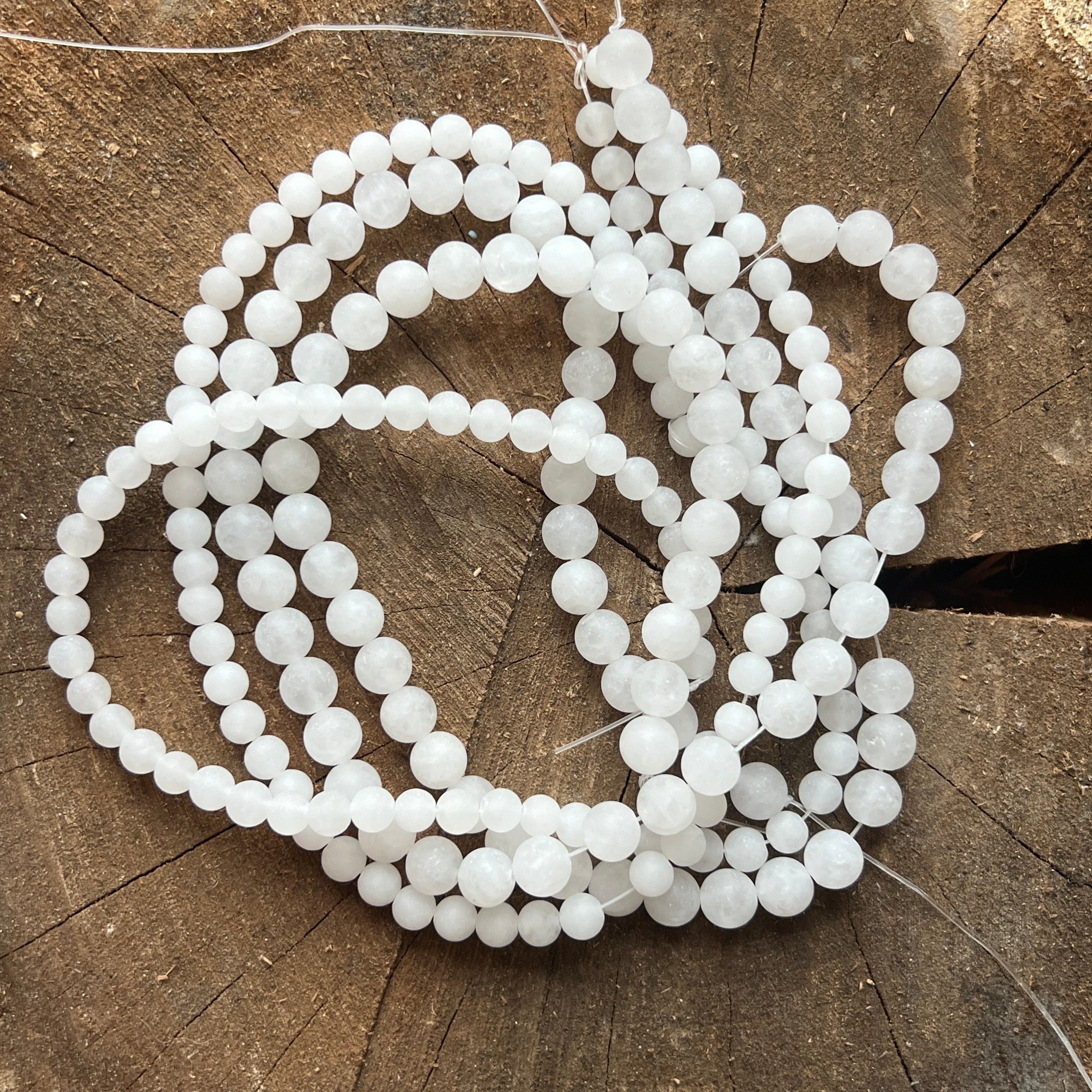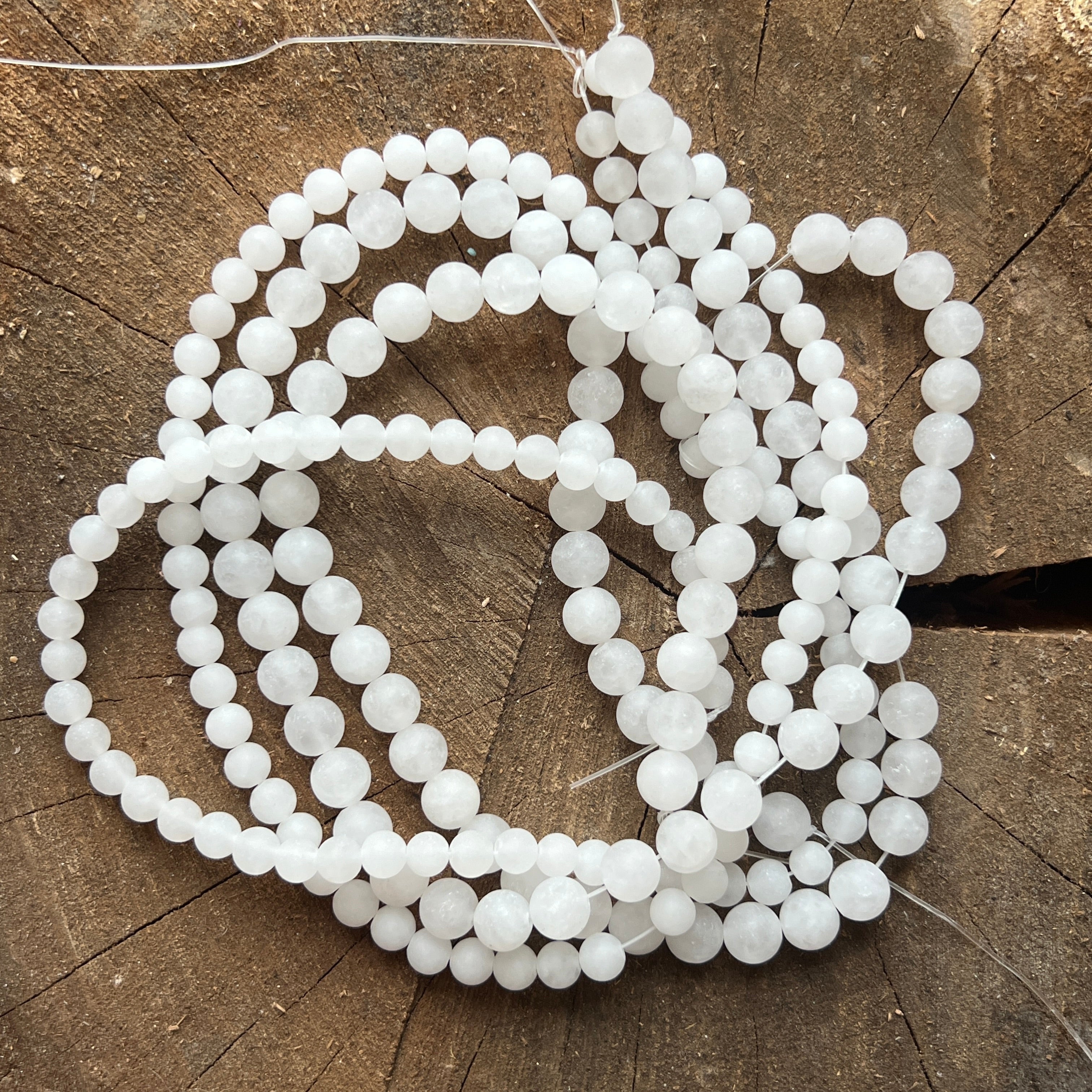 Навременен низ от мъниста от полускъпоценни камъни, сферични БЯЛ ДЖАД МАТ