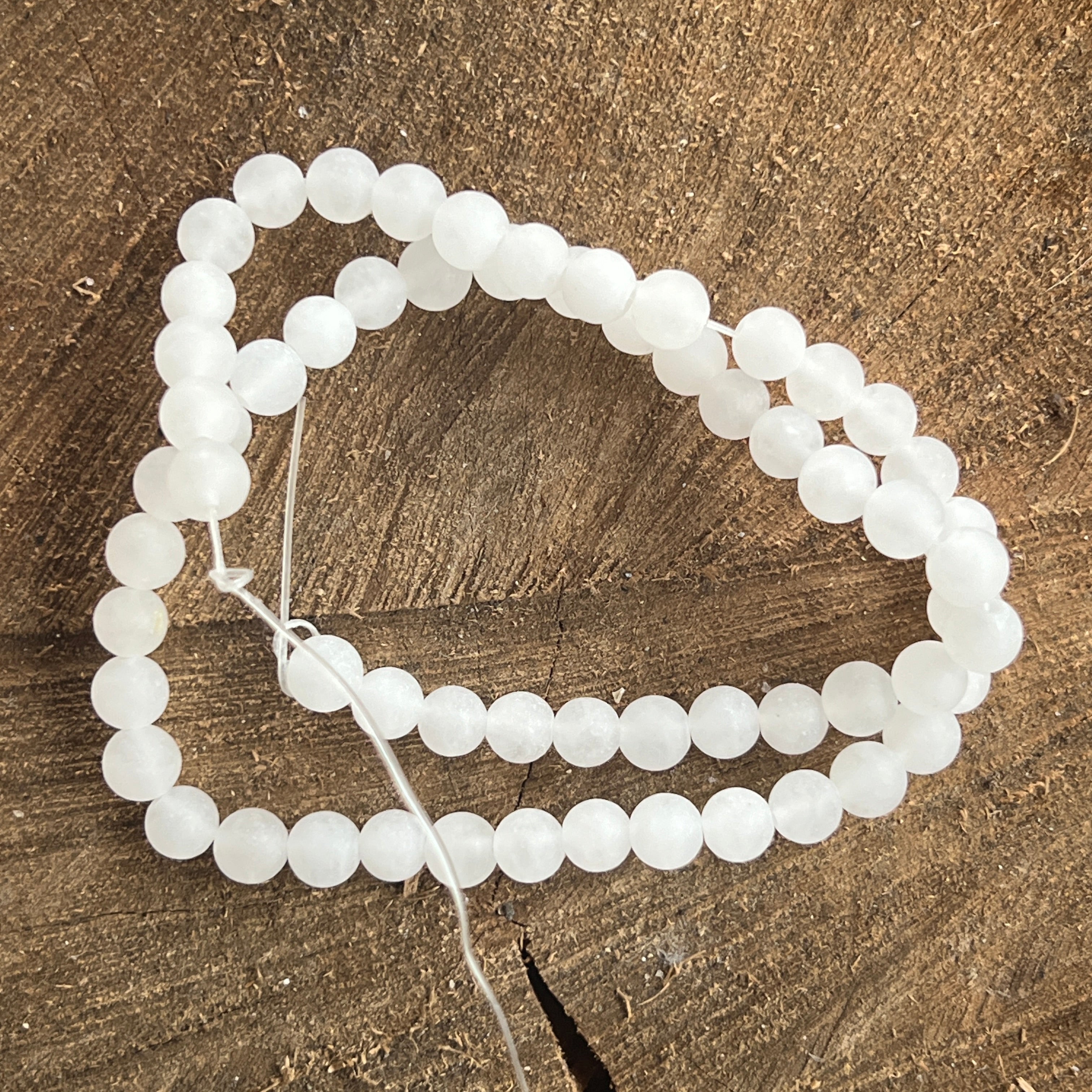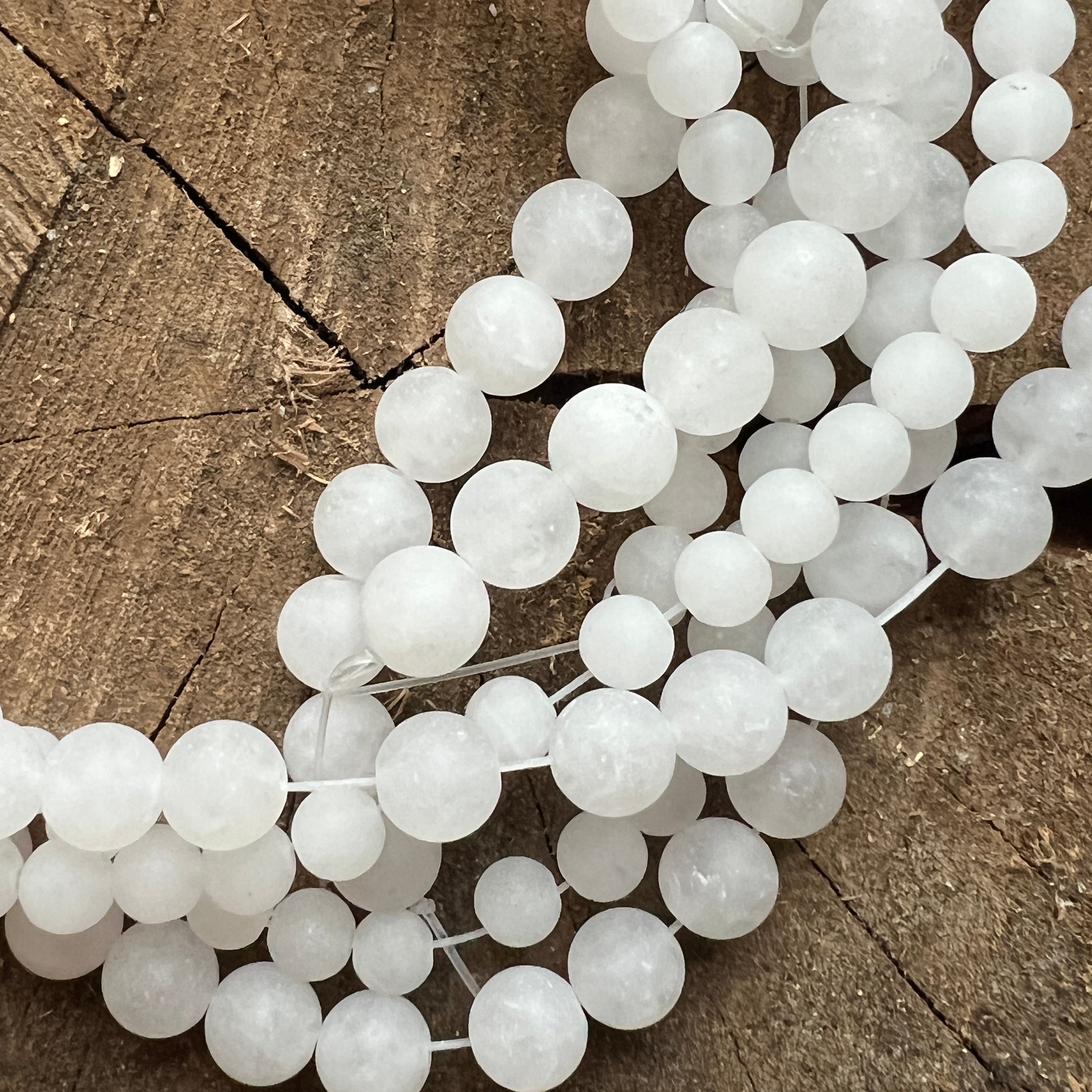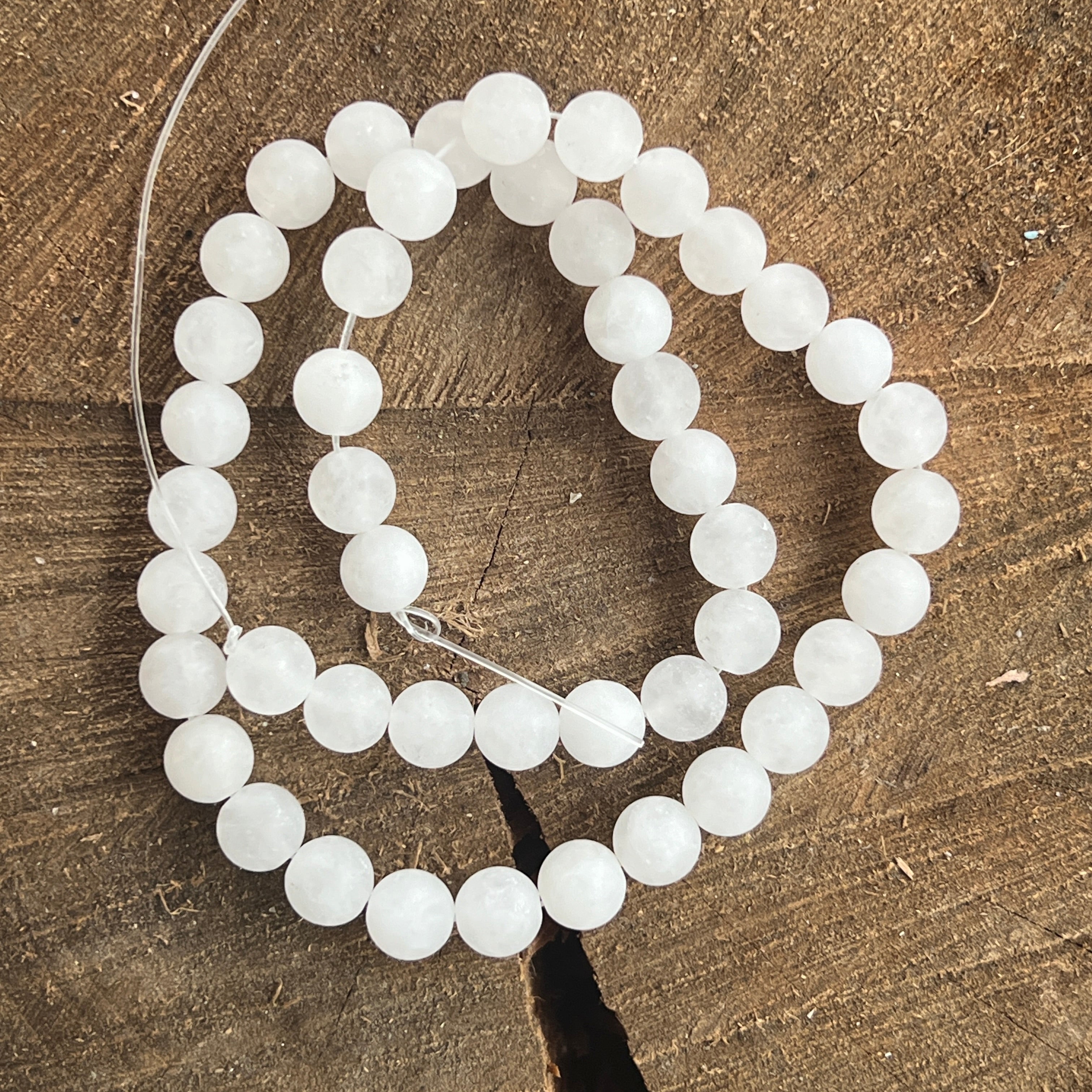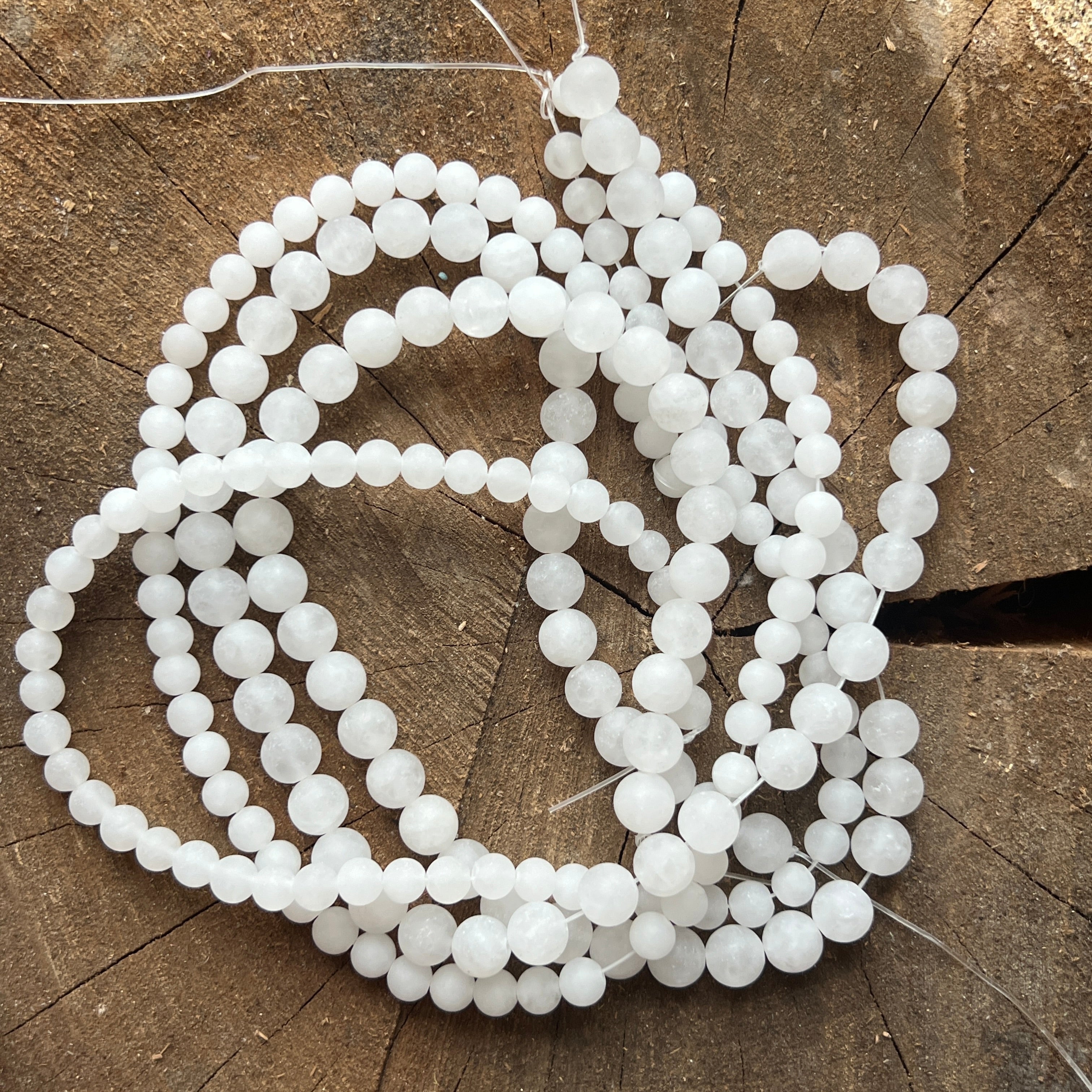 Навременен низ от мъниста от полускъпоценни камъни, сферични БЯЛ ДЖАД МАТ