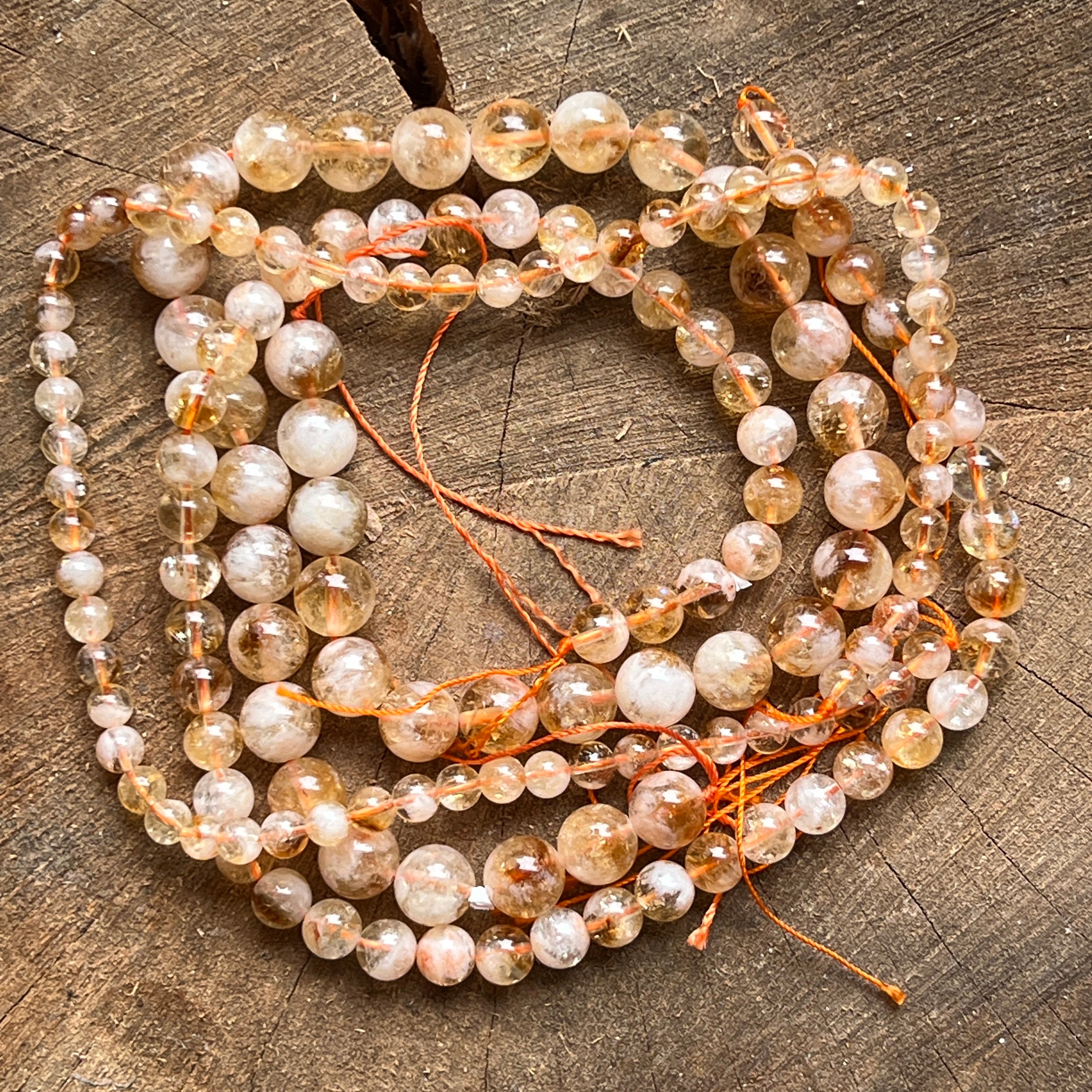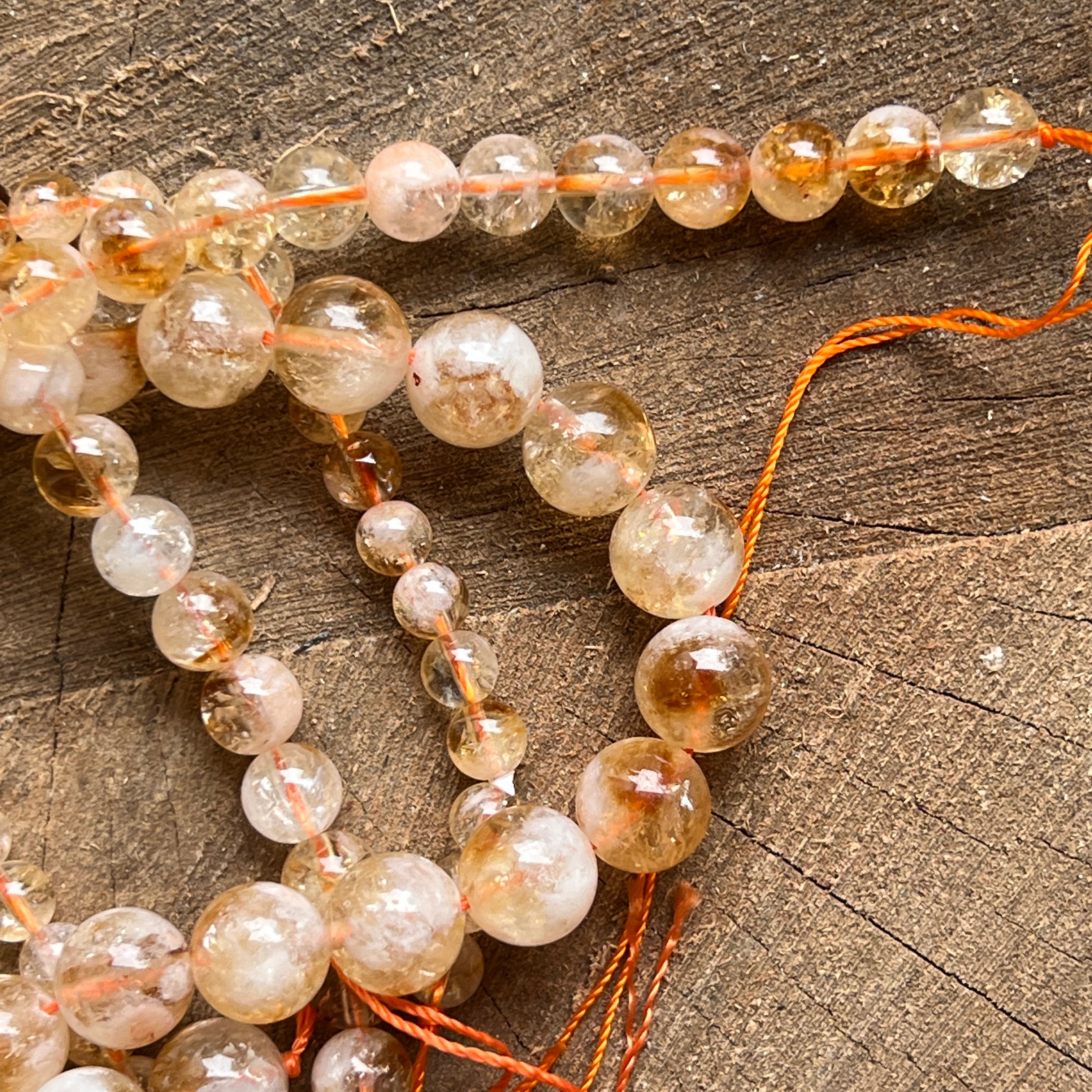 Наниз от ЦИТРИН съставен от естествени сферични мъниста,перфектен за колиета, гривни или други бижута ръчна изработка.