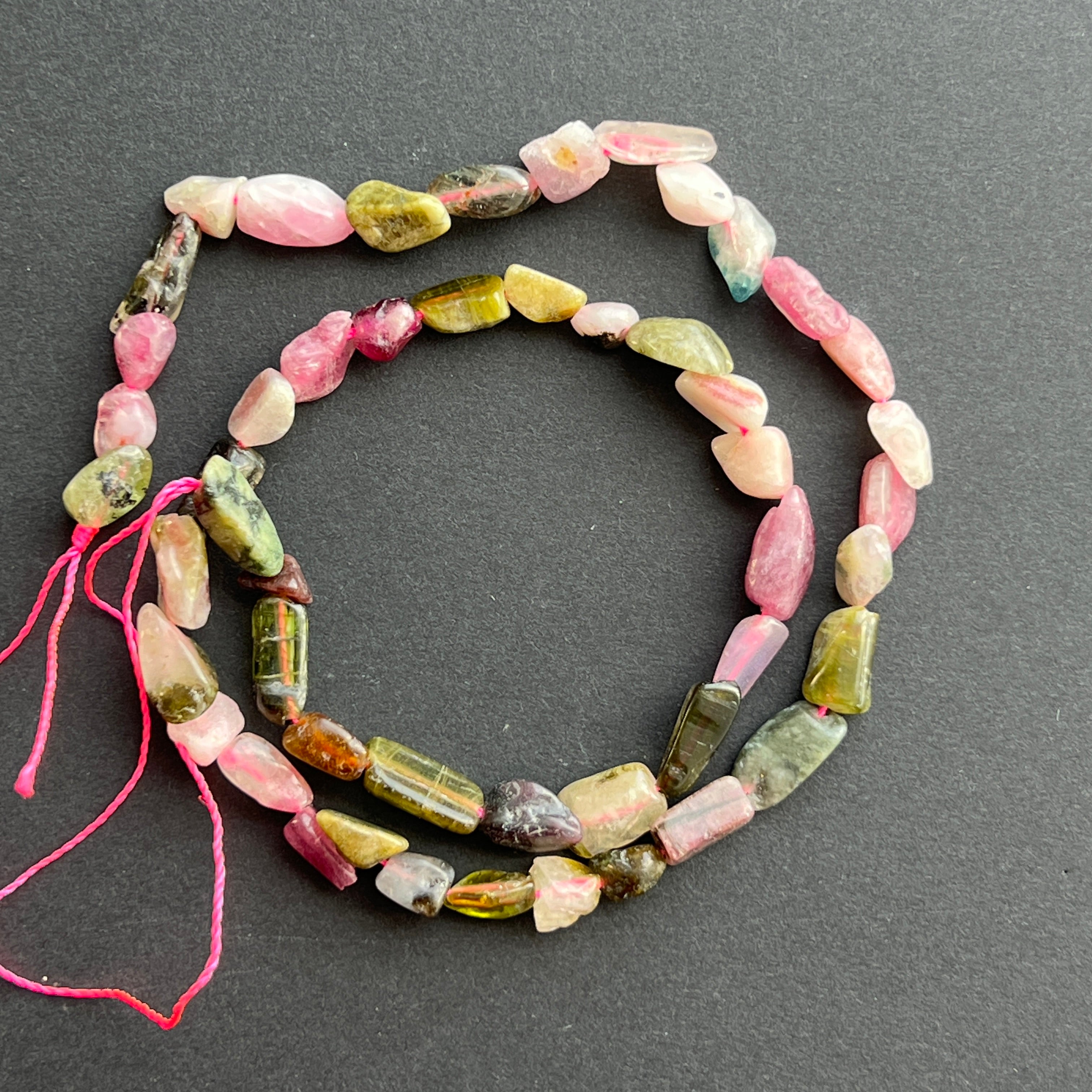 Микс от розов турмалин, съставен от груби валцувани камъни естествено, идеален за колиета, гривни или други ръчно изработени бижута.