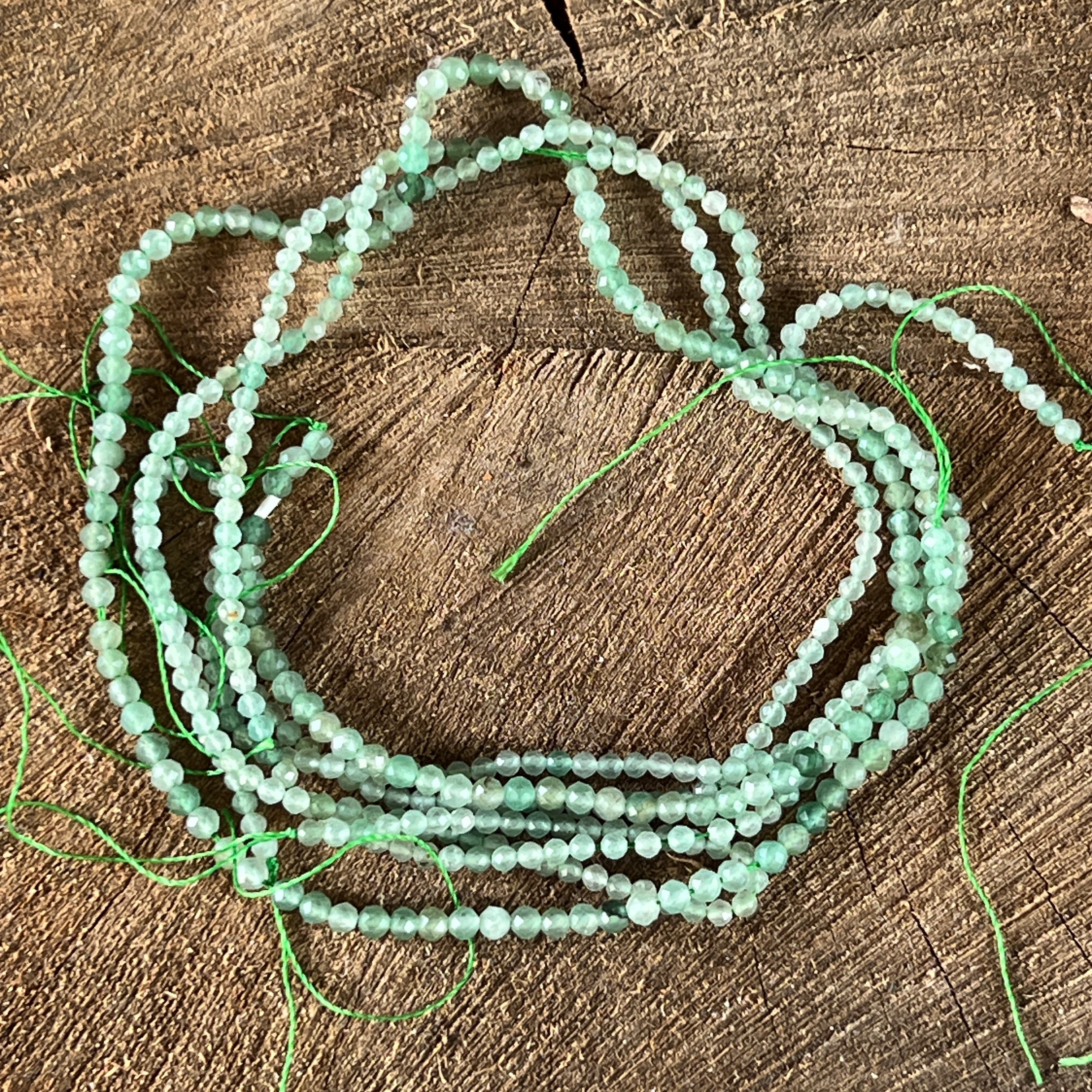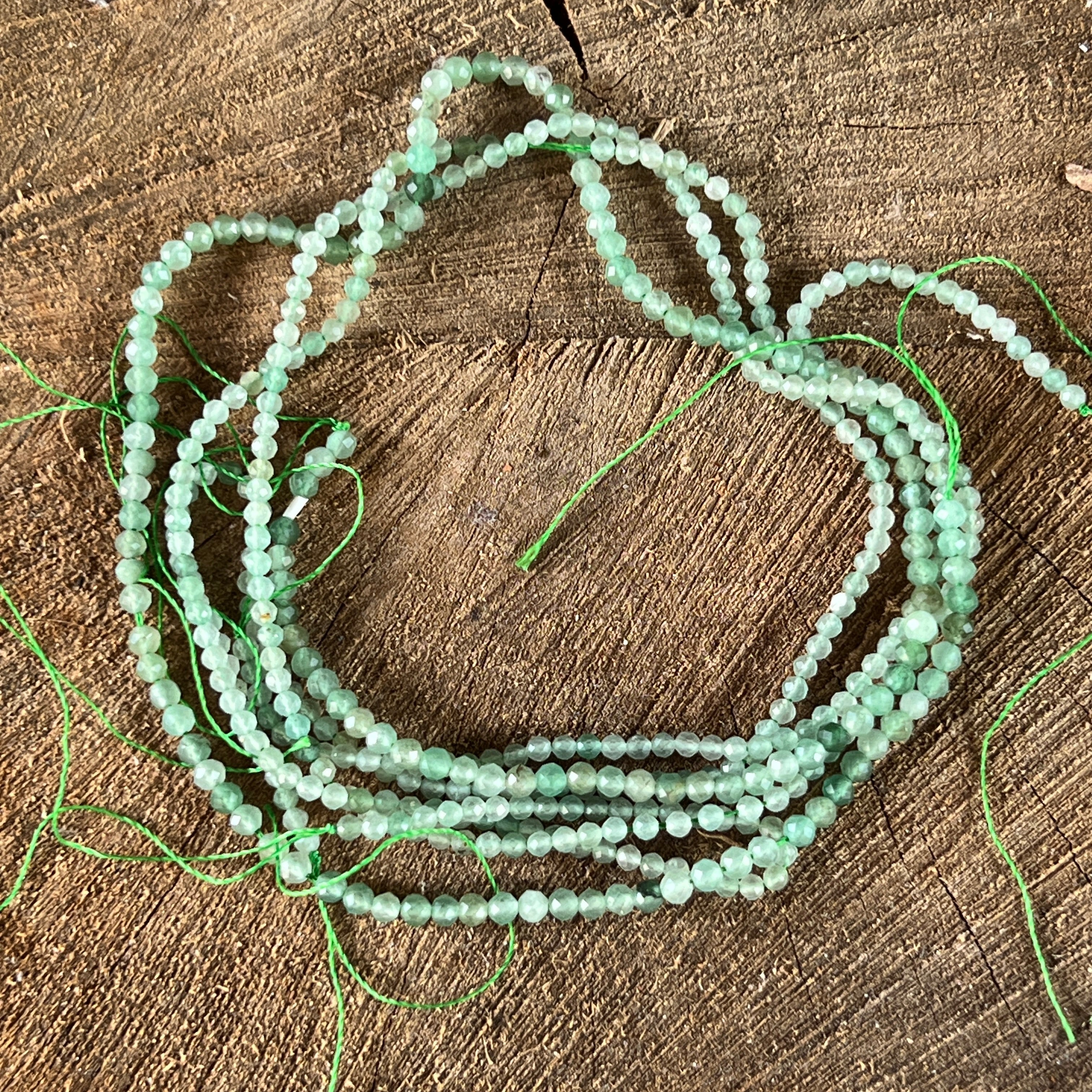 Ревюта – Нанизани мъниста полускъпоценни камъни фасетирани сфери ЗЕЛЕН АВАНТУРИН