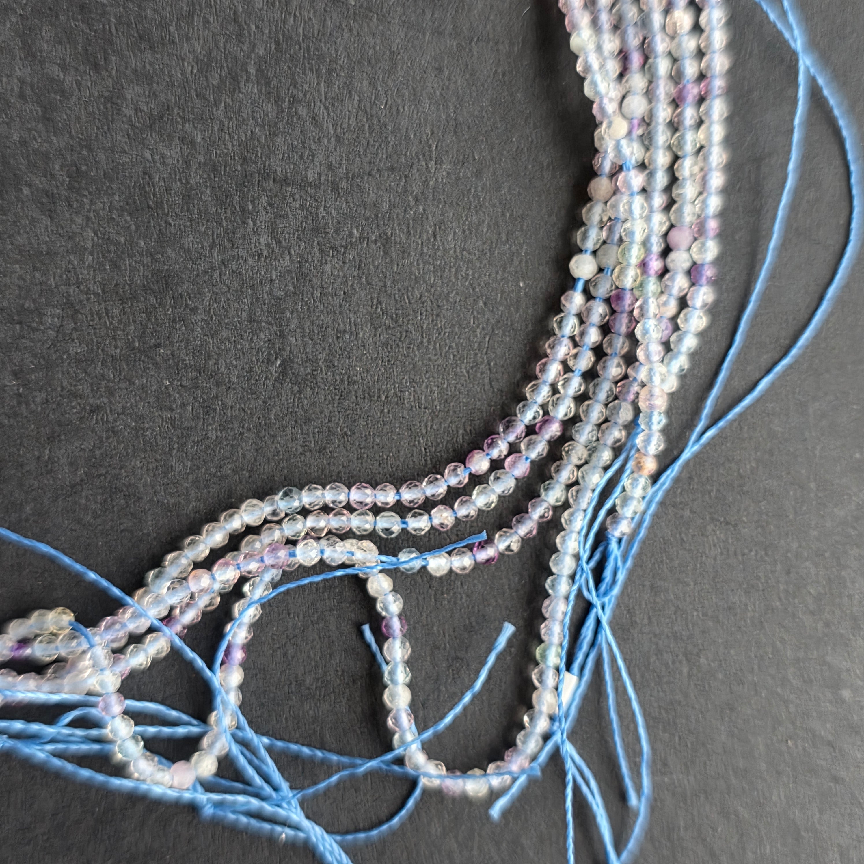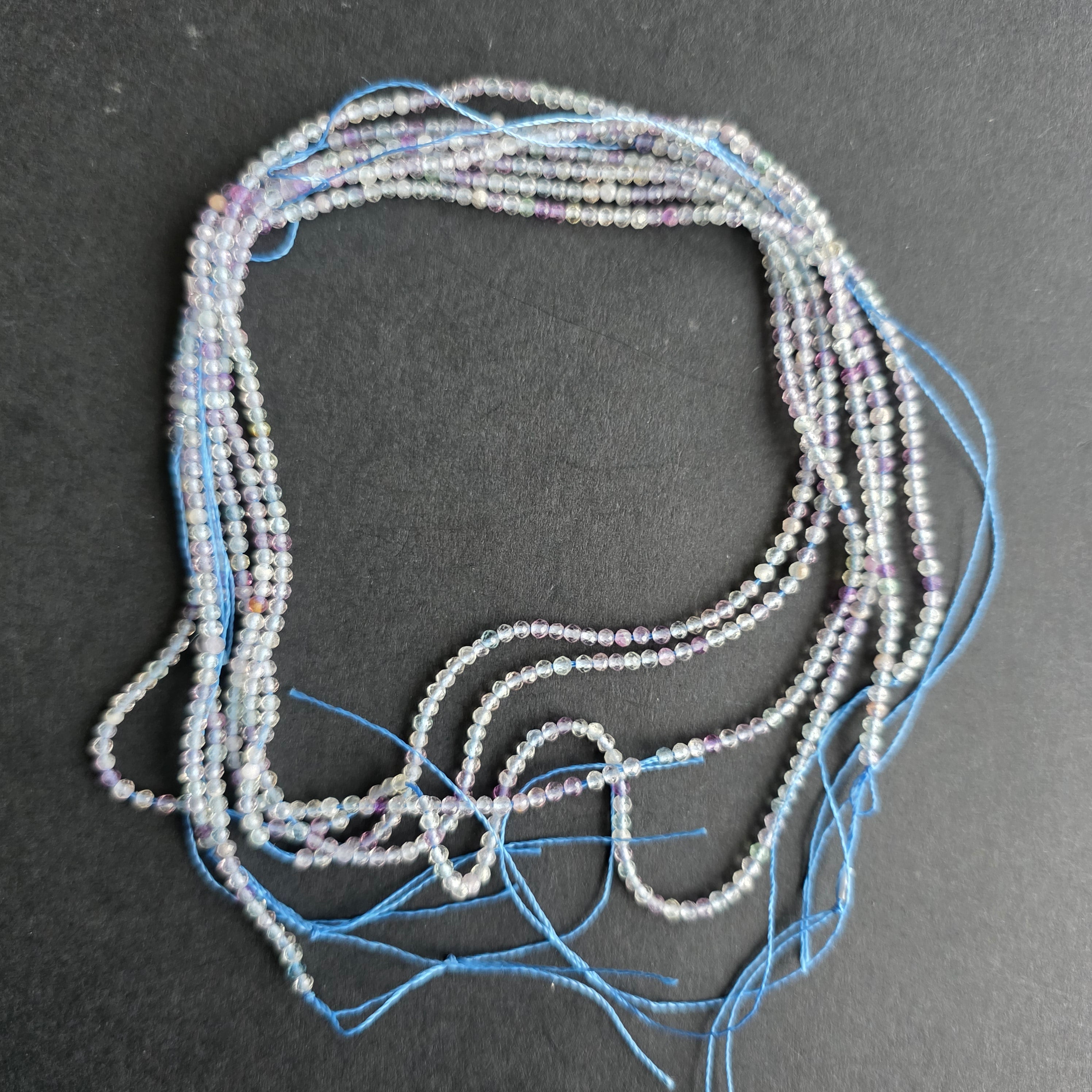 Струна от ФЛУОРИТ, съставен от естествени ФАСЕТНИ сферични мъниста, идеален за колиета, гривни или други ръчно изработени бижута.