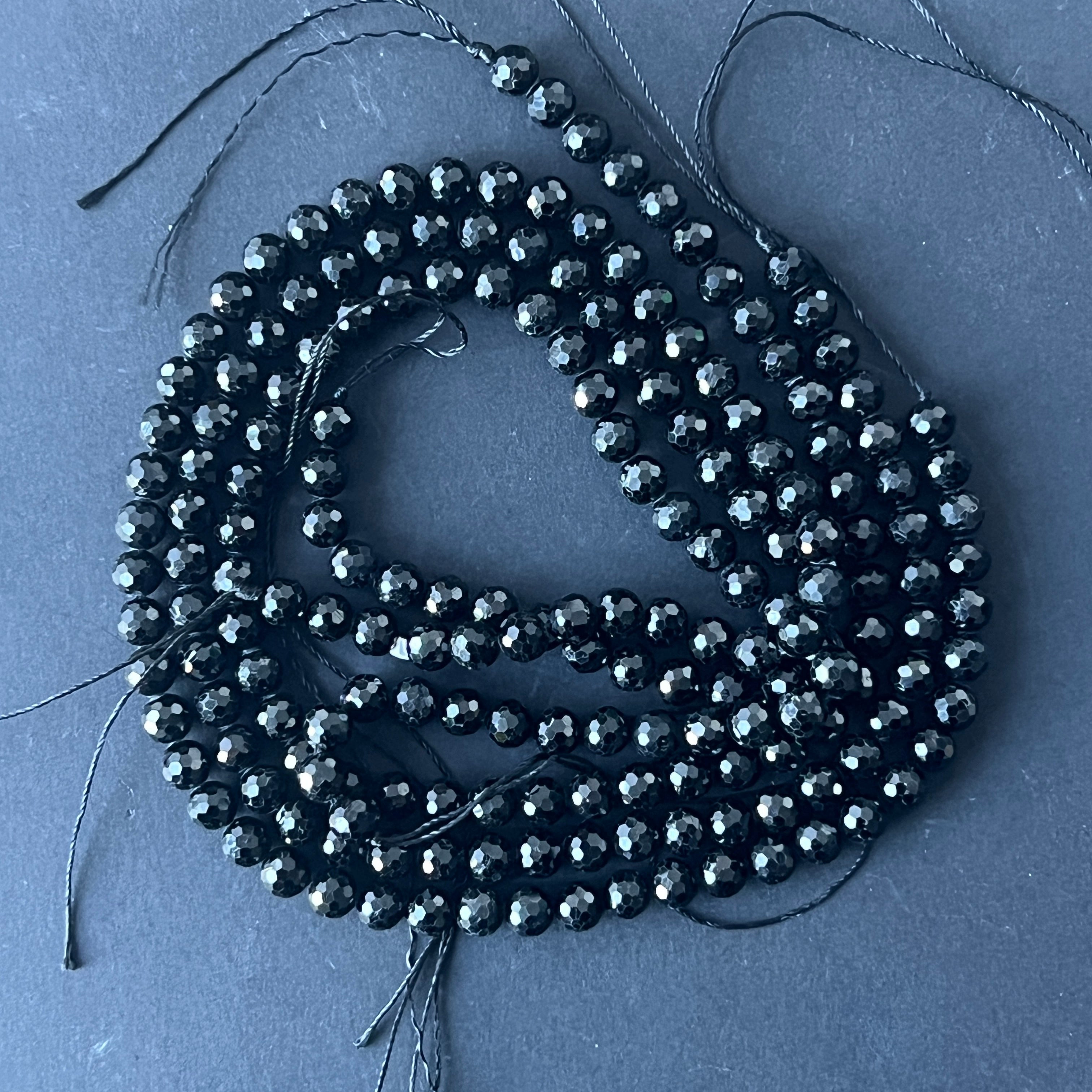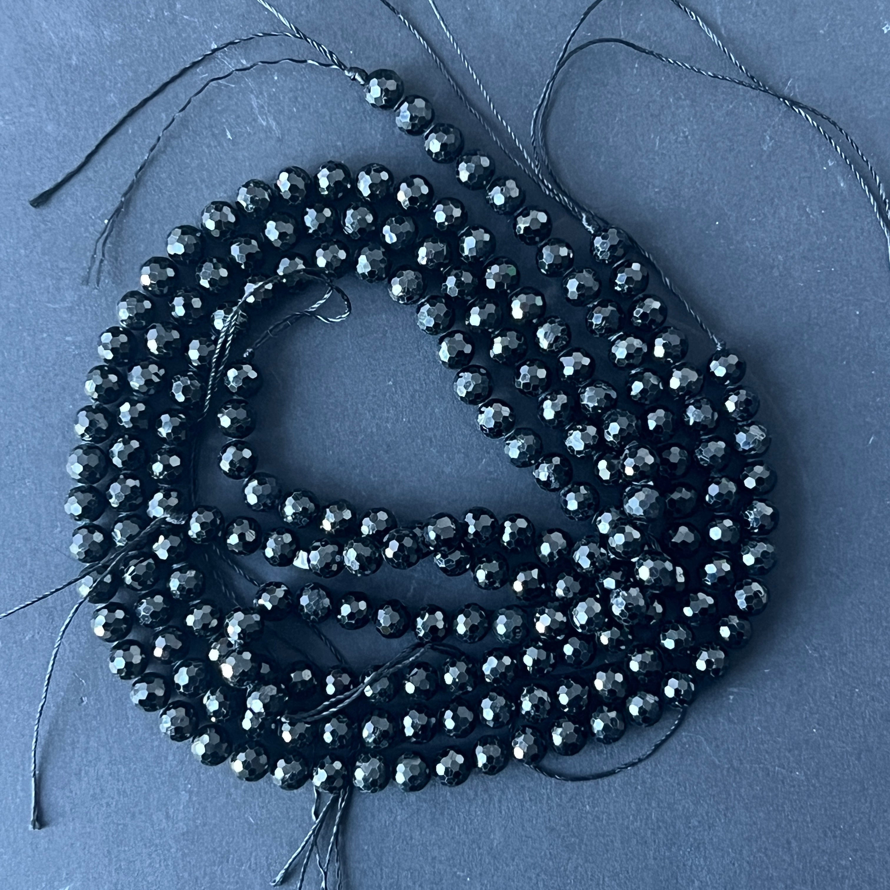 Нанизани мъниста полускъпоценни камъни фасетирани сфери черен турмалин