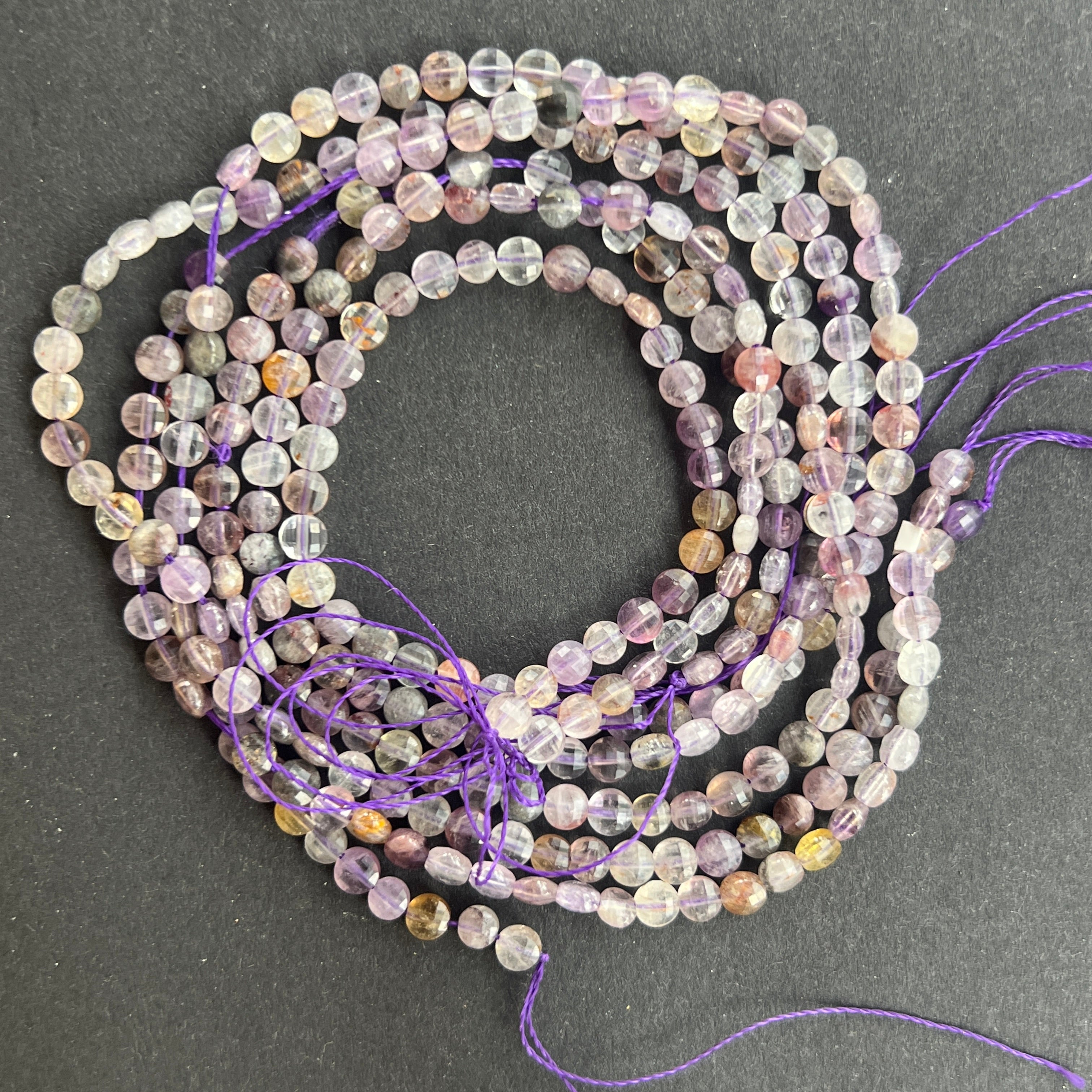 Супер 7 низ, съставен от дискове естествени ФАСЕТИ, идеален за колиета, гривни или други ръчно изработени бижута.