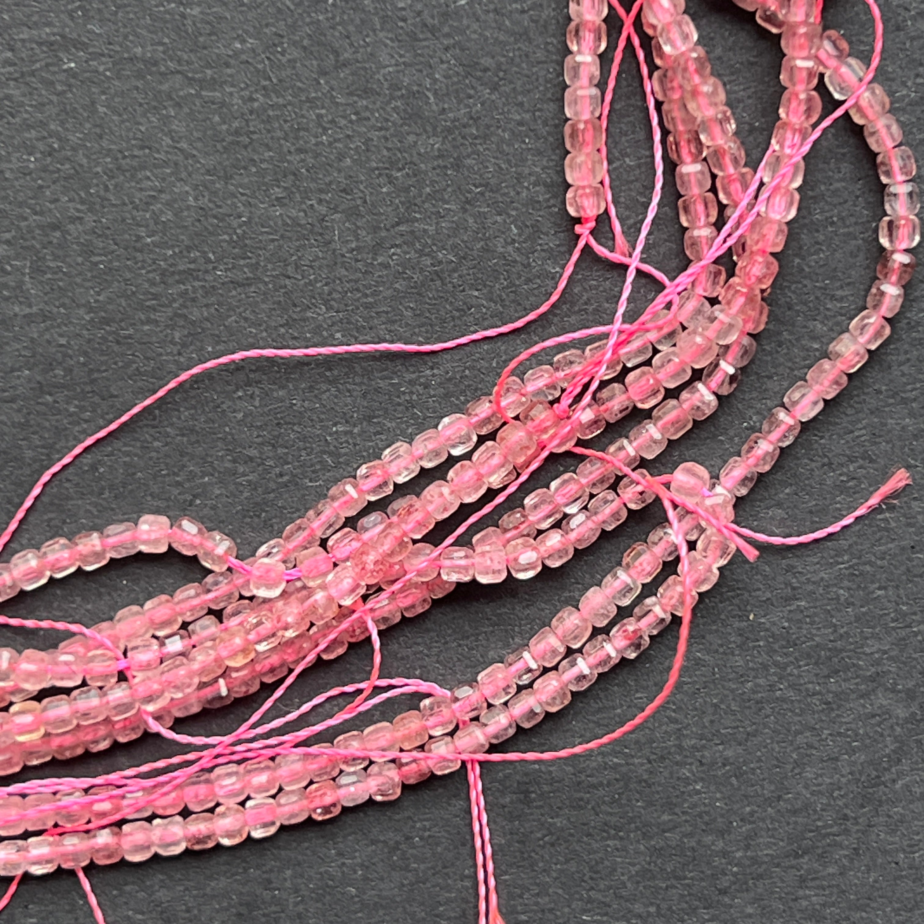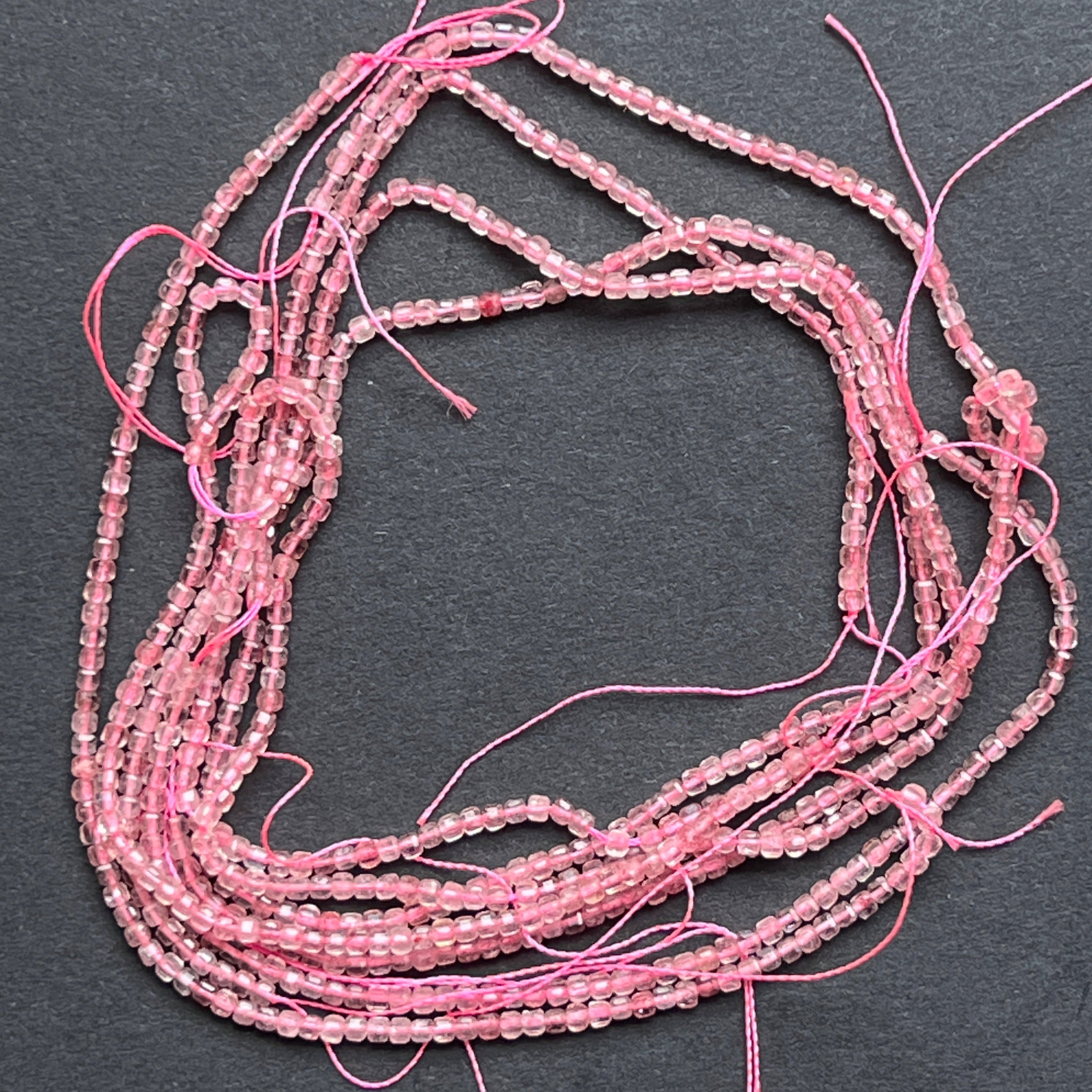 Наниз мъниста полускъпоценни камъни фасетирани кубчета ЯГОДА КВАРЦ