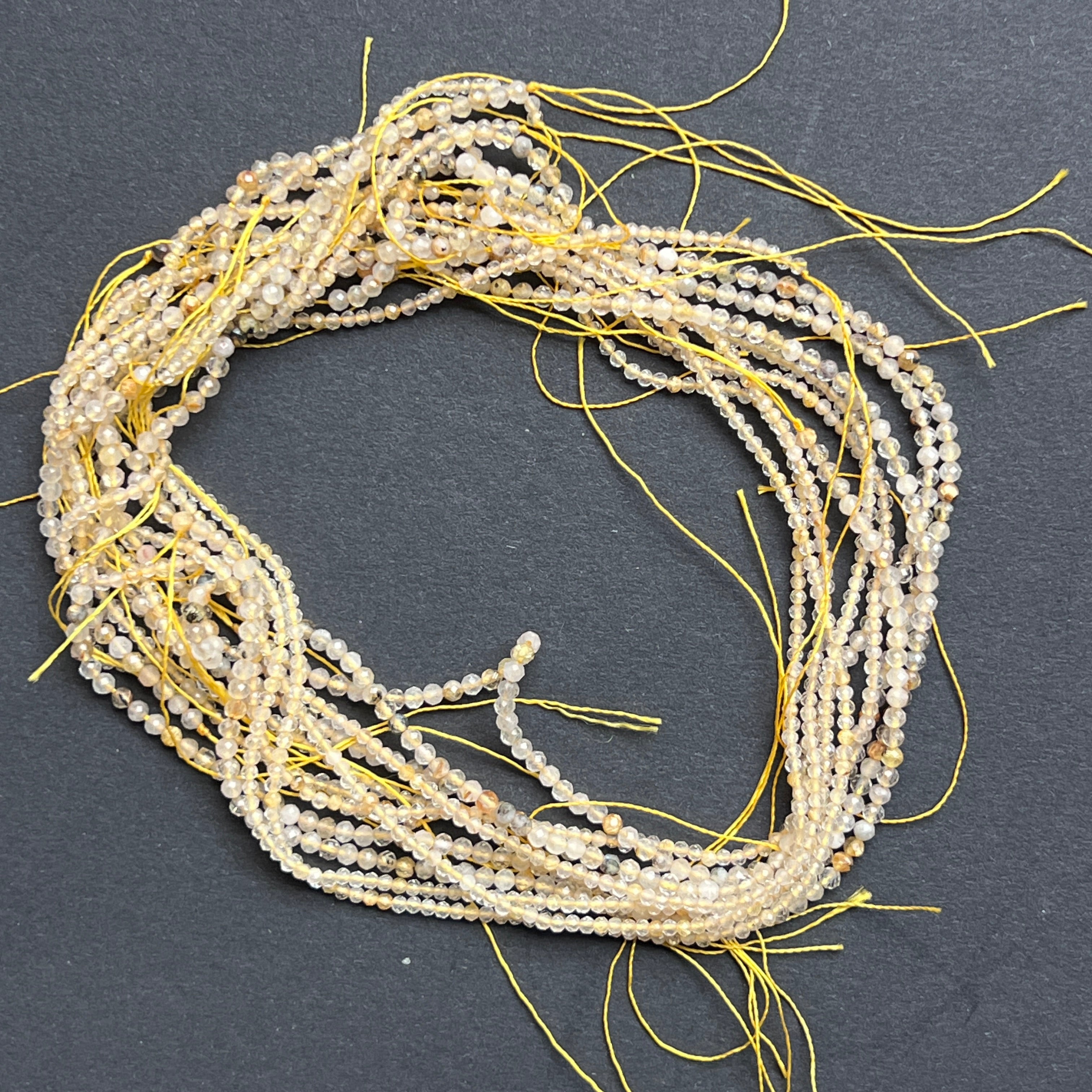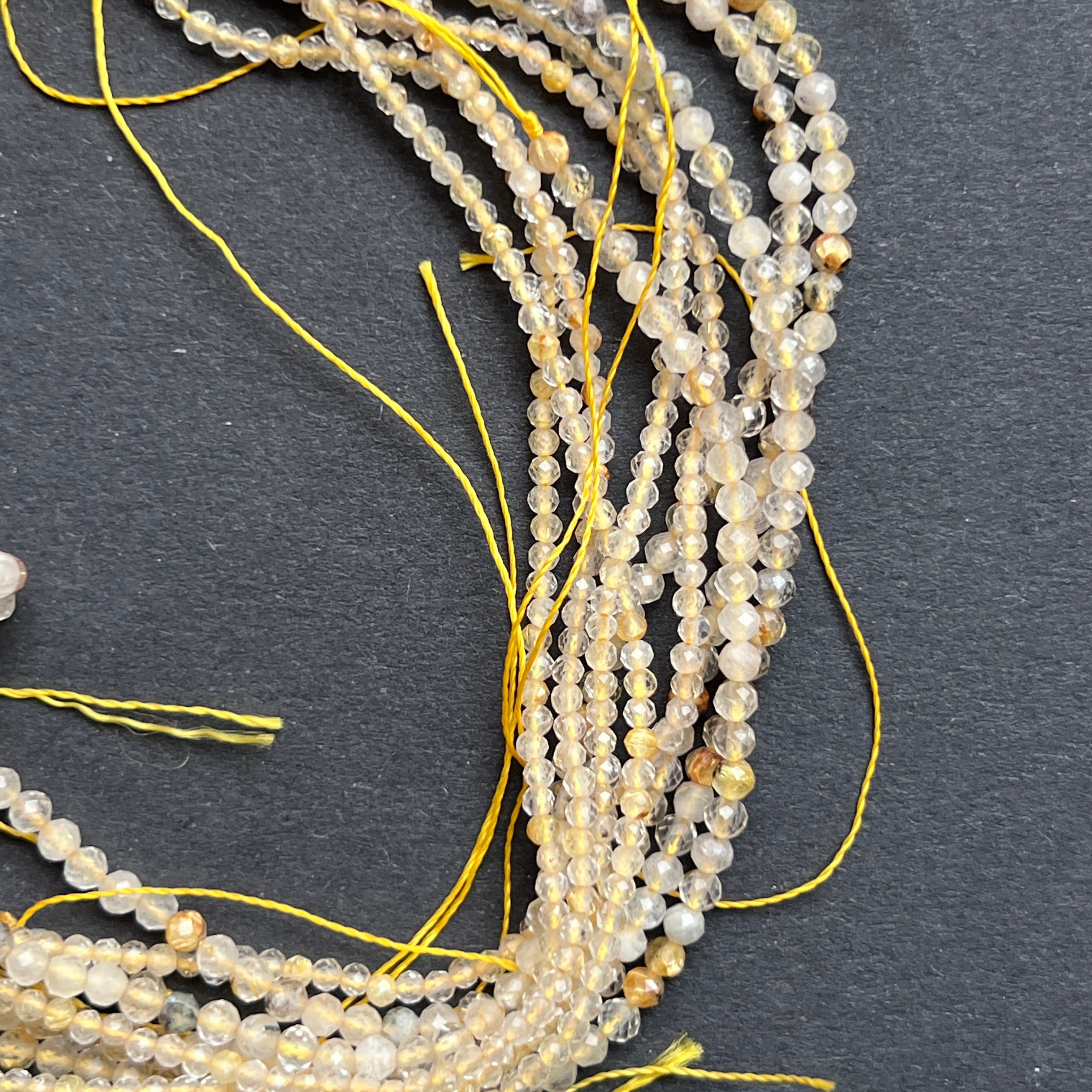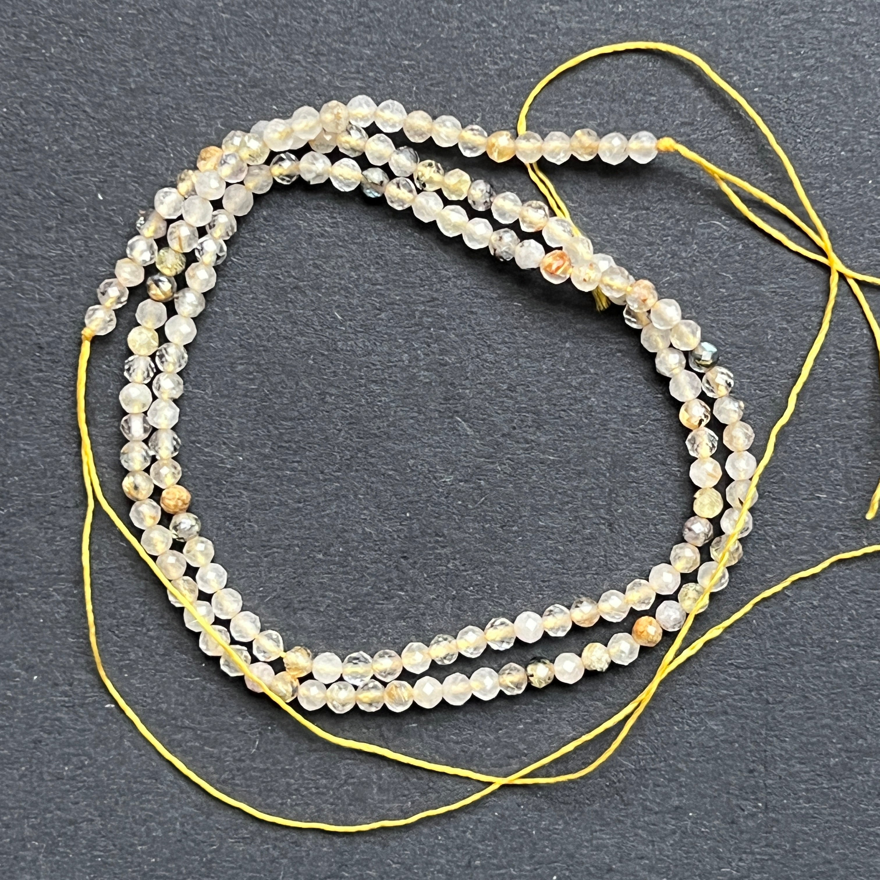 ЖЪЛТ РУТИЛИРАН КВАРЦ, съставен от естествени ФАСЕТНИ сферични мъниста, идеален за колиета, гривни или други ръчно изработени бижута.
