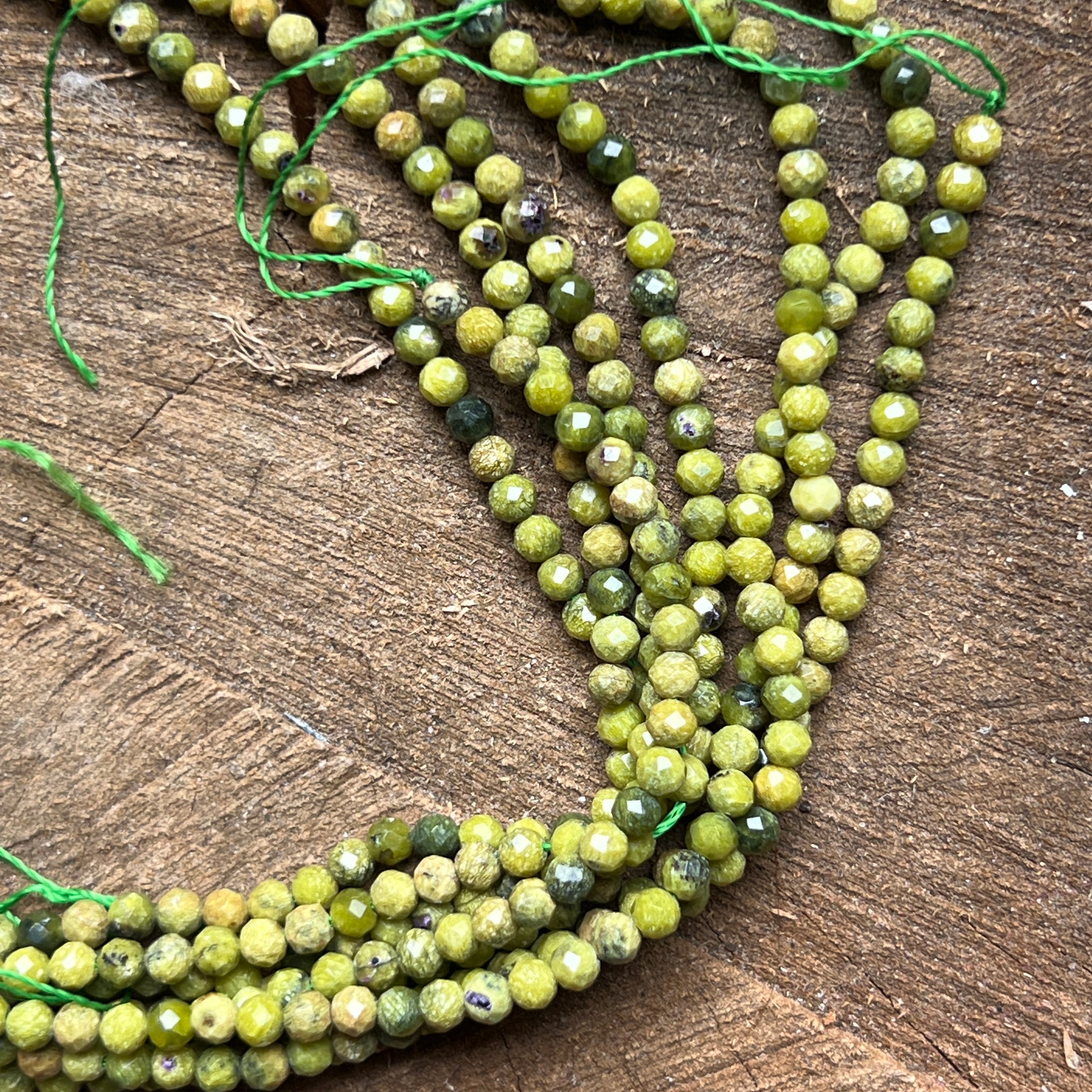 Наниз GREEN JADE, съставен от естествени ФАСЕТНИ сферични мъниста, идеален за колиета, гривни или други ръчно изработени бижута.