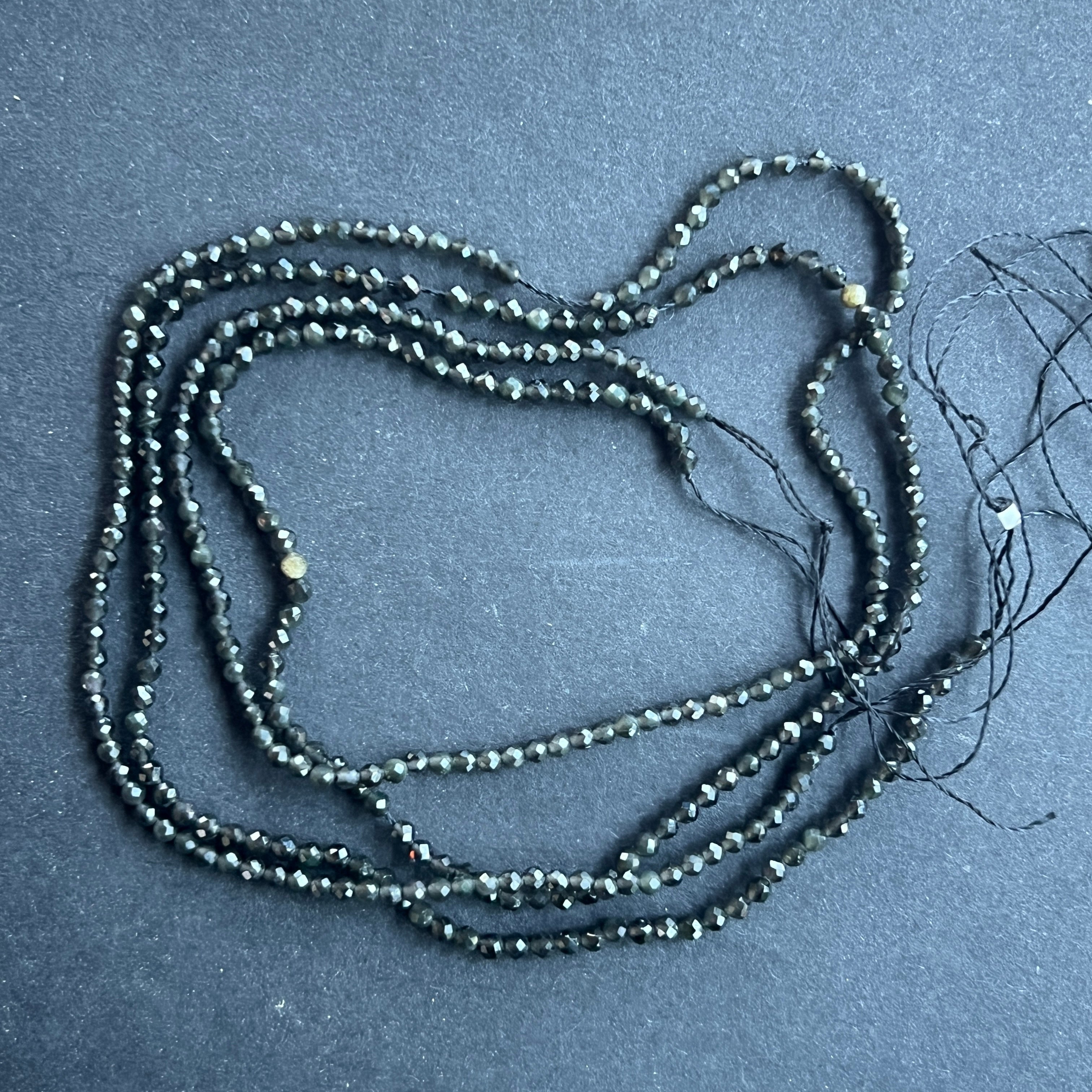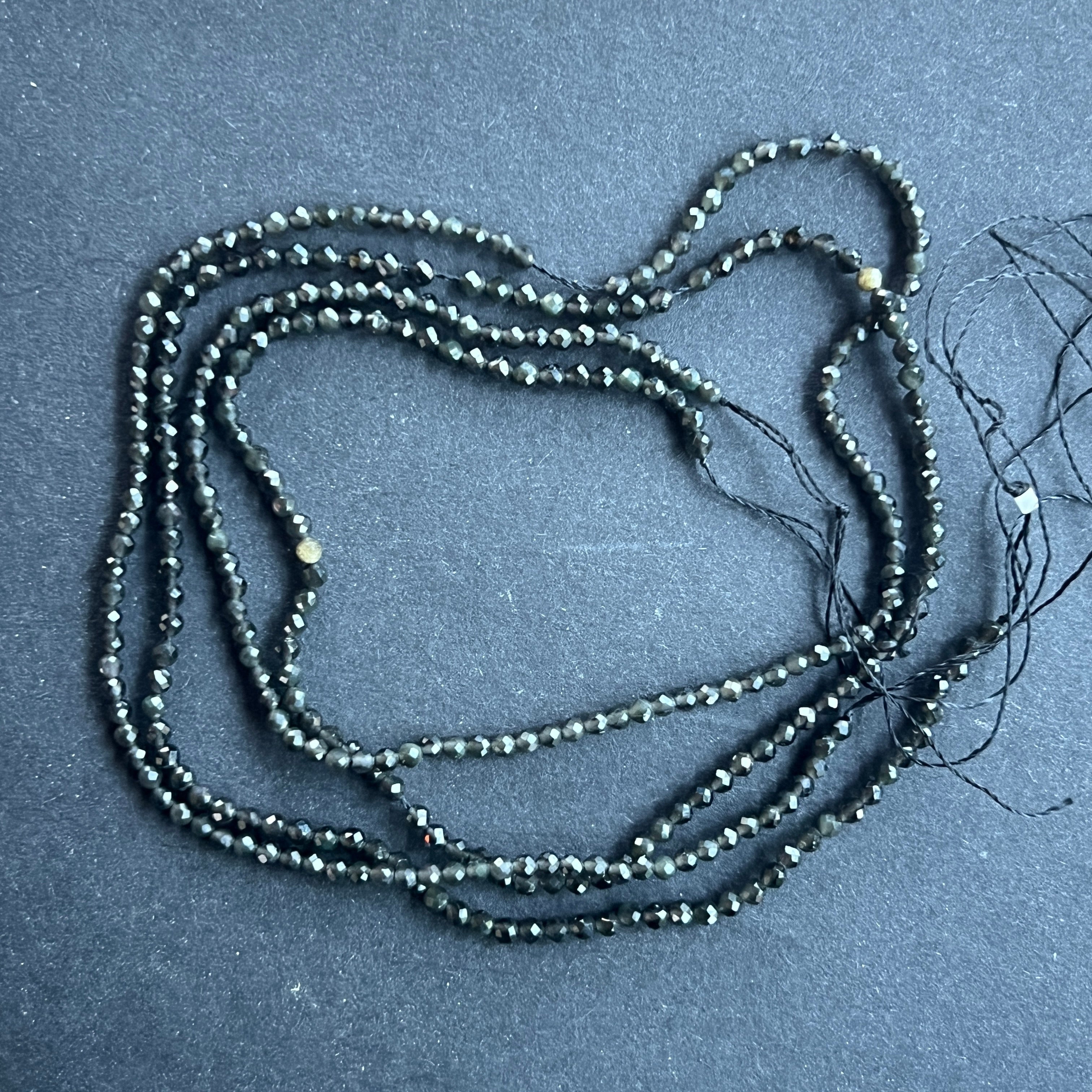 Наниз мъниста полускъпоценни камъни фасетирани сфери ОБСИДИАН СРЕБРО