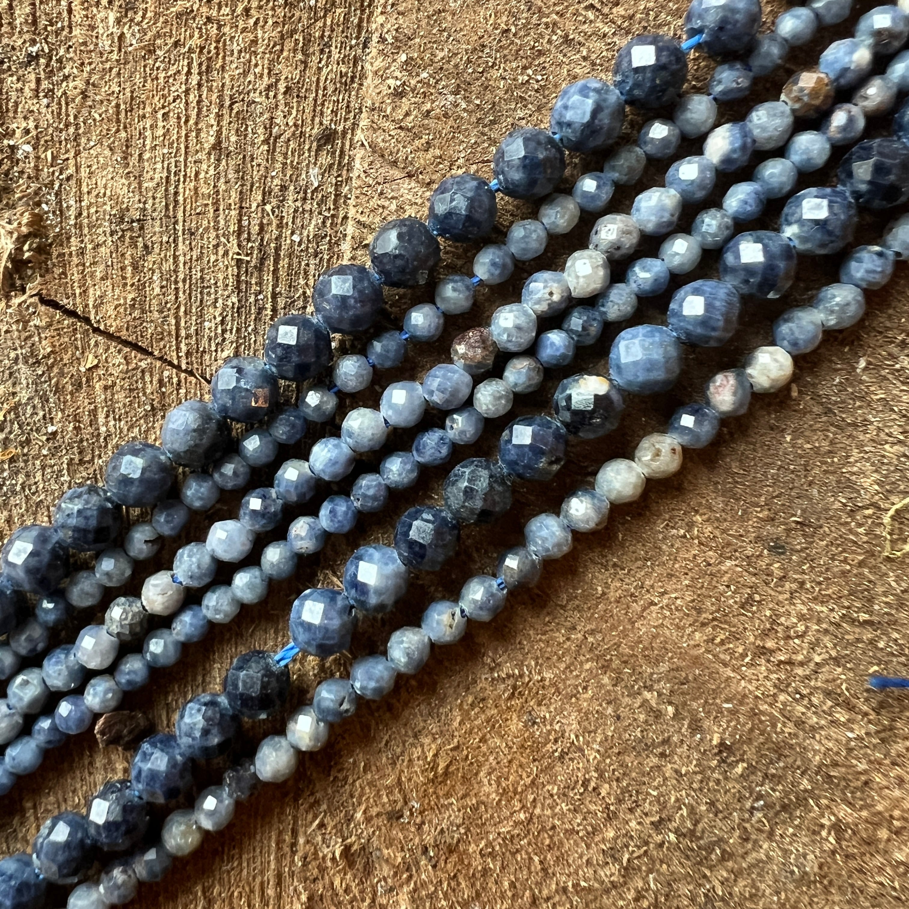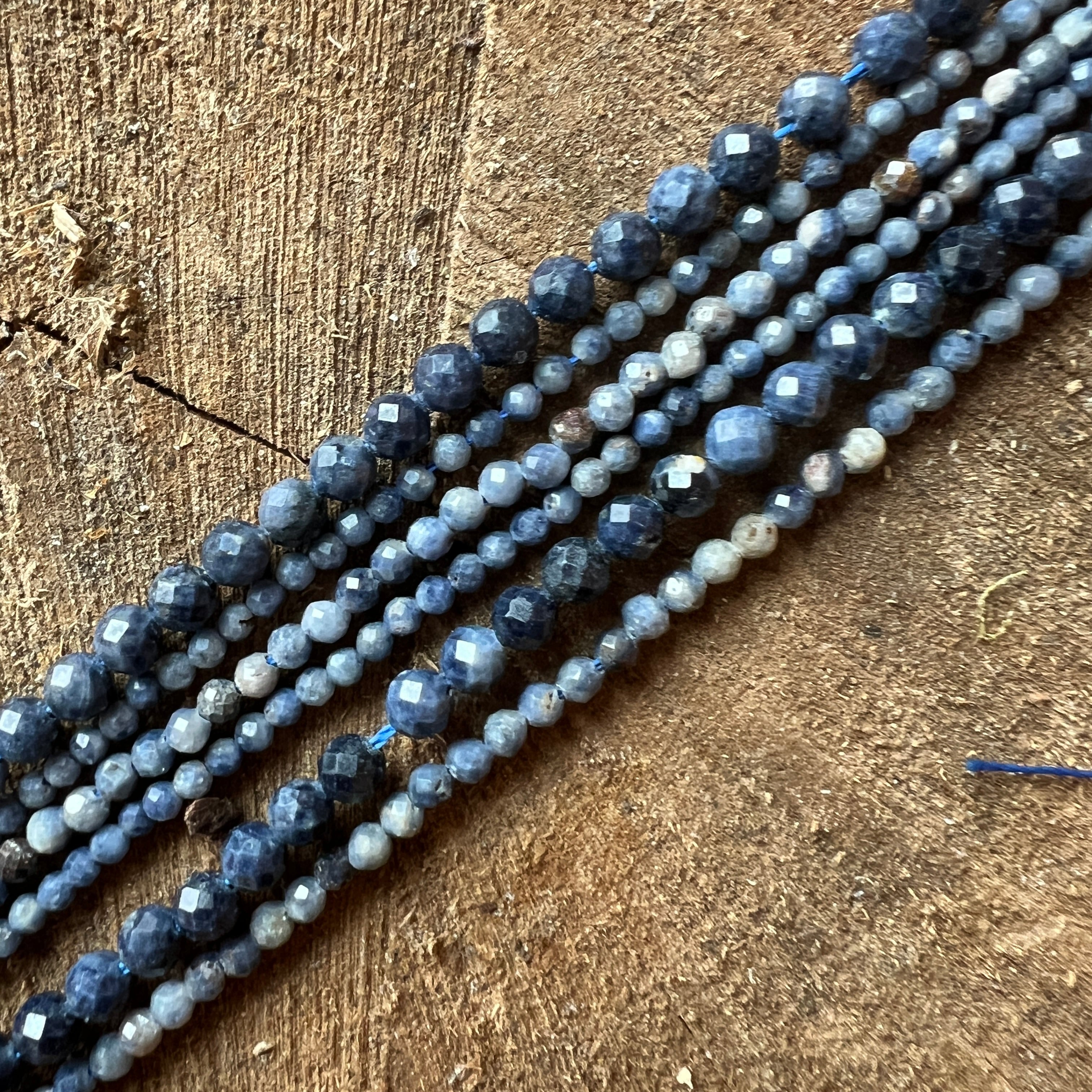 Висулка от сапфир, съставен от естествени ФАСЕТНИ сферични мъниста, идеален за колиета, гривни или други ръчно изработени бижута.