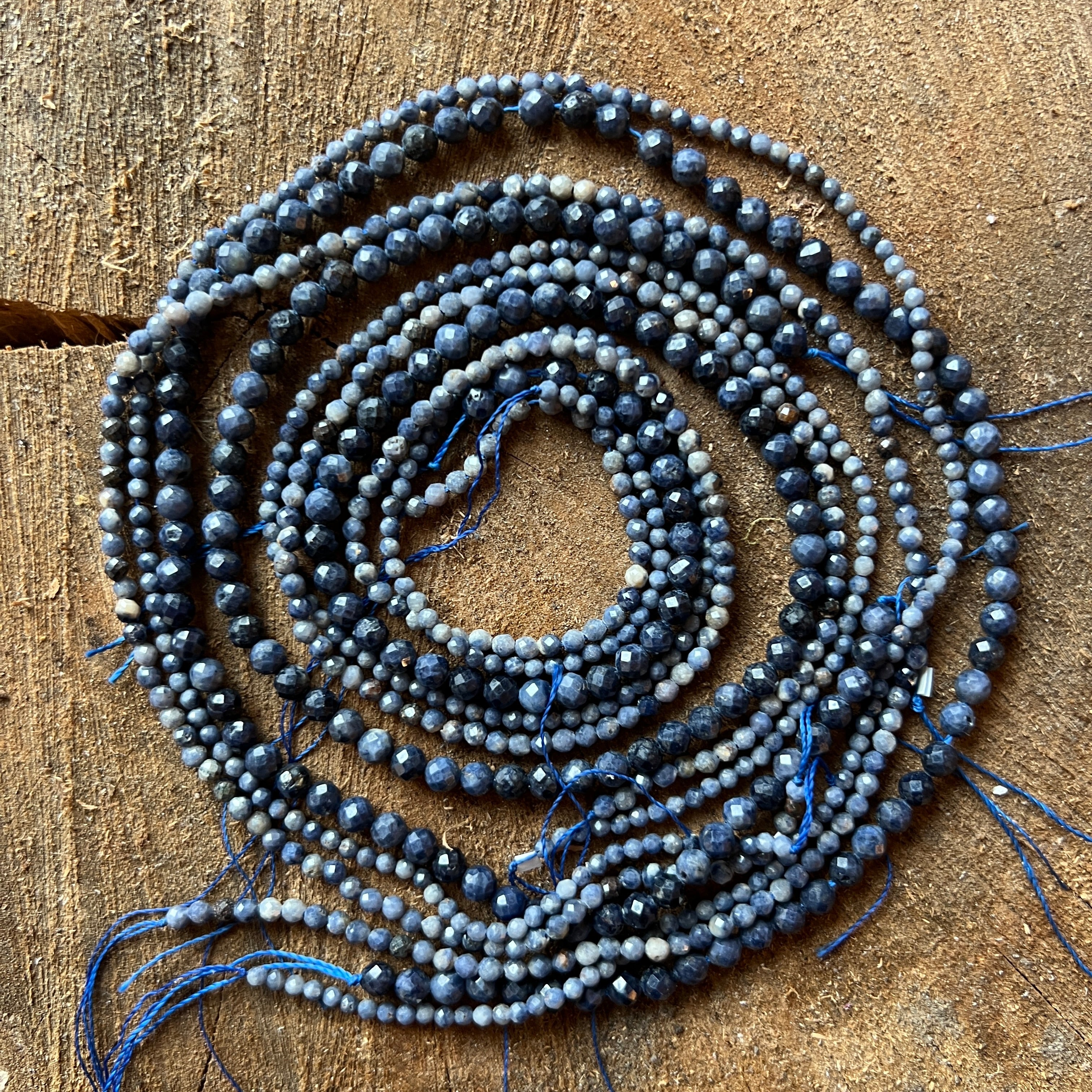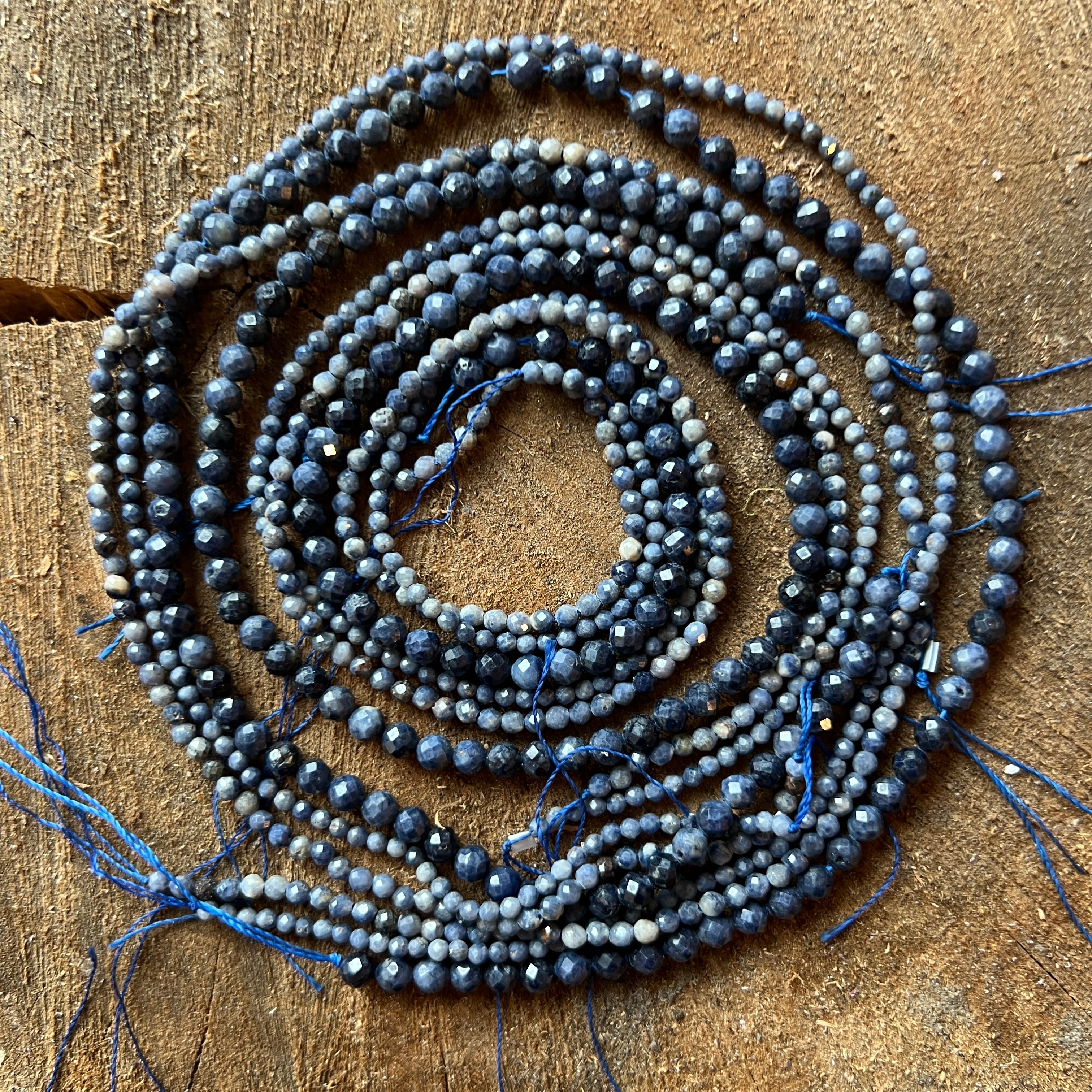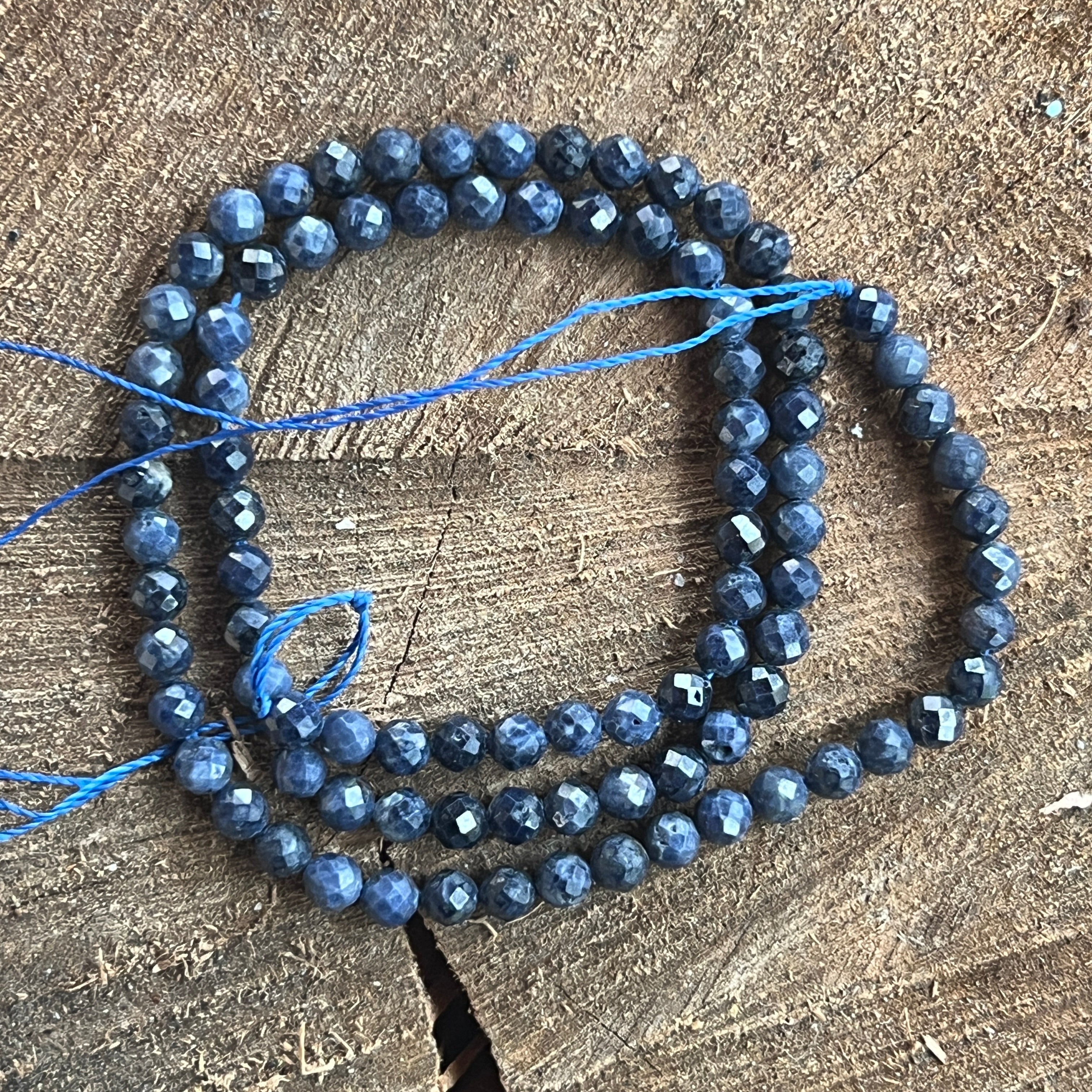 Ревюта – Наниз мъниста полускъпоценни камъни фасетирани сфери САПФИР