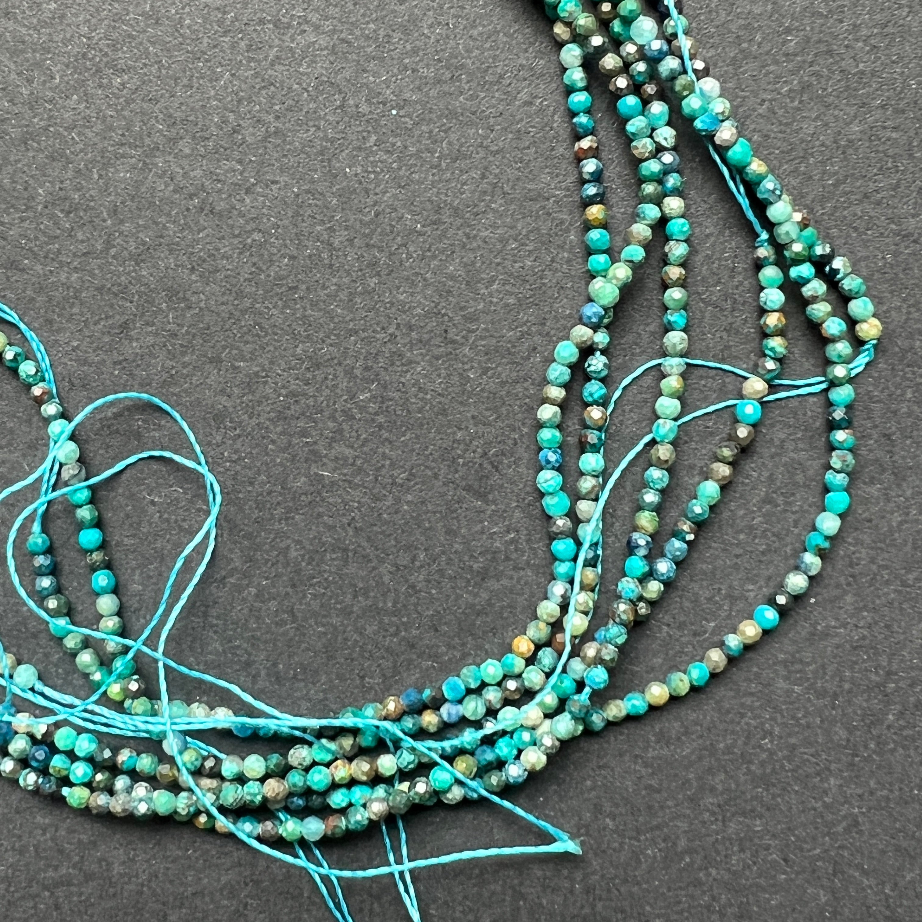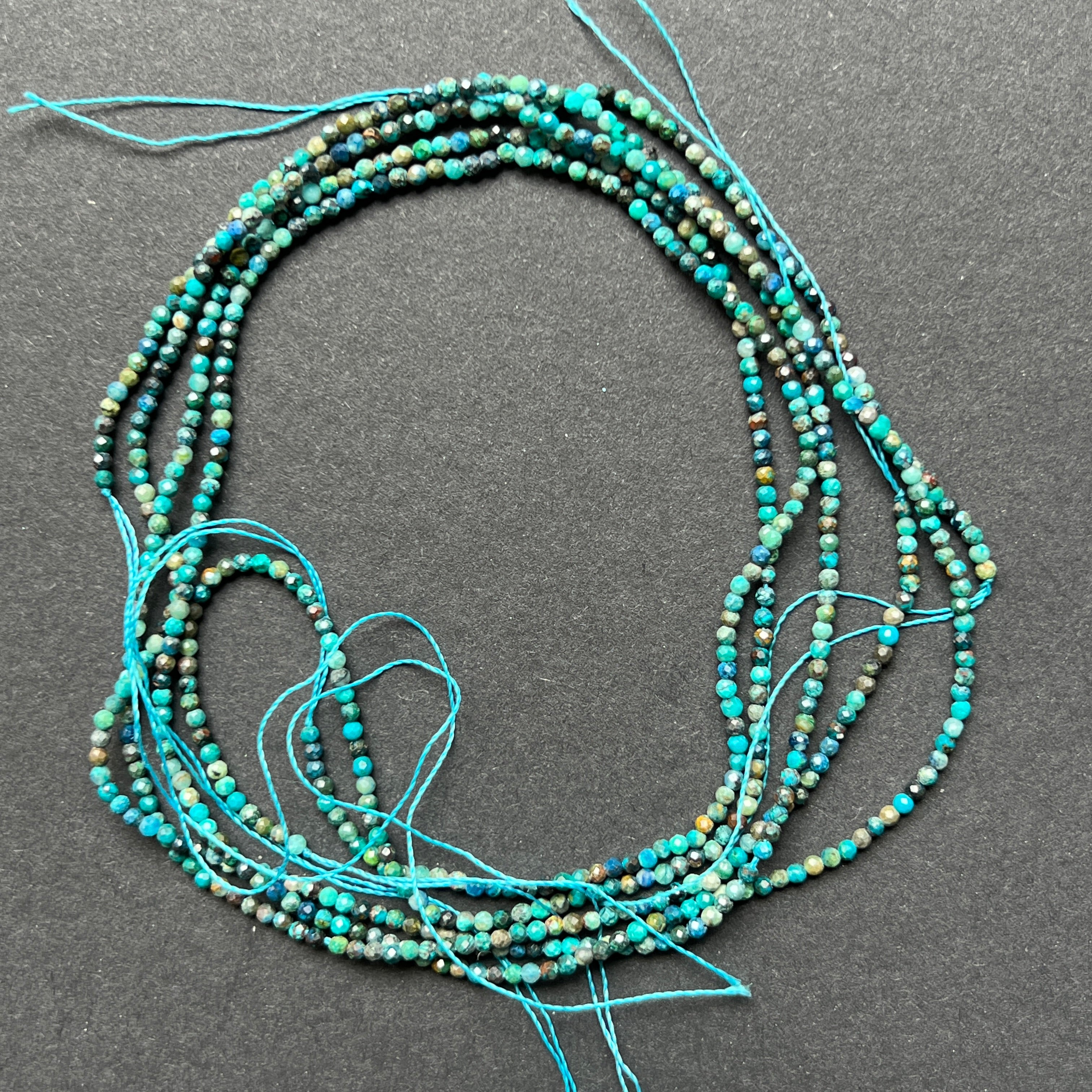 Ревюта – Наниз мъниста полускъпоценни камъни фасетирани сфери ХРИСОКОЛА
