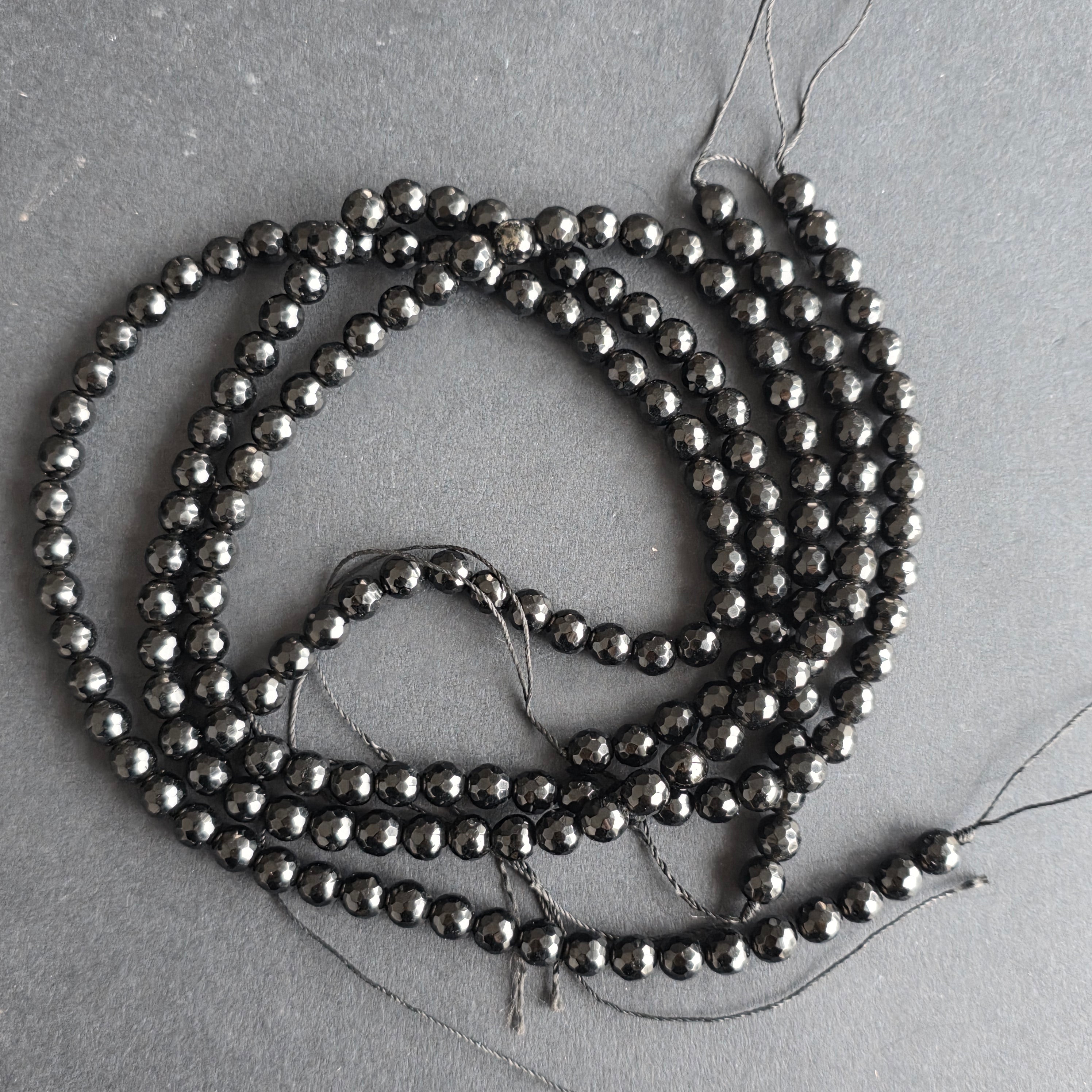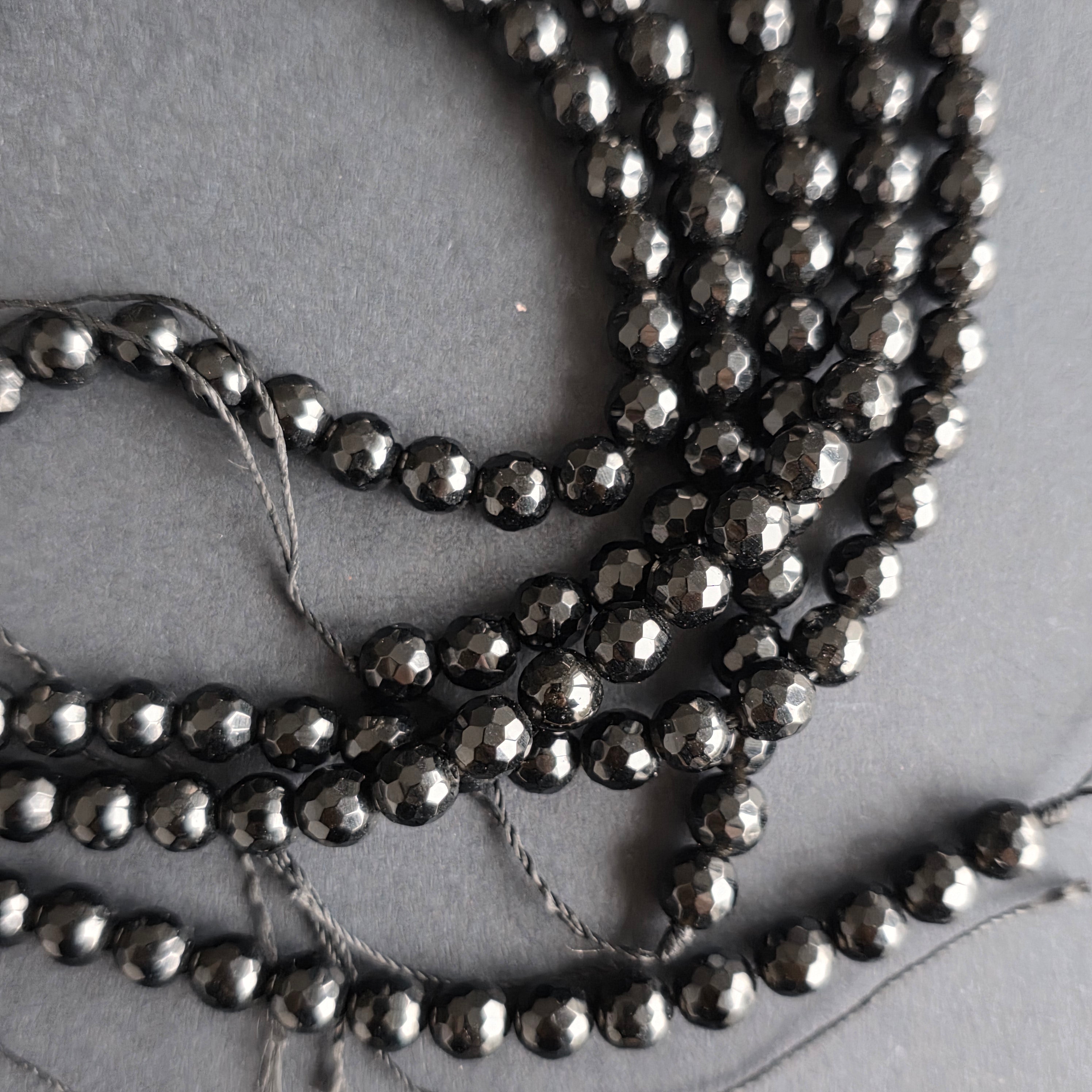 Мънисто от обсидиан, съставен от естествени фасетирани сферични мъниста, идеален за колиета, гривни или други ръчно изработени бижута.