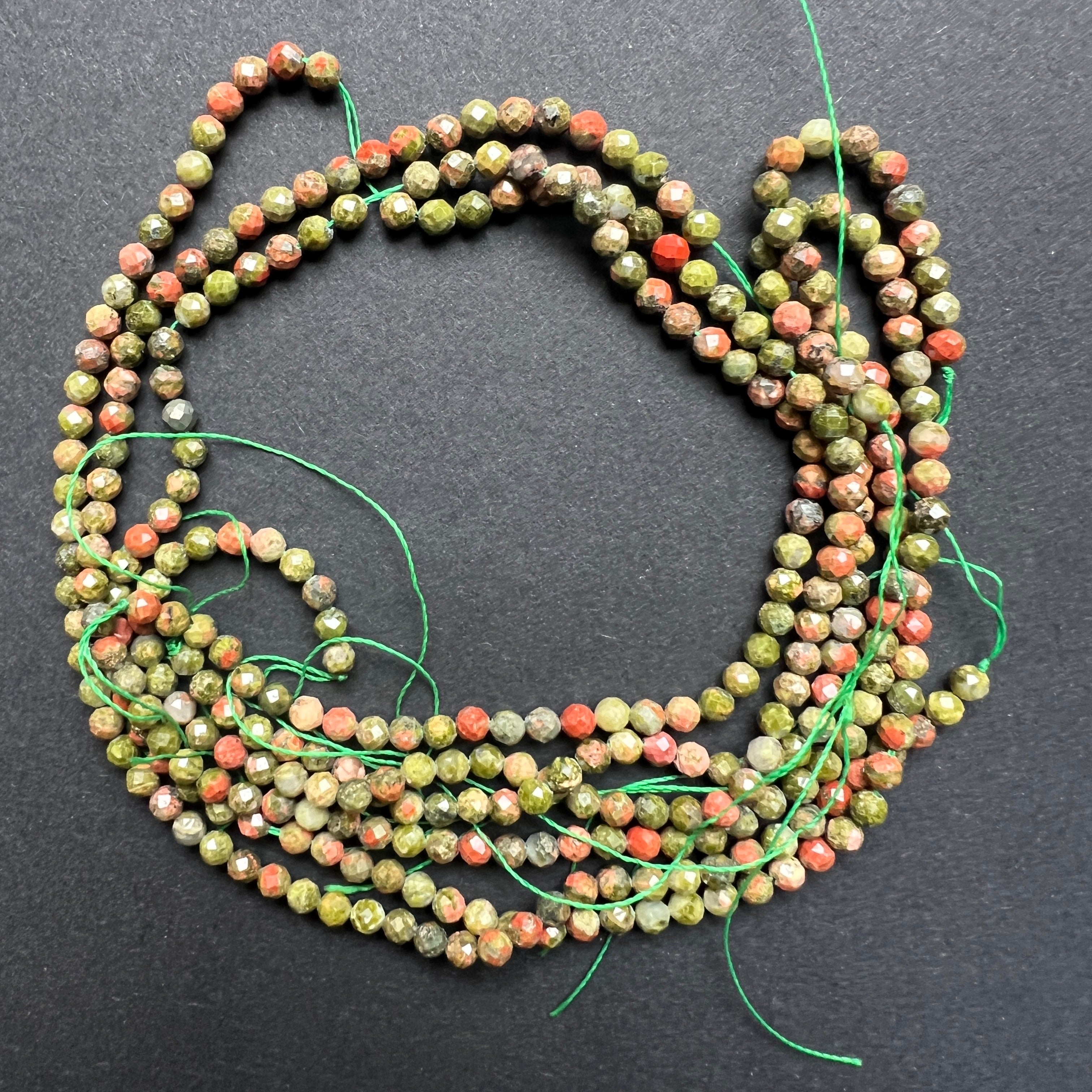Низ от UNAKIT, съставен от естествени ФАСЕТНИ сферични мъниста, идеален за колиета, гривни или други ръчно изработени бижута.