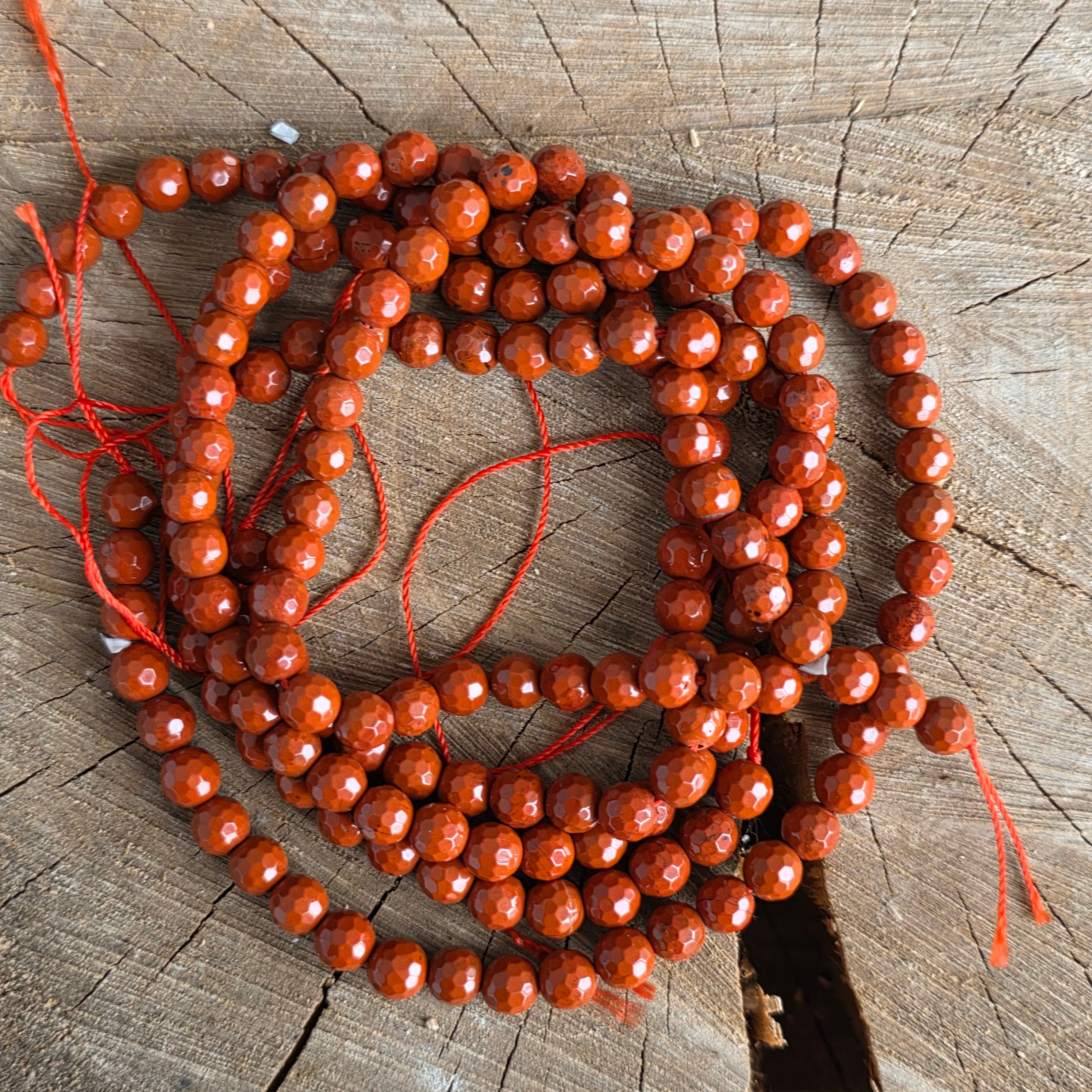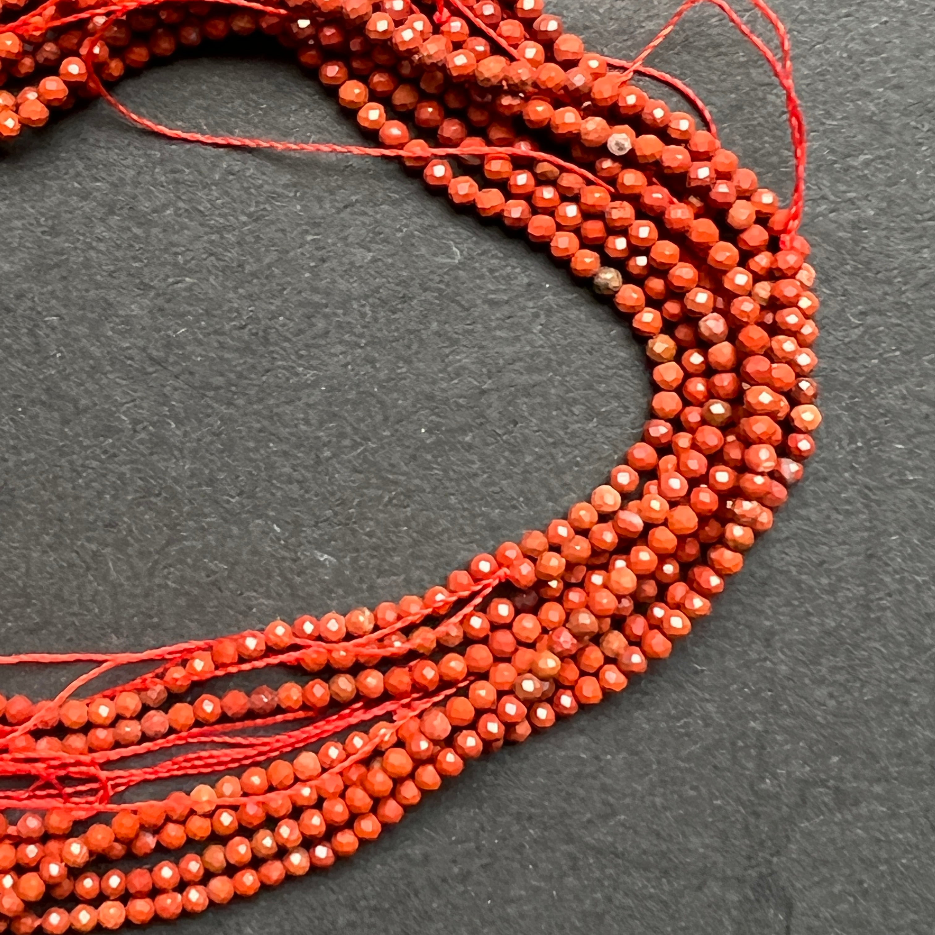 Низ от камъни полускъпоценни фасетирани топчета ЯСПИС ЧЕРВЕН