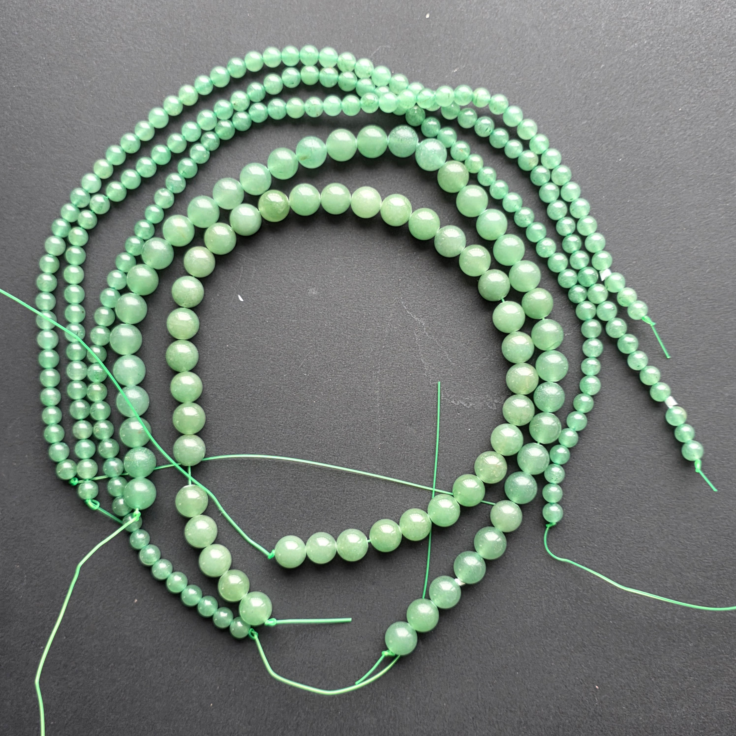Низ от АВЕНТУРИН ЗЕЛЕНсъставен от естествени сферични мъниста,перфектен за колиета, гривни или други ръчно направени бижута.