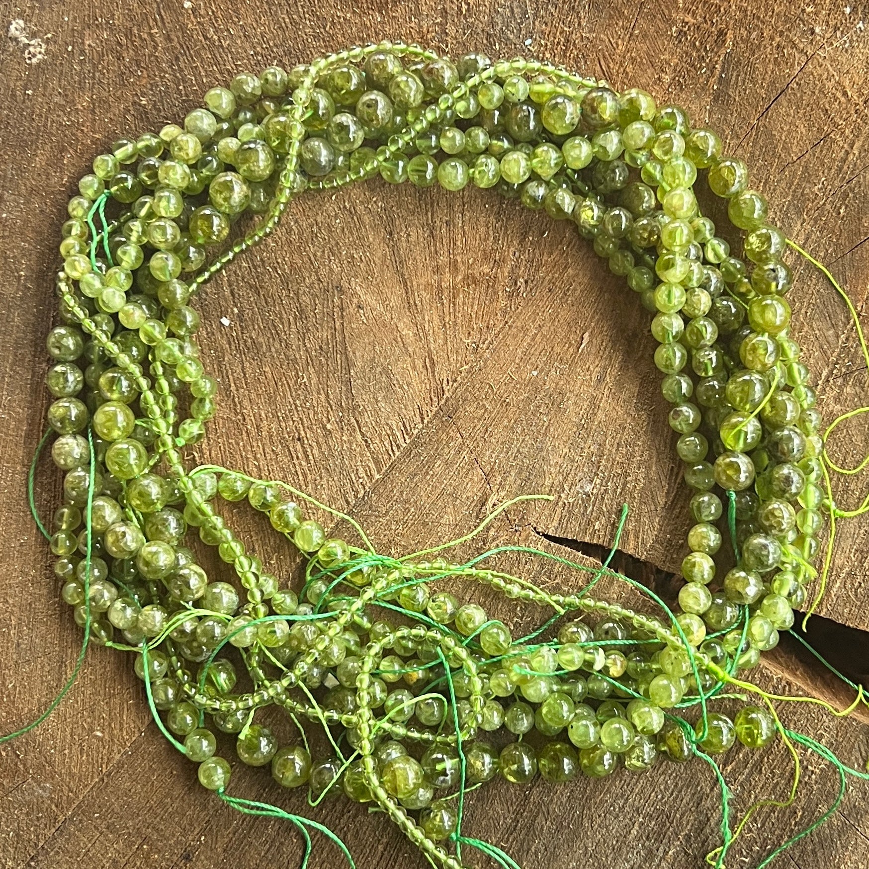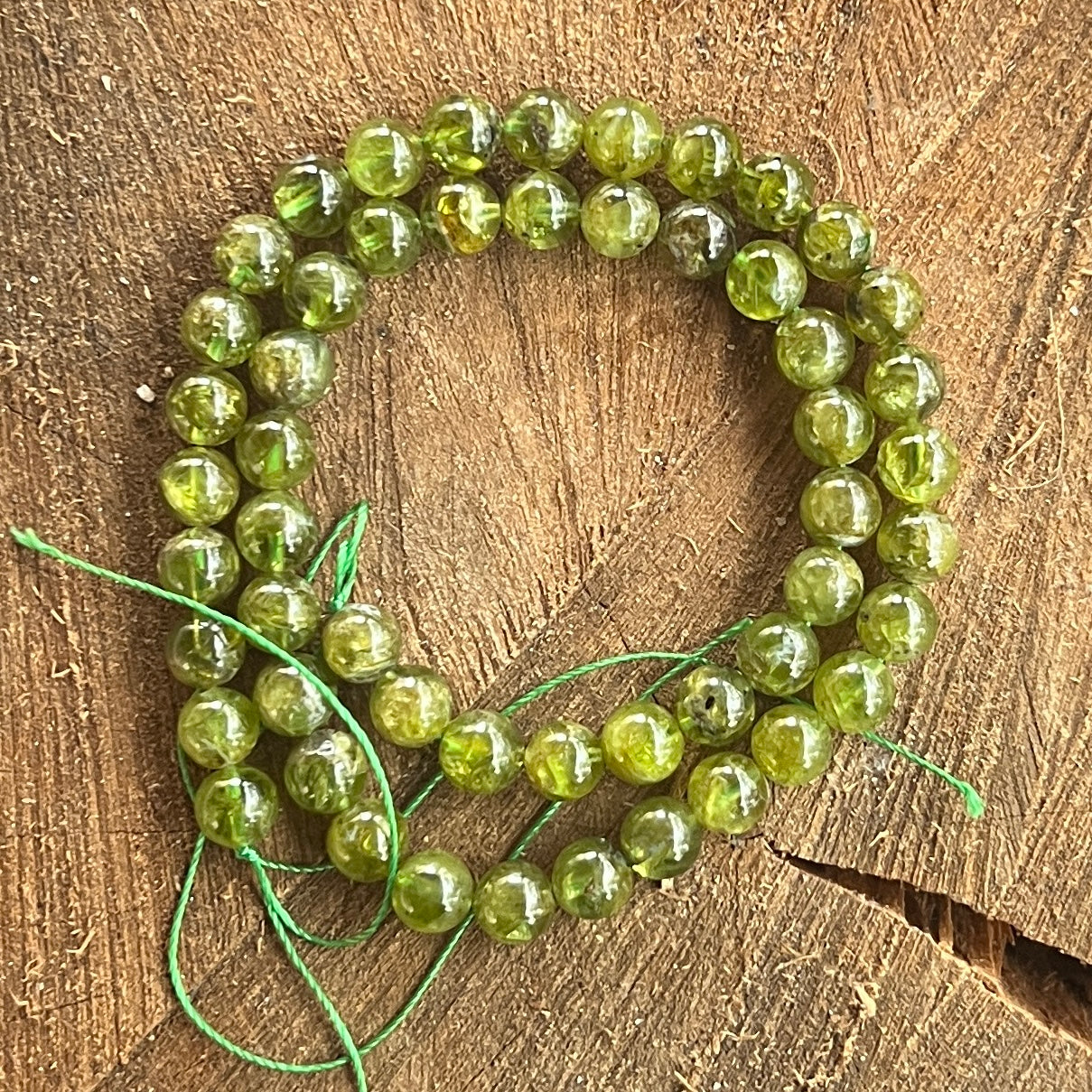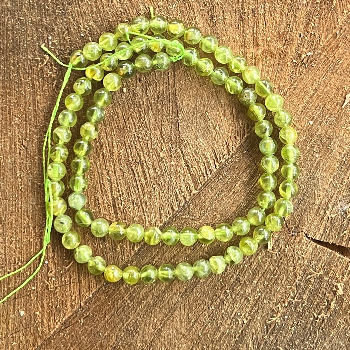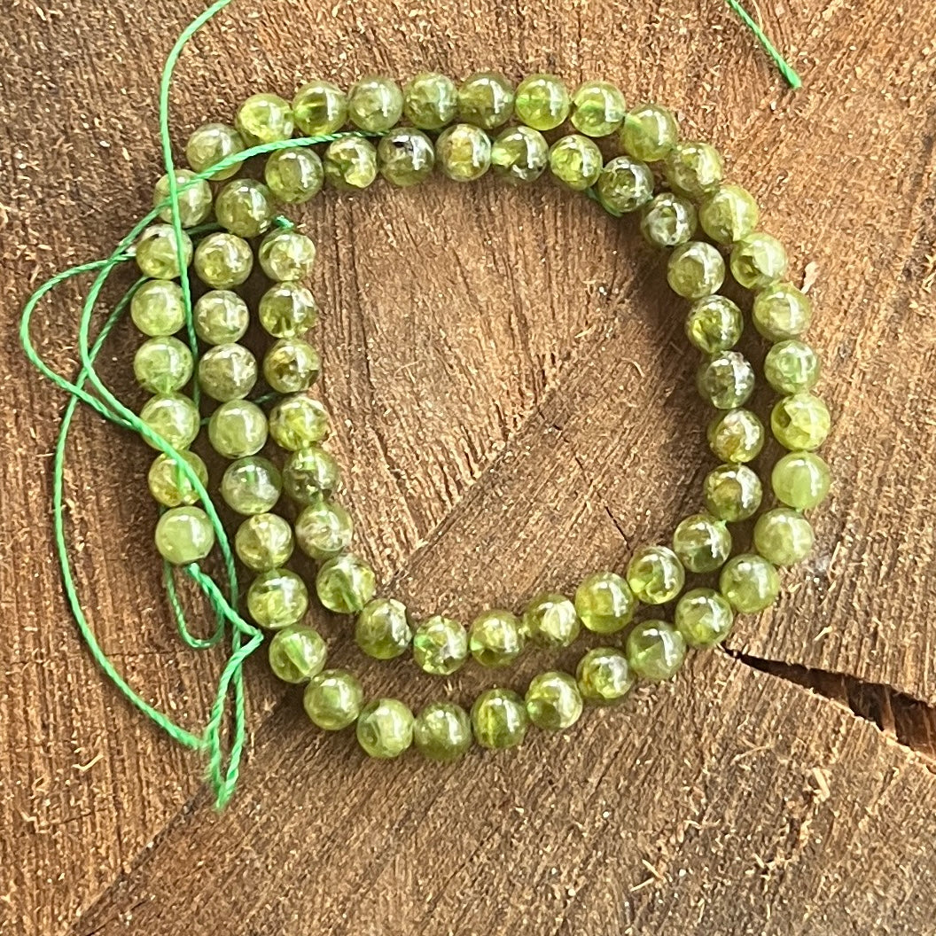 Ревюта – Низ от мъниста от полускъпоценни камъни, сферични ОЛИВИНА, перидот AAA M1