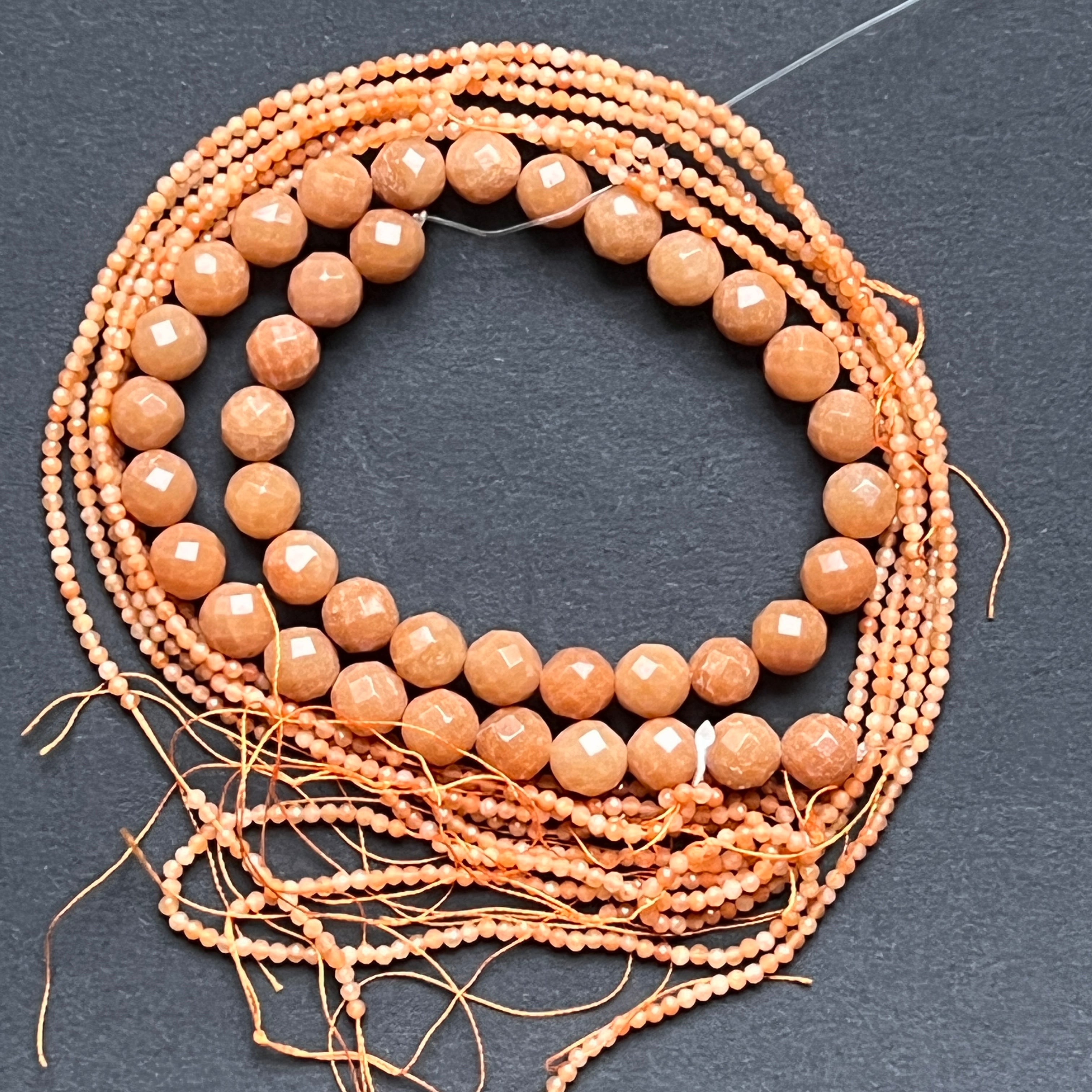 Низ от мъниста от полускъпоценни камъни, фасетирани сфери АВЕНТУРИН ОРАНЖЕВ