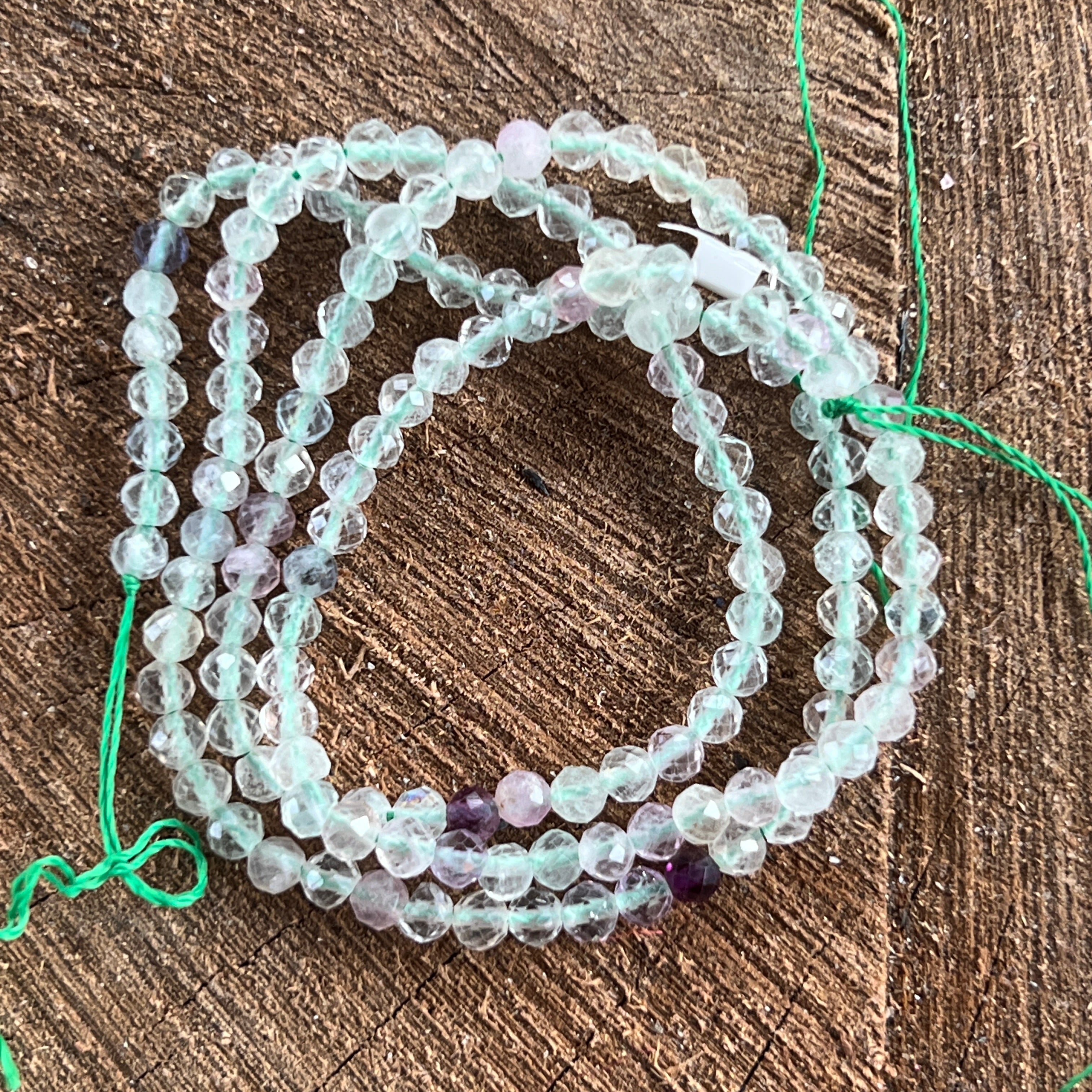 Низ от мъниста от полускъпоценни камъни, фасетирани сфери ФЛУОРИТ