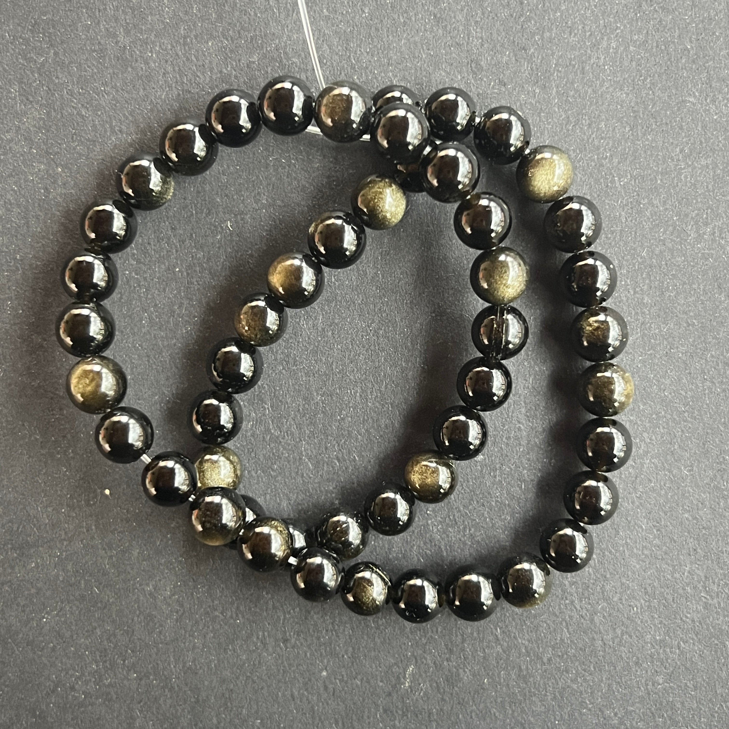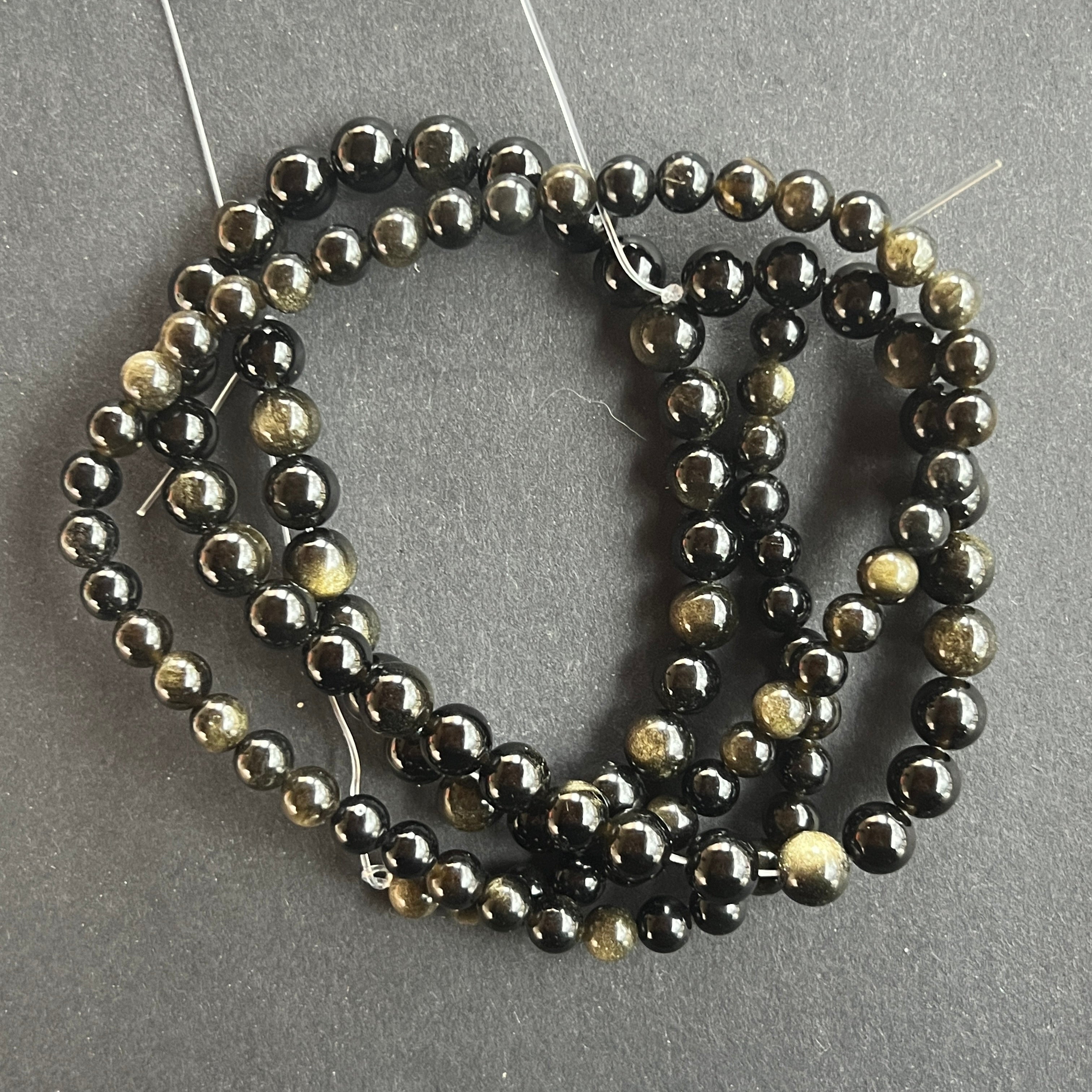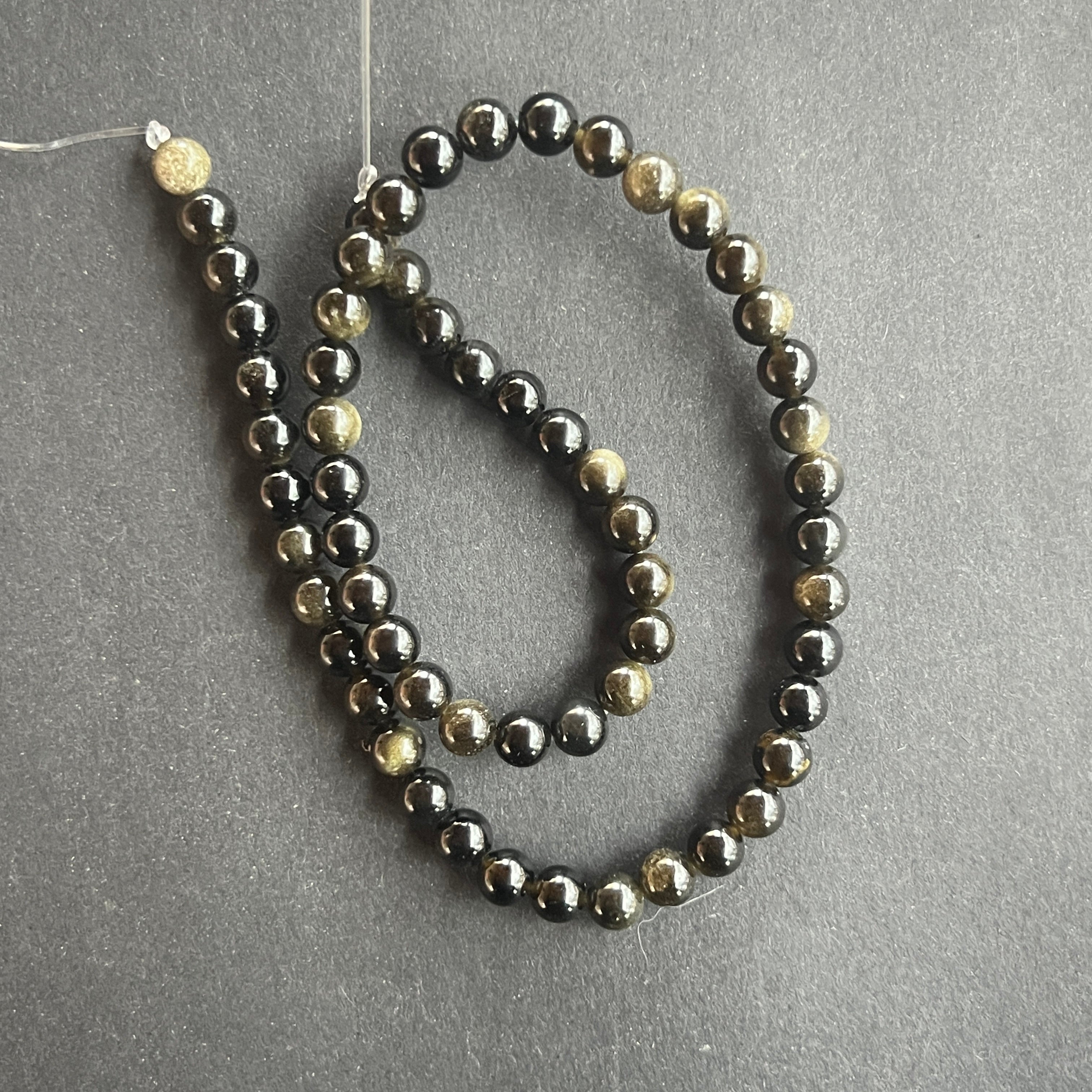 Низ от ЗЛАТЕН ОБСИДИАН,съставен от естествени сферични мъниста,перфектен за колиета, гривни или други ръчно изработени бижута.