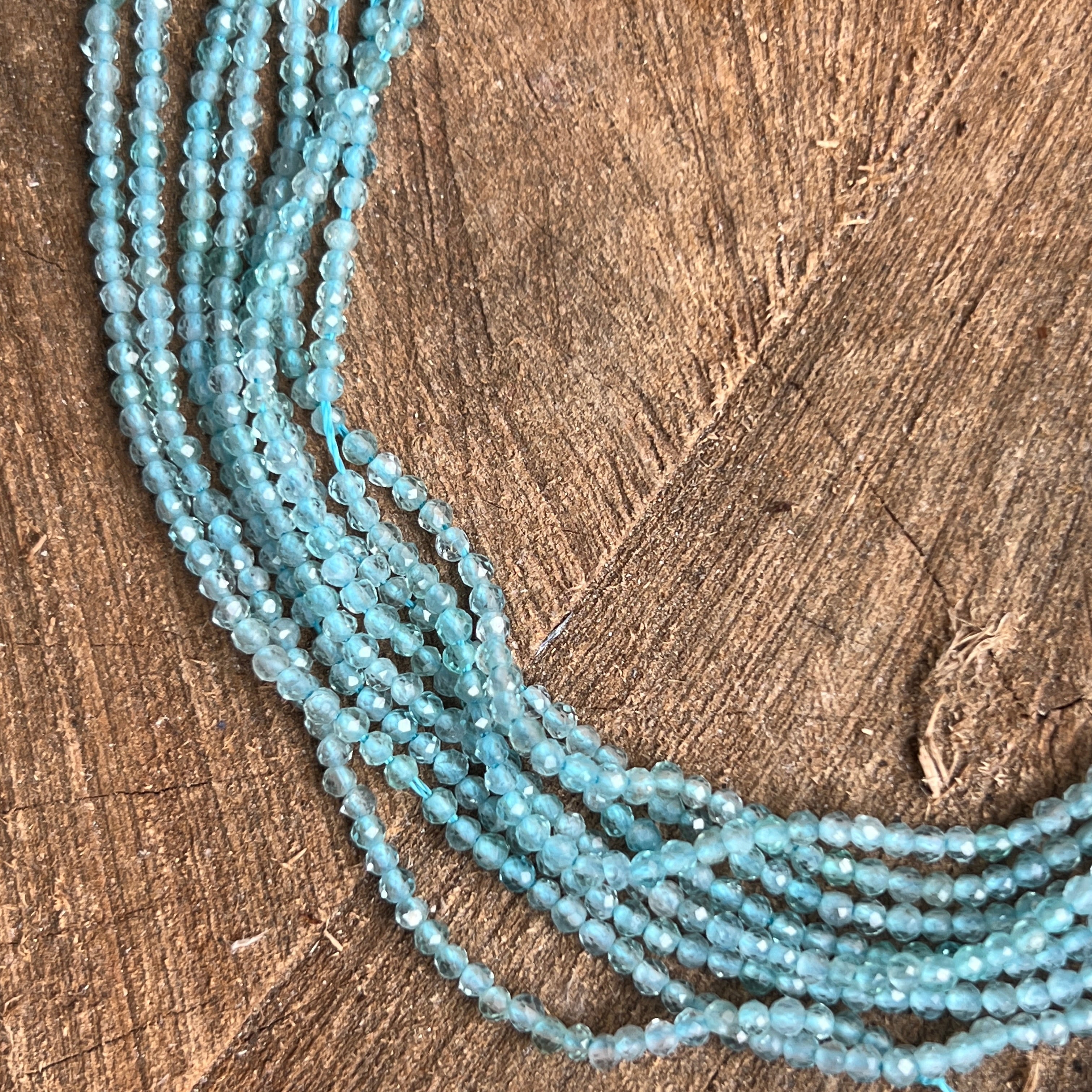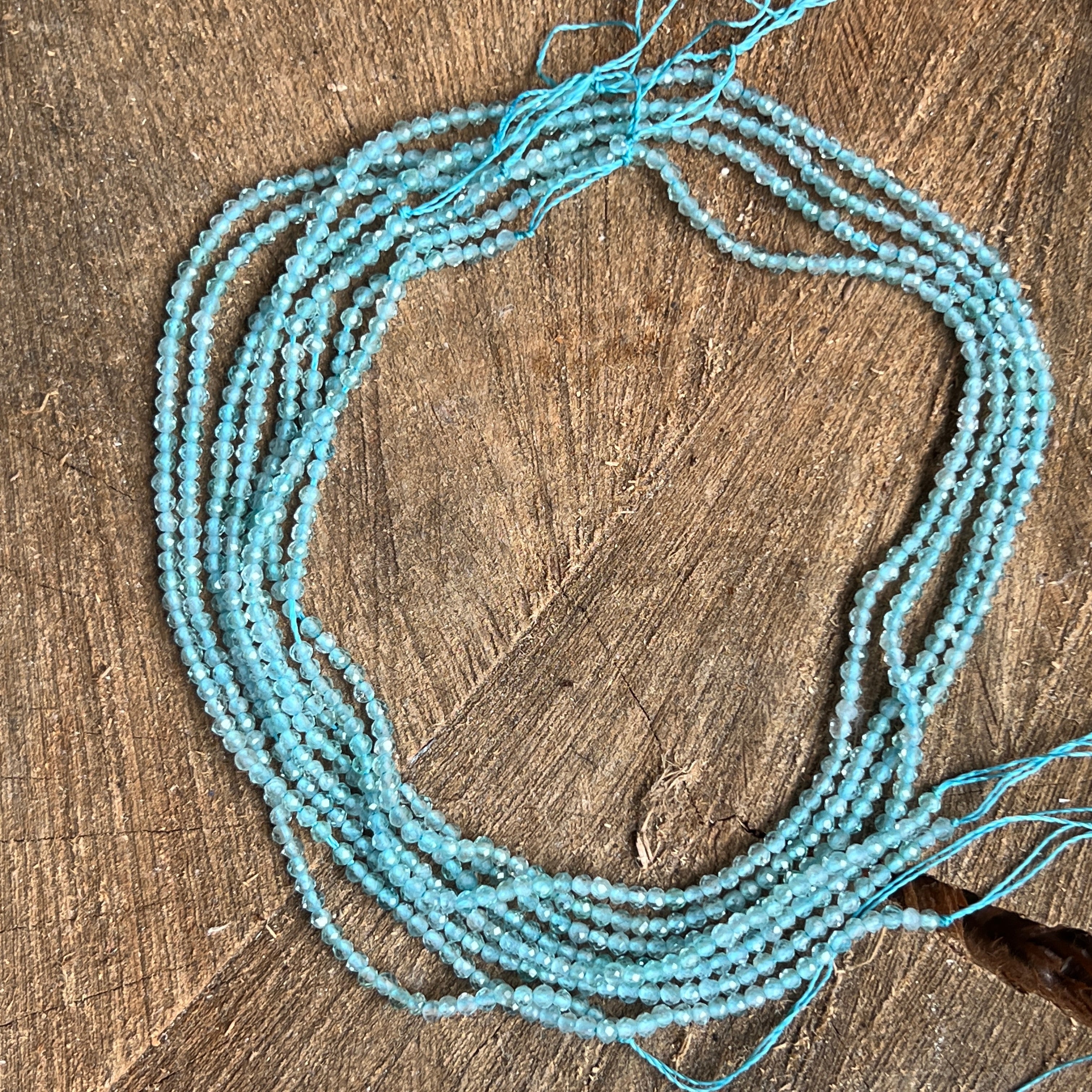 Низ от АПАТИТ, съставен от естествени фасетирани сферични мъниста, перфектен за колиета, гривни или други ръчно изработени бижута.