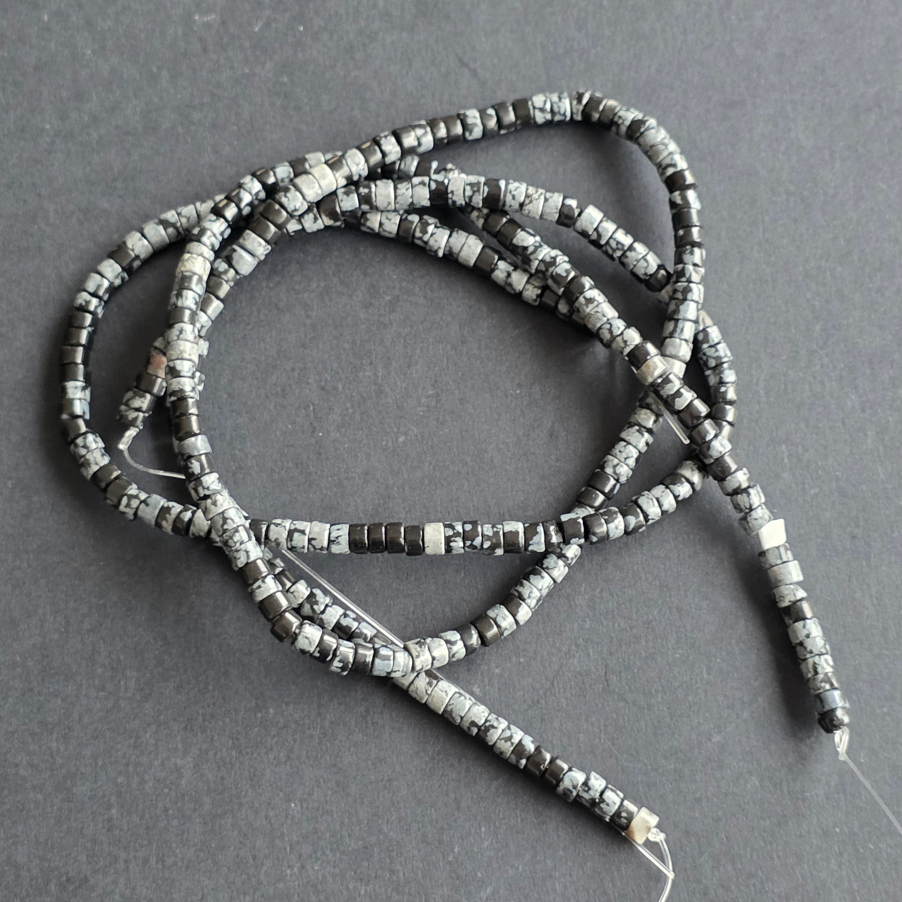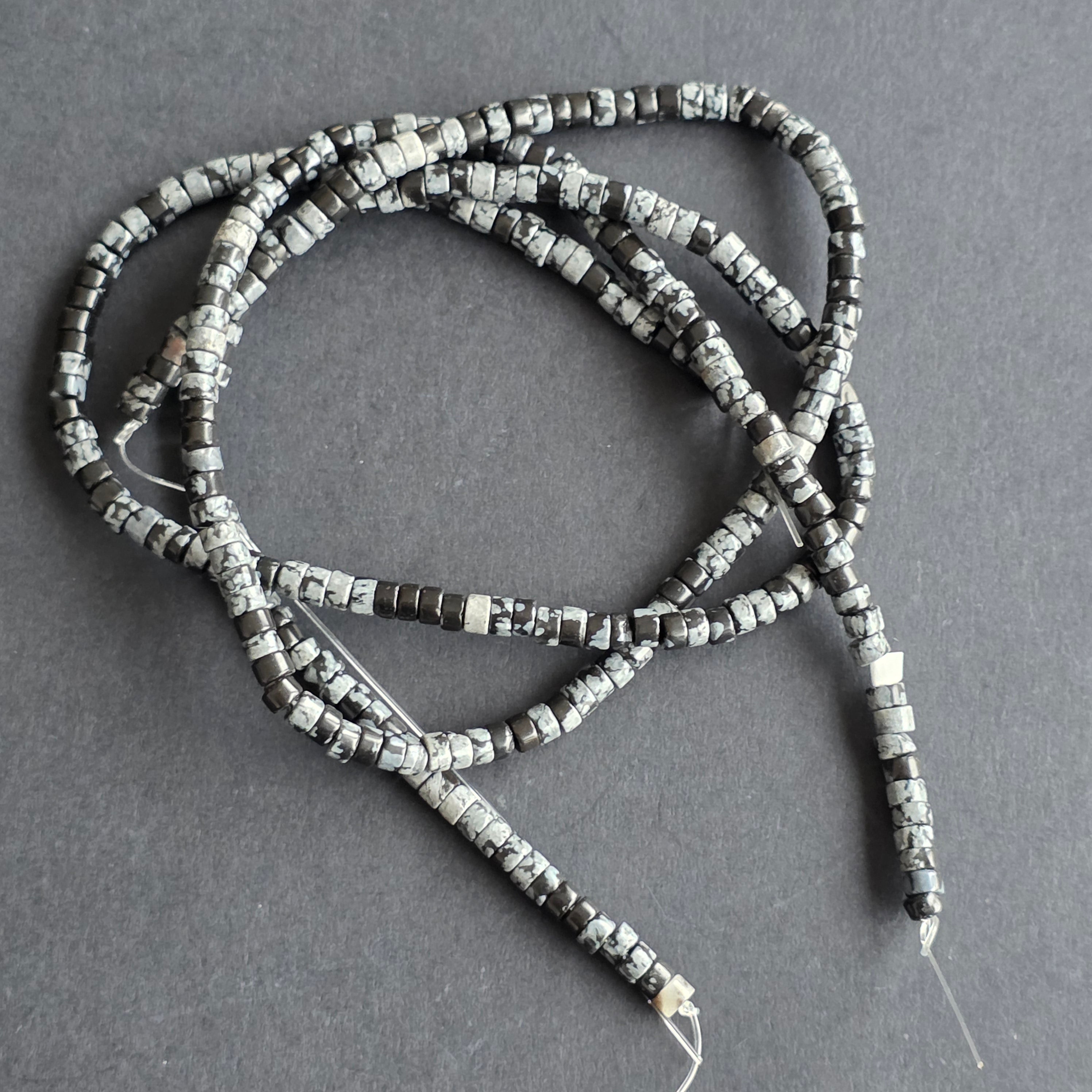 Низ от мъниста полускъпоценни камъни дискове ОБСИДИАН СНЕГ
