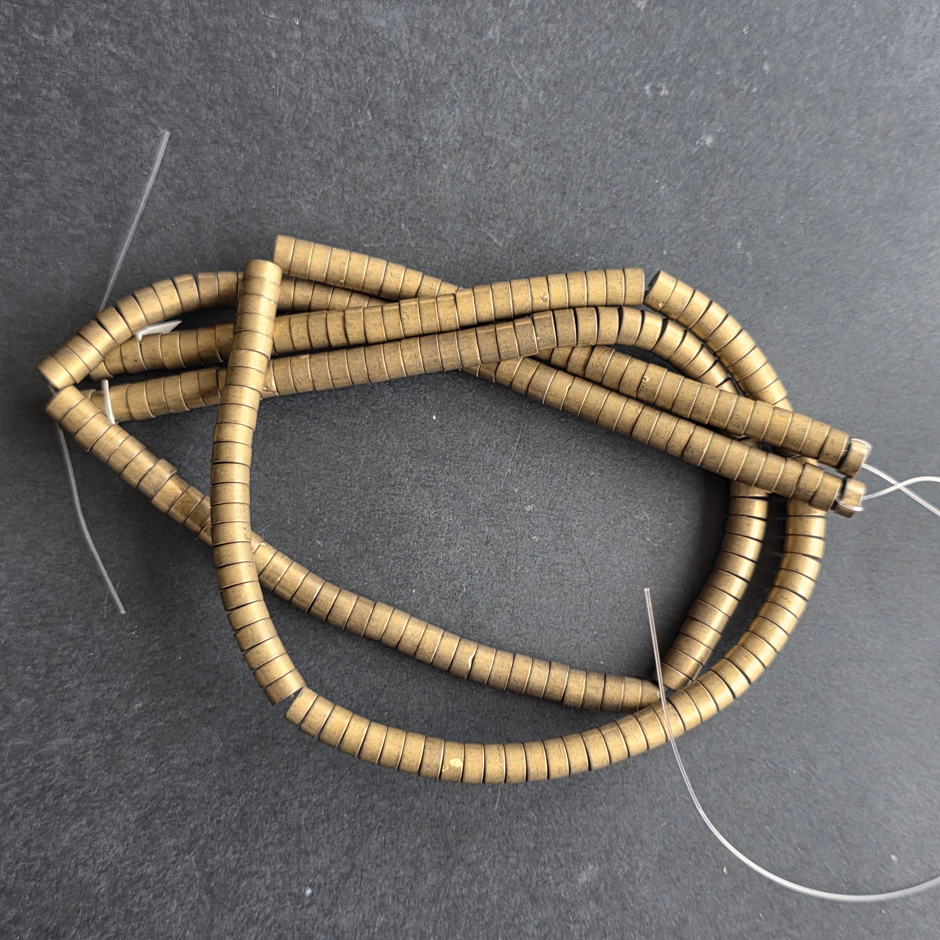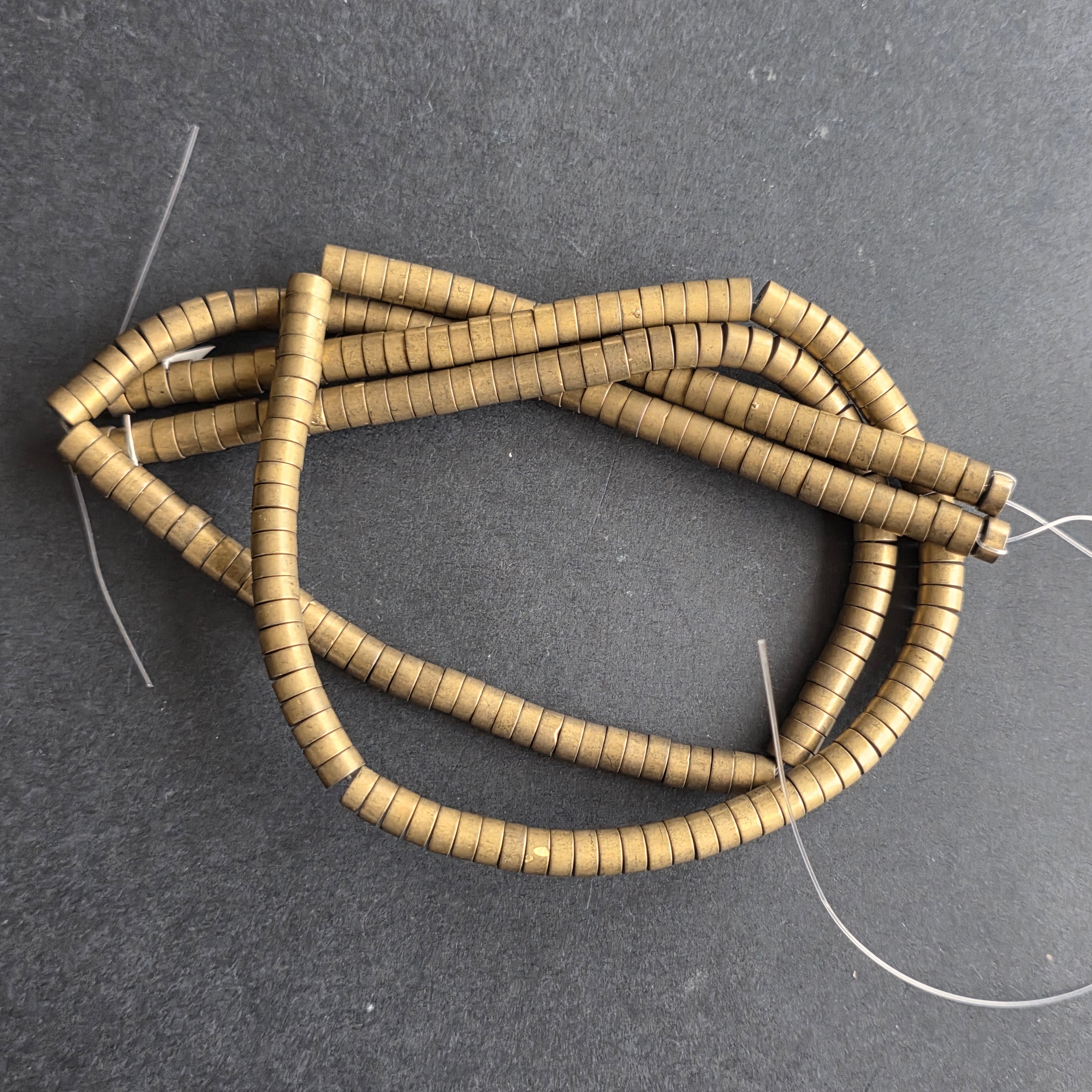 Низ от мъниста полускъпоценни камъни дискове HEMATITE GOLD MAT