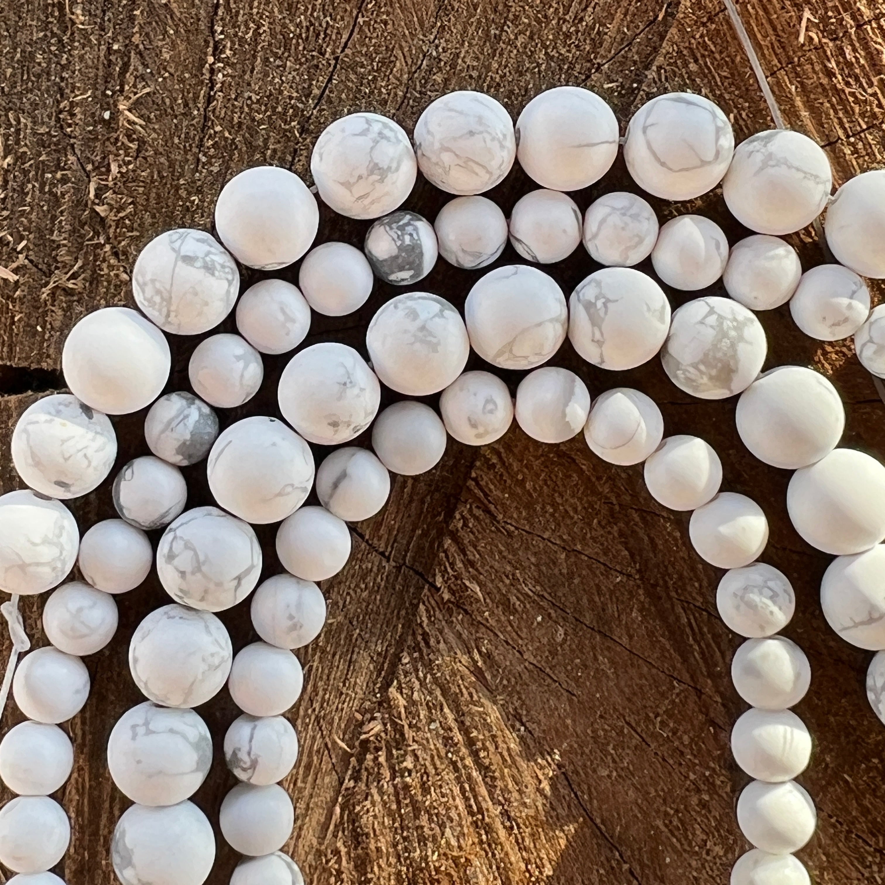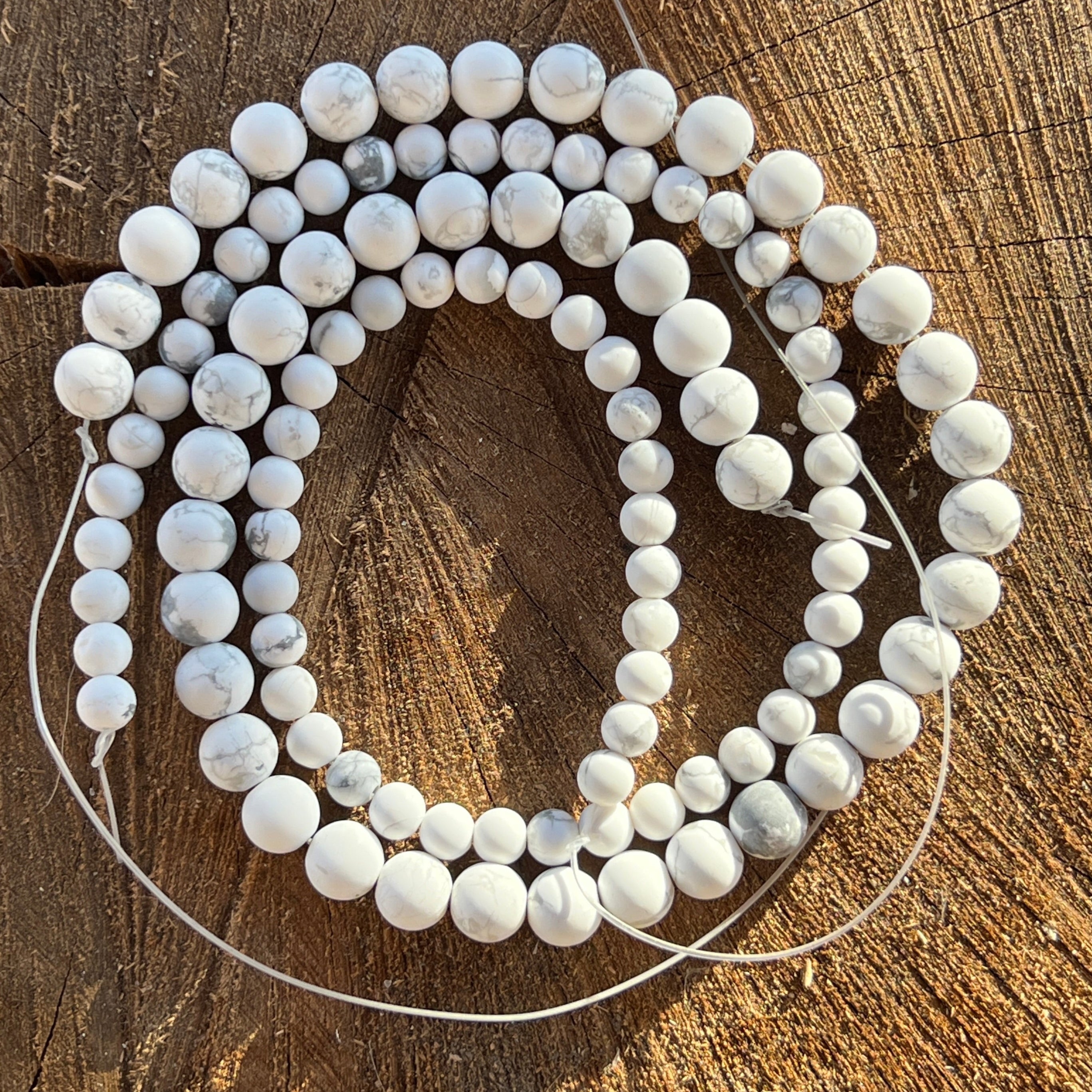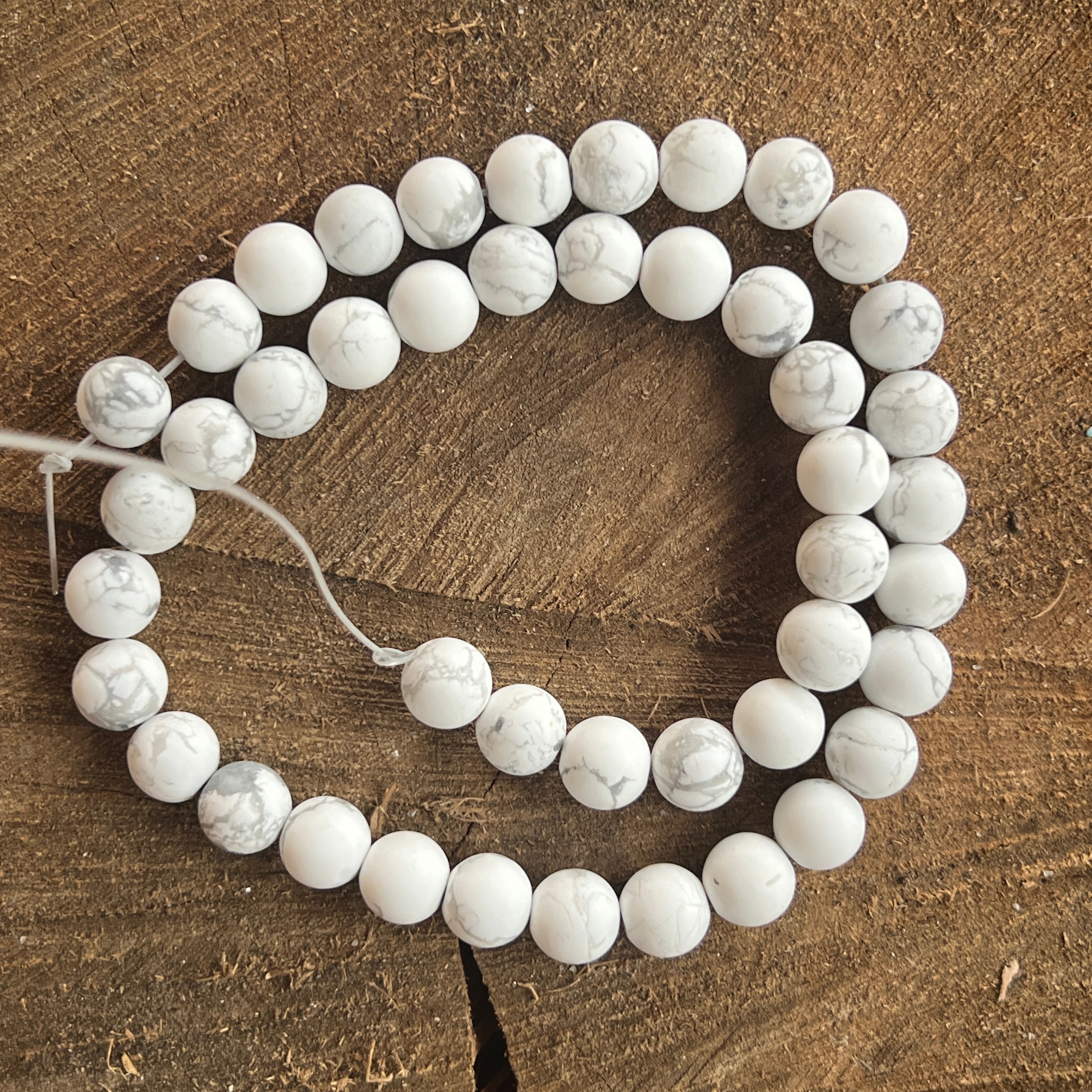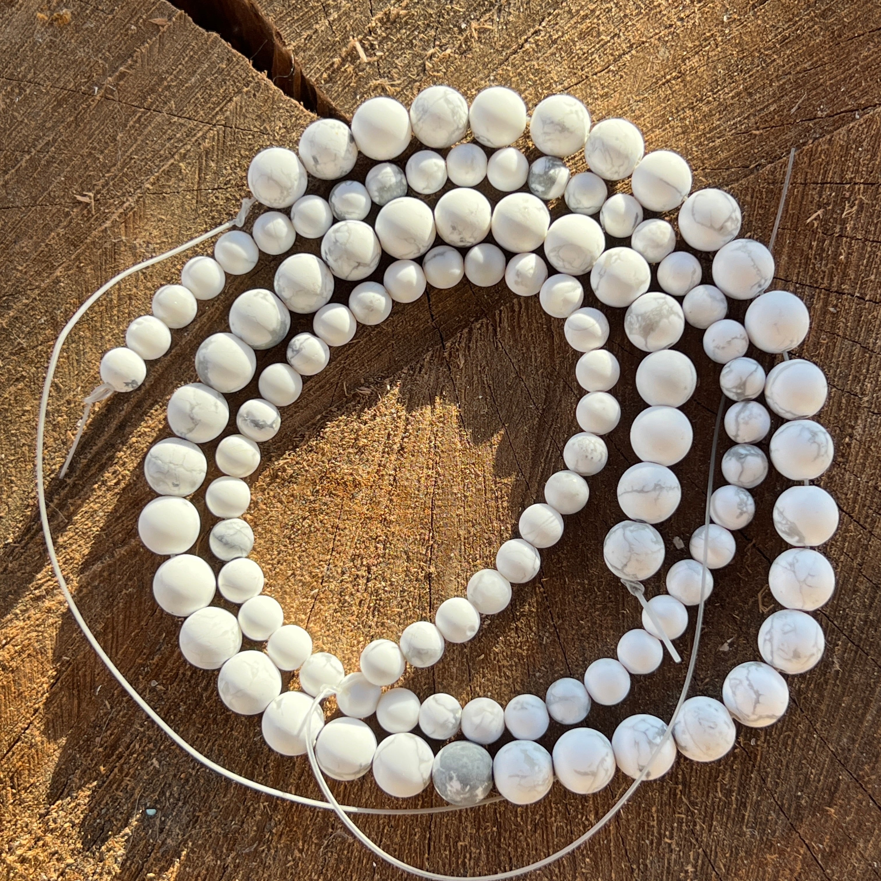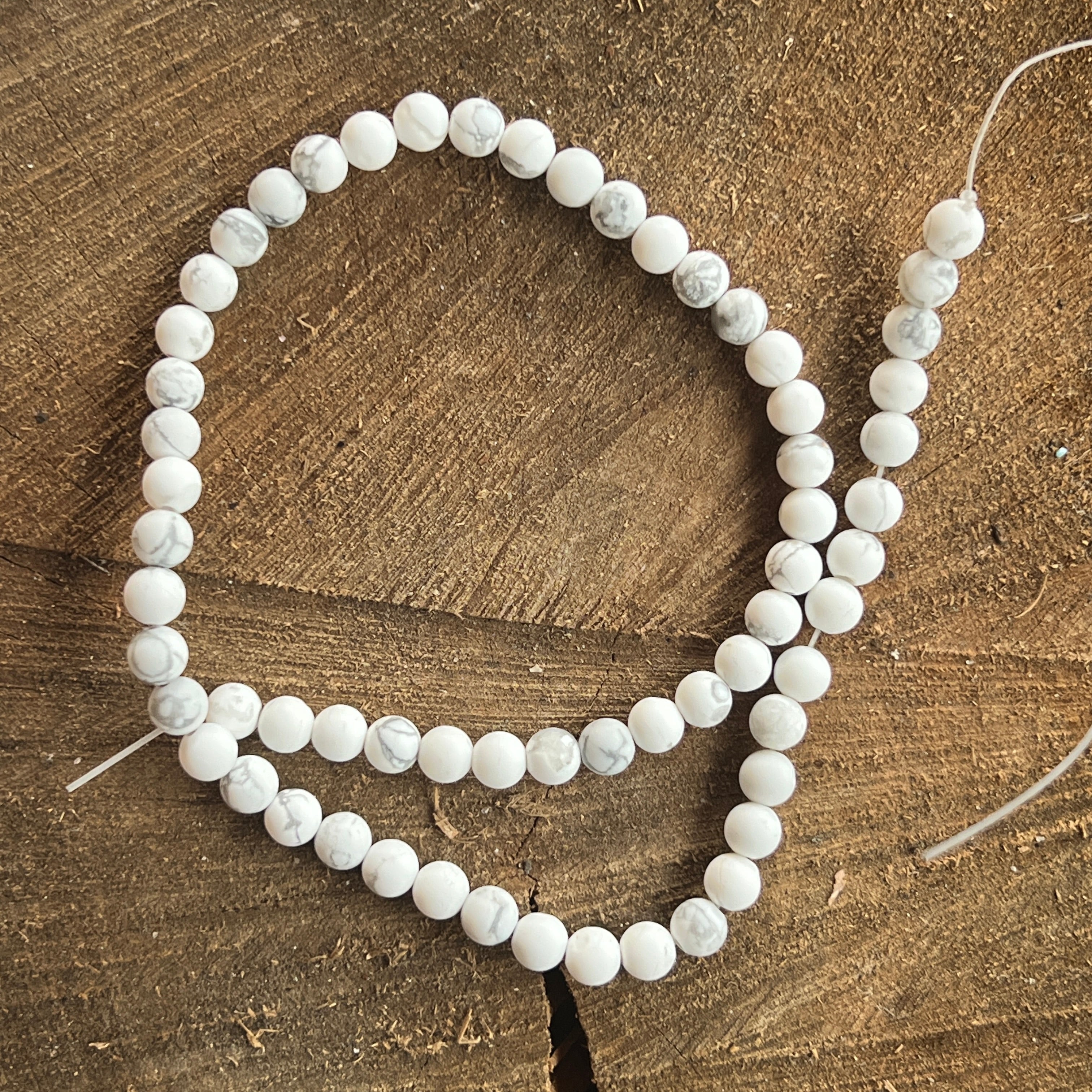 Низ от БЯЛ ХОВЛИТ, съставен от естествени сферични мъниста, перфектен за колиета, гривни или други ръчно изработени бижута.