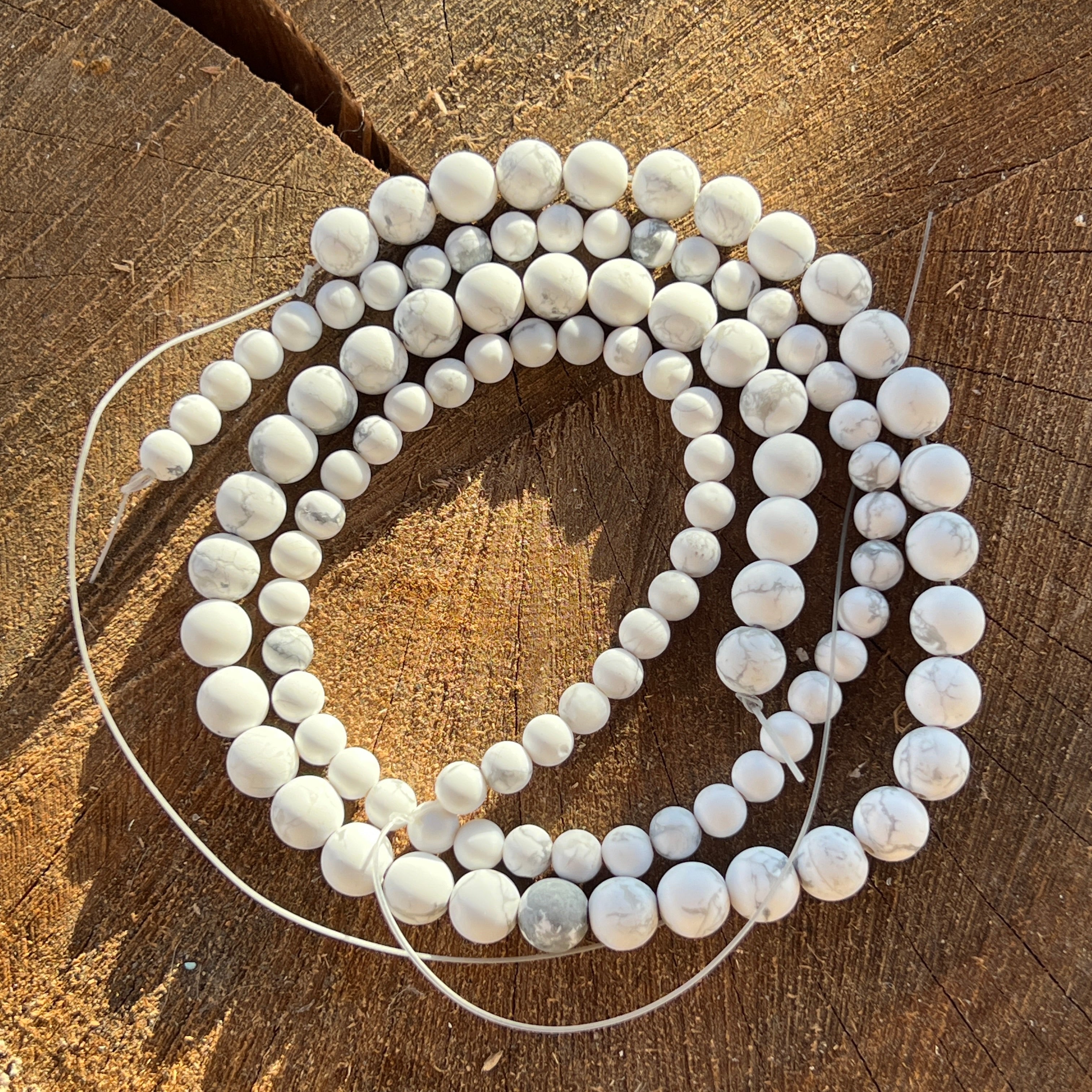Низ от мъниста полускъпоценни камъни сферичен Ховлит бял мат