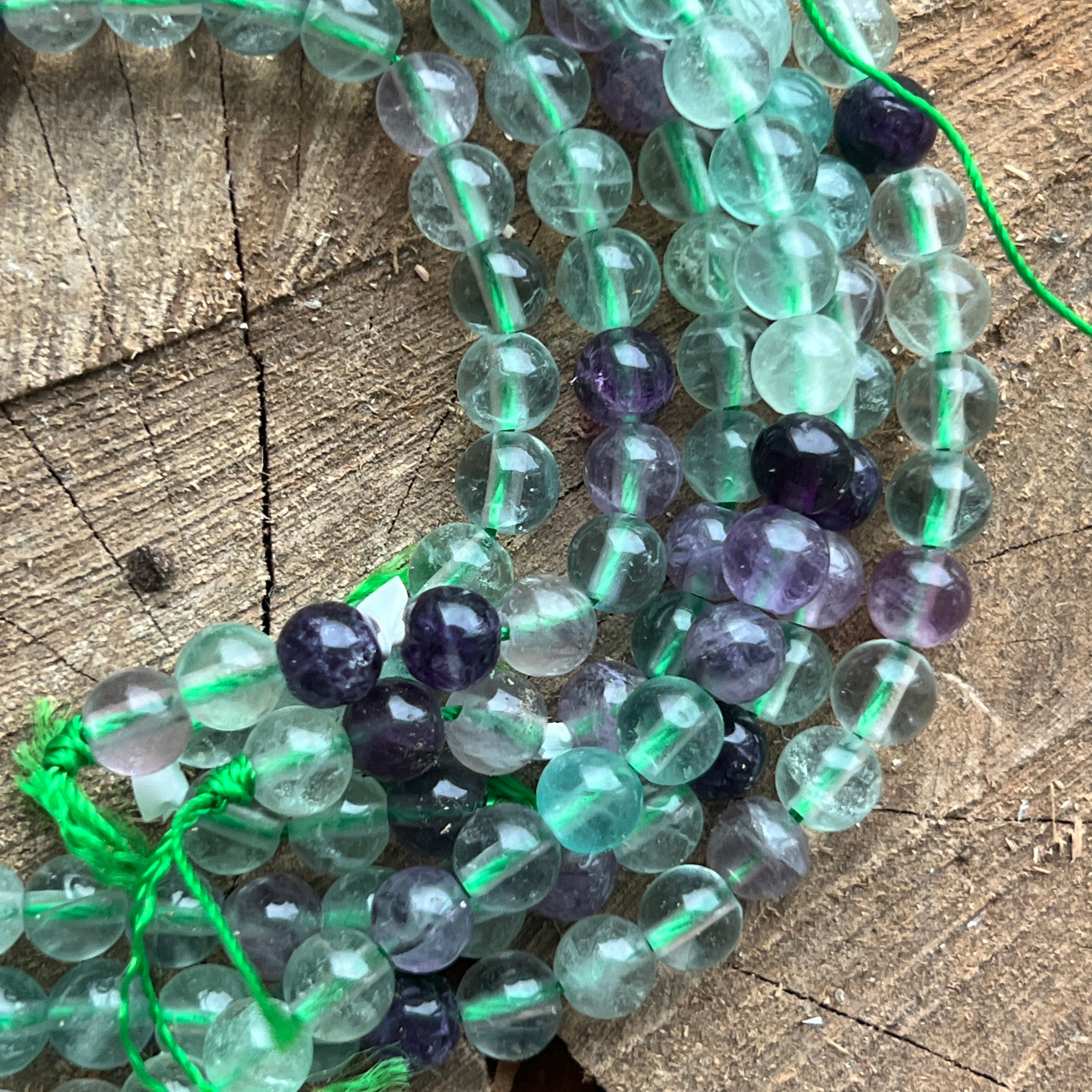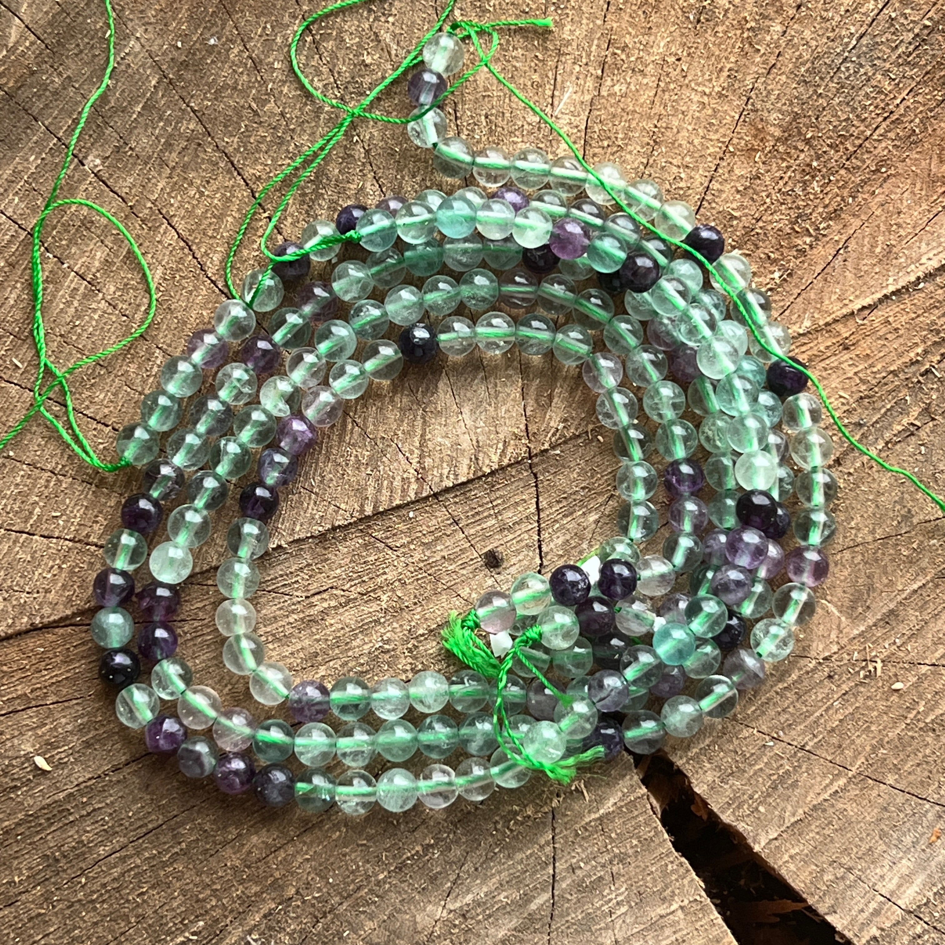 Низ от ФЛУОРИТ, съставен от естествени сферични мъниста, идеален за колиета, гривни или други ръчно изработени бижута.