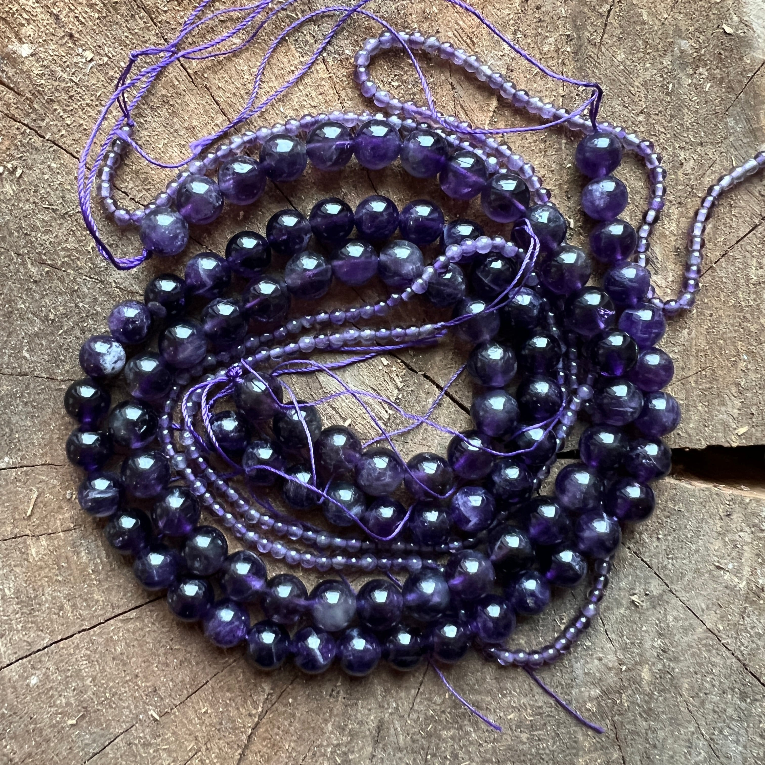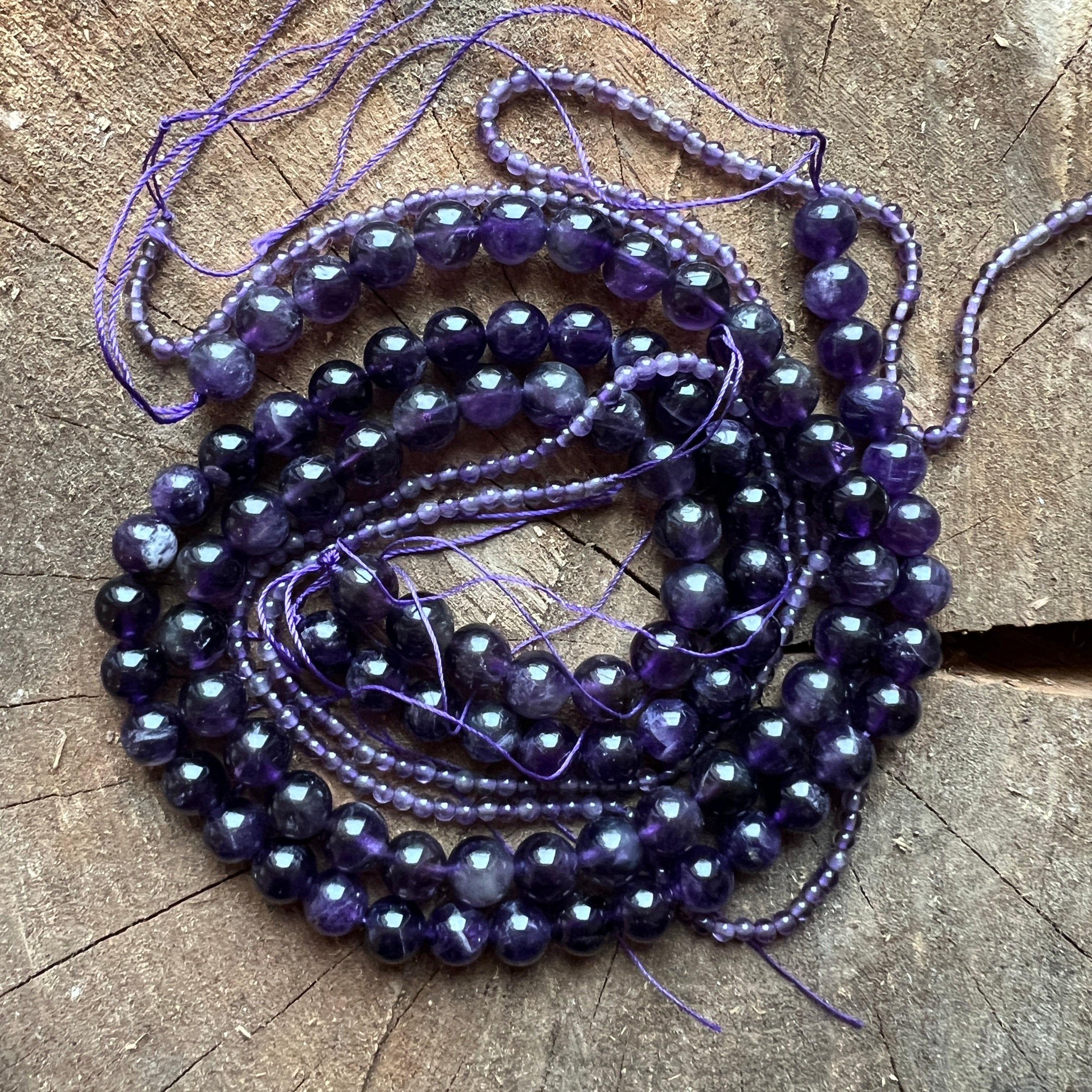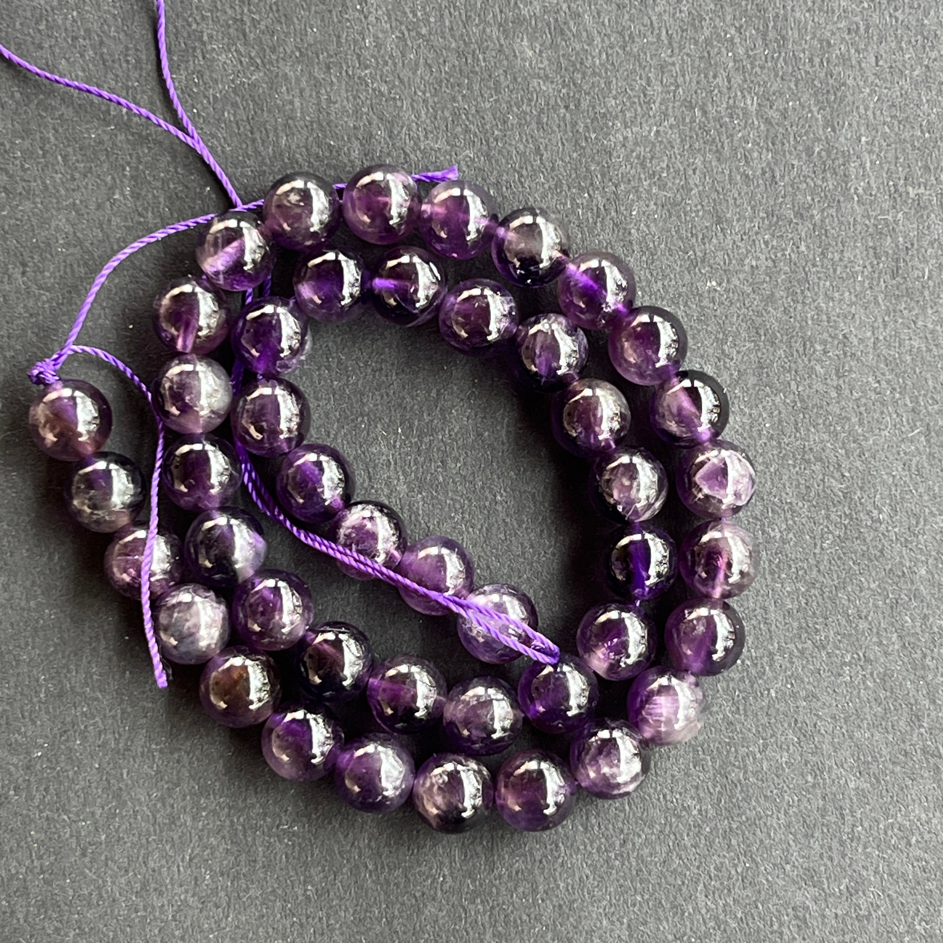 Низ от АМЕТИСТ,съставен от естествени сферични мъниста,перфектен за колиета, гривни или други ръчно изработени бижута.